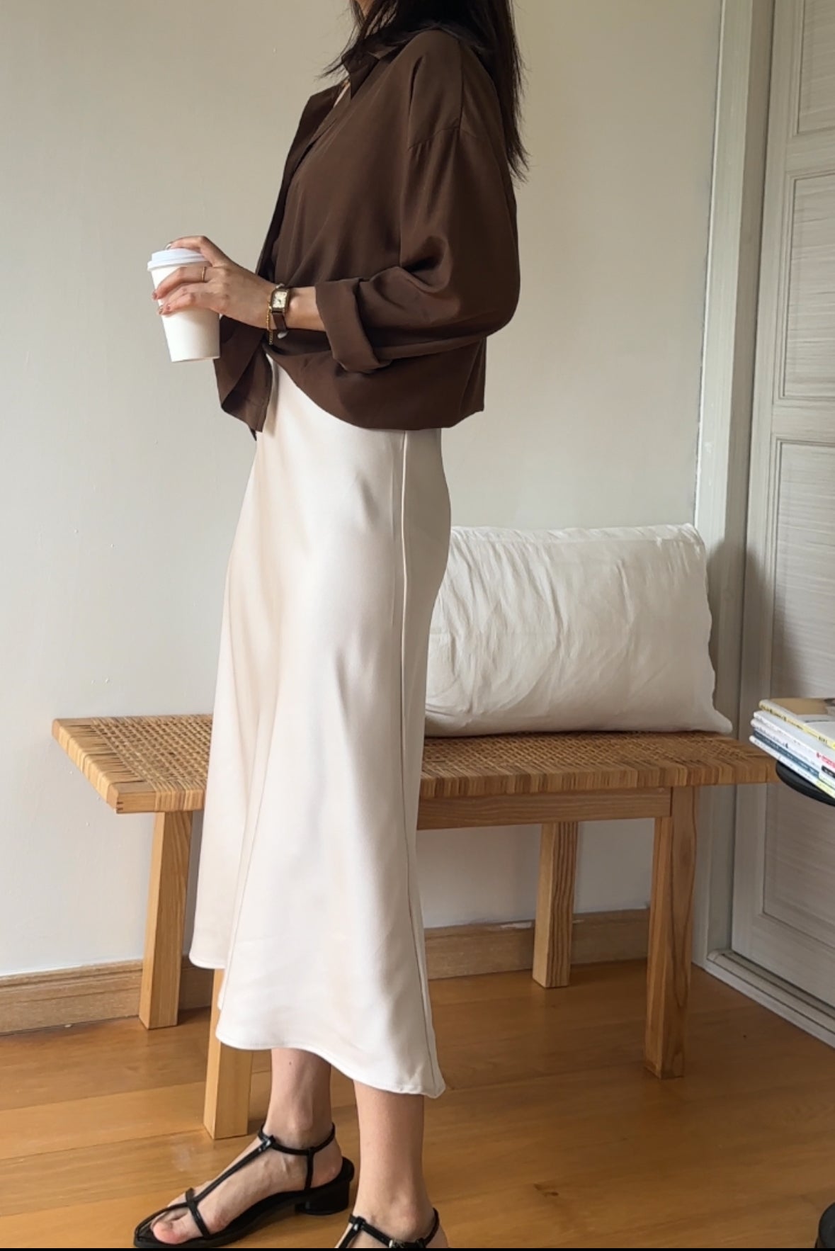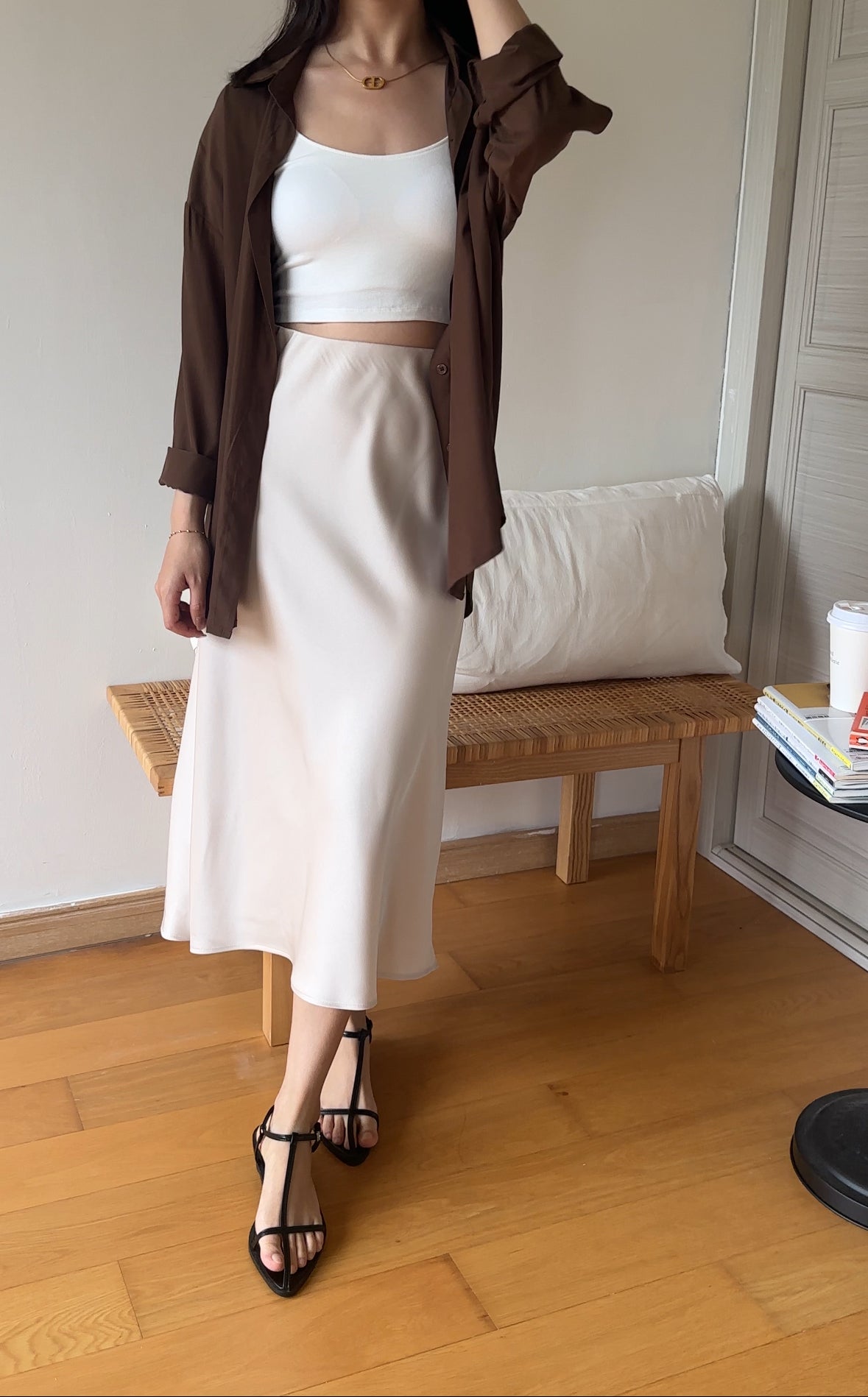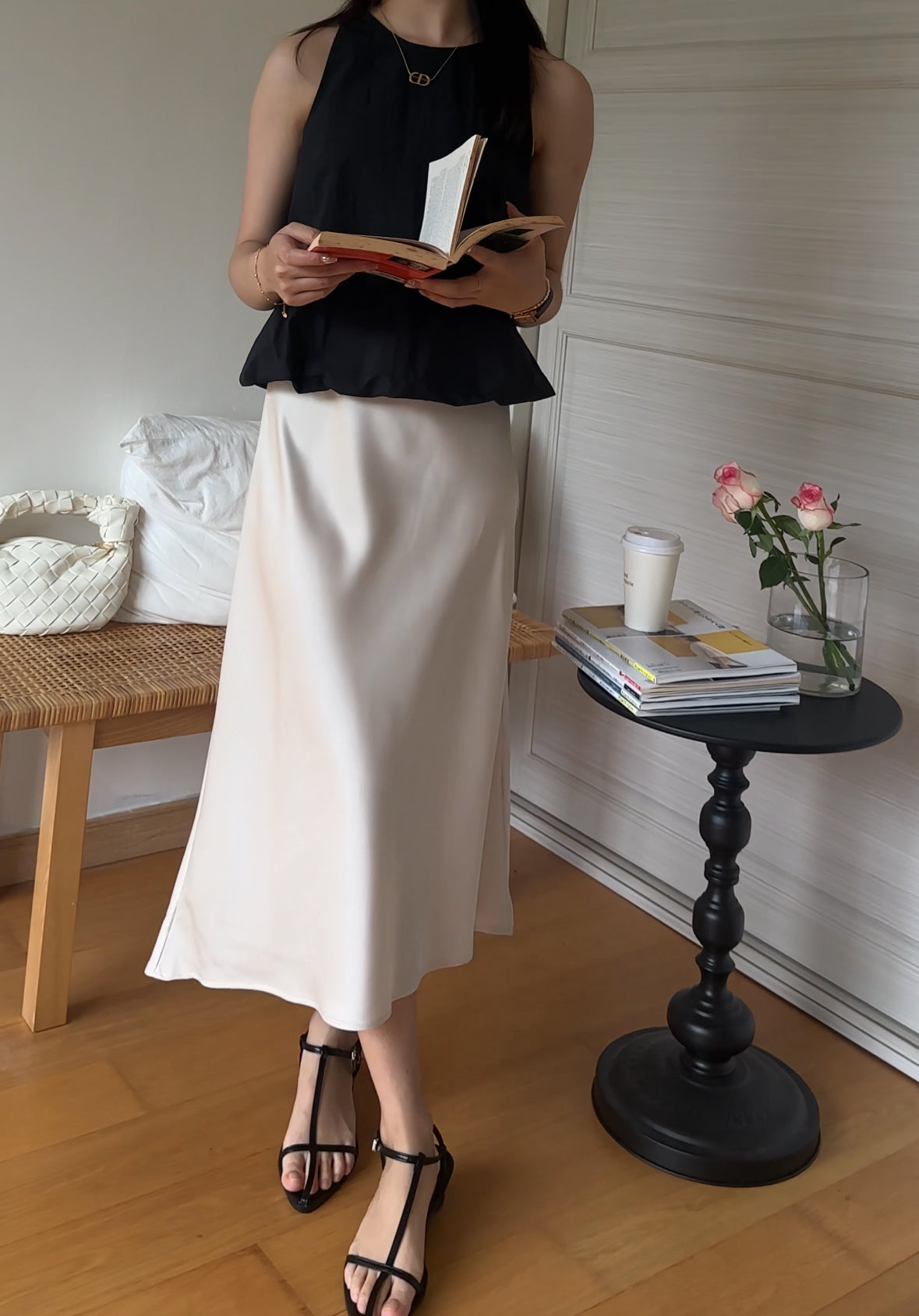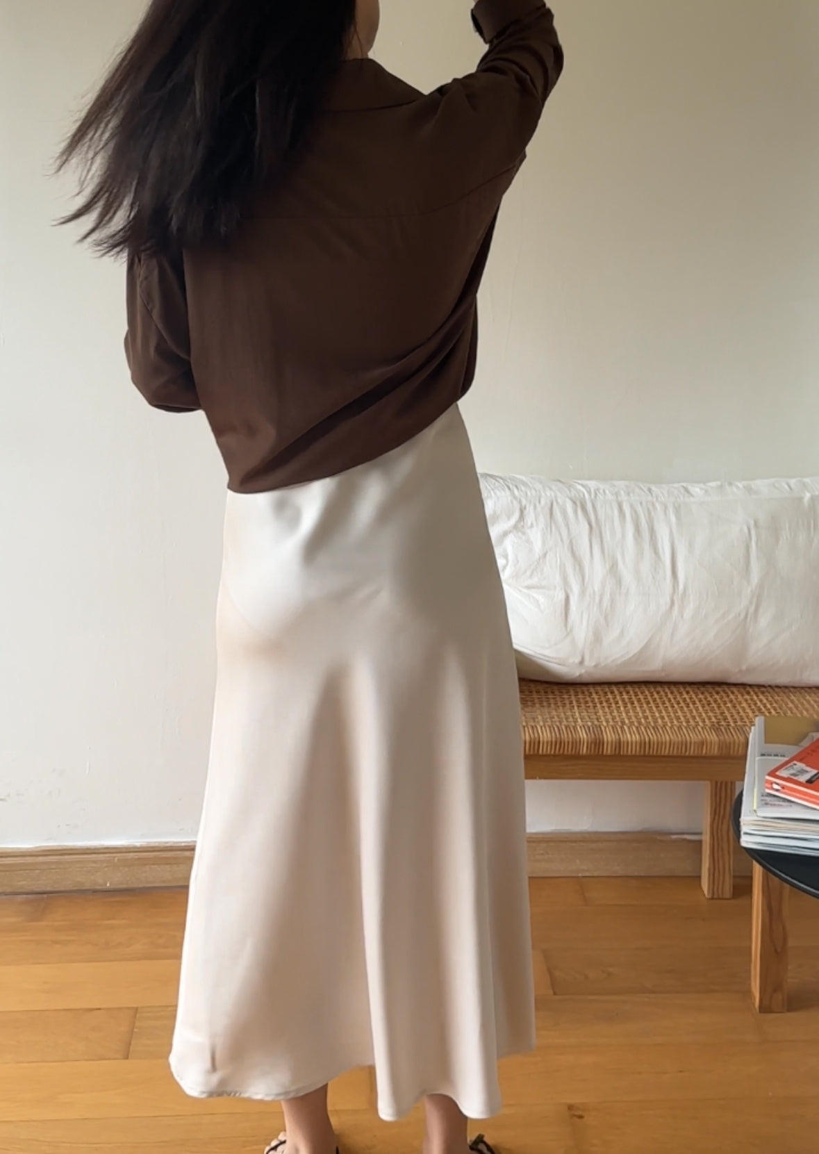 FC05205 Premium Satin Fish Tail Skirt Beige