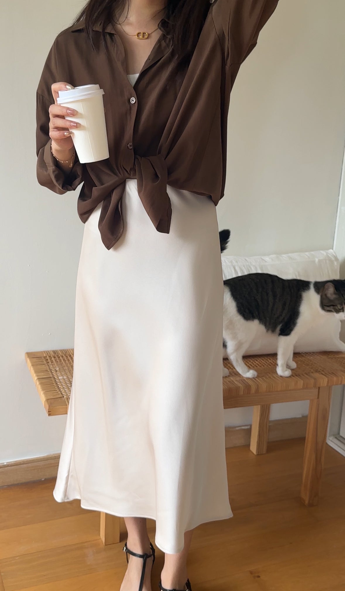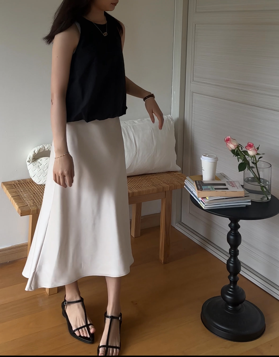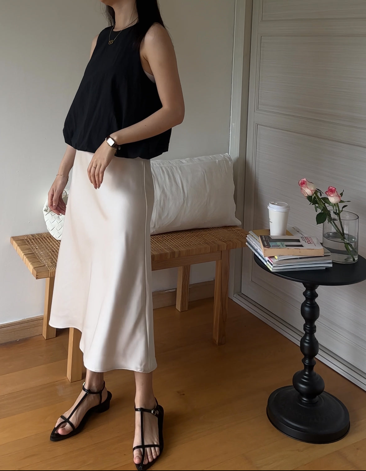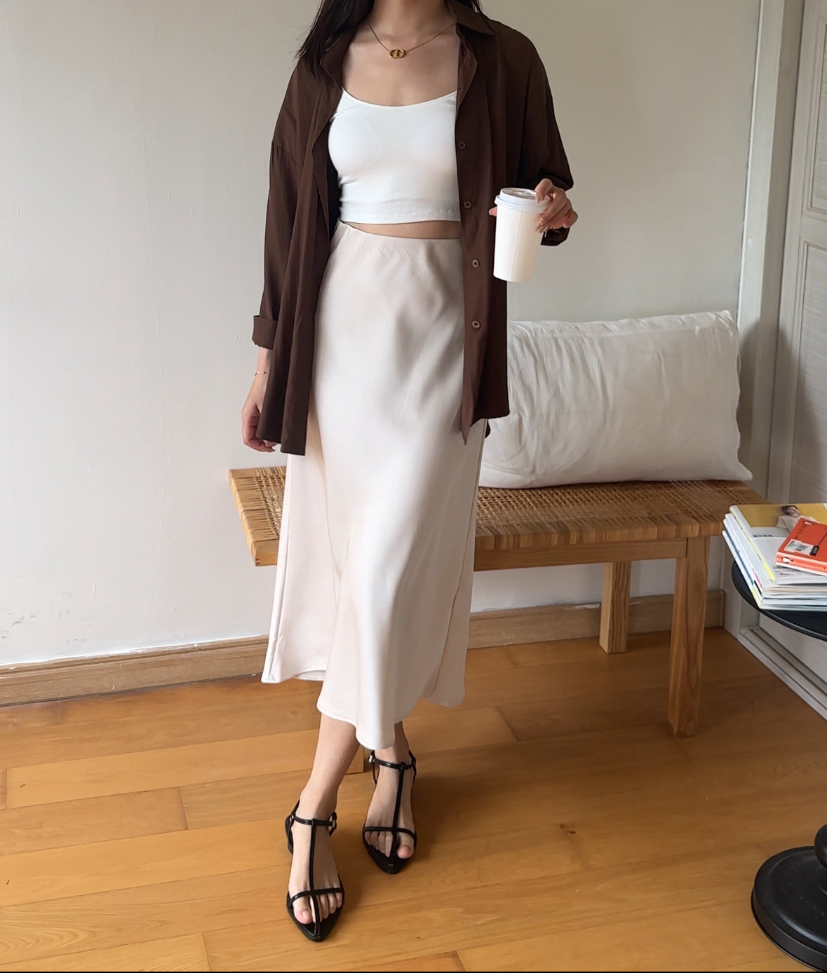 FC05205 Premium Satin Fish Tail Skirt Beige