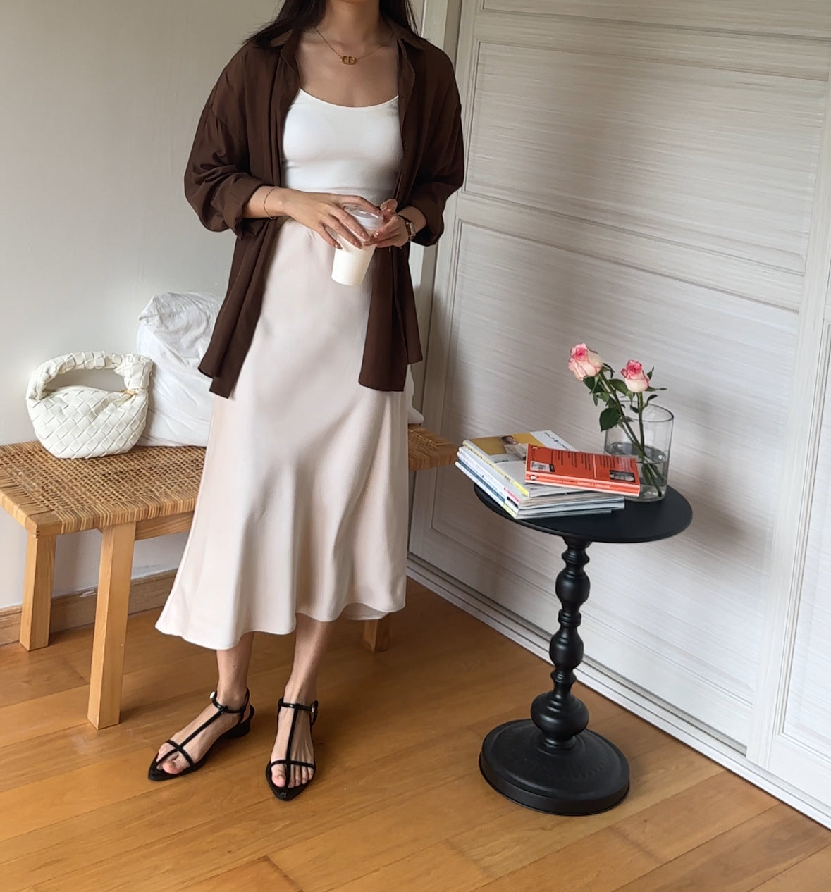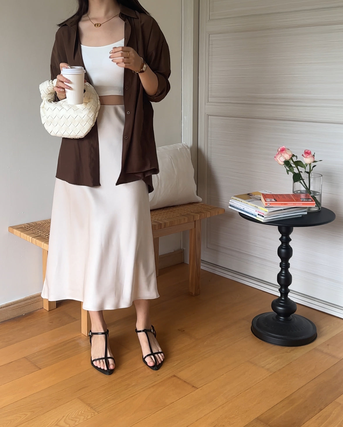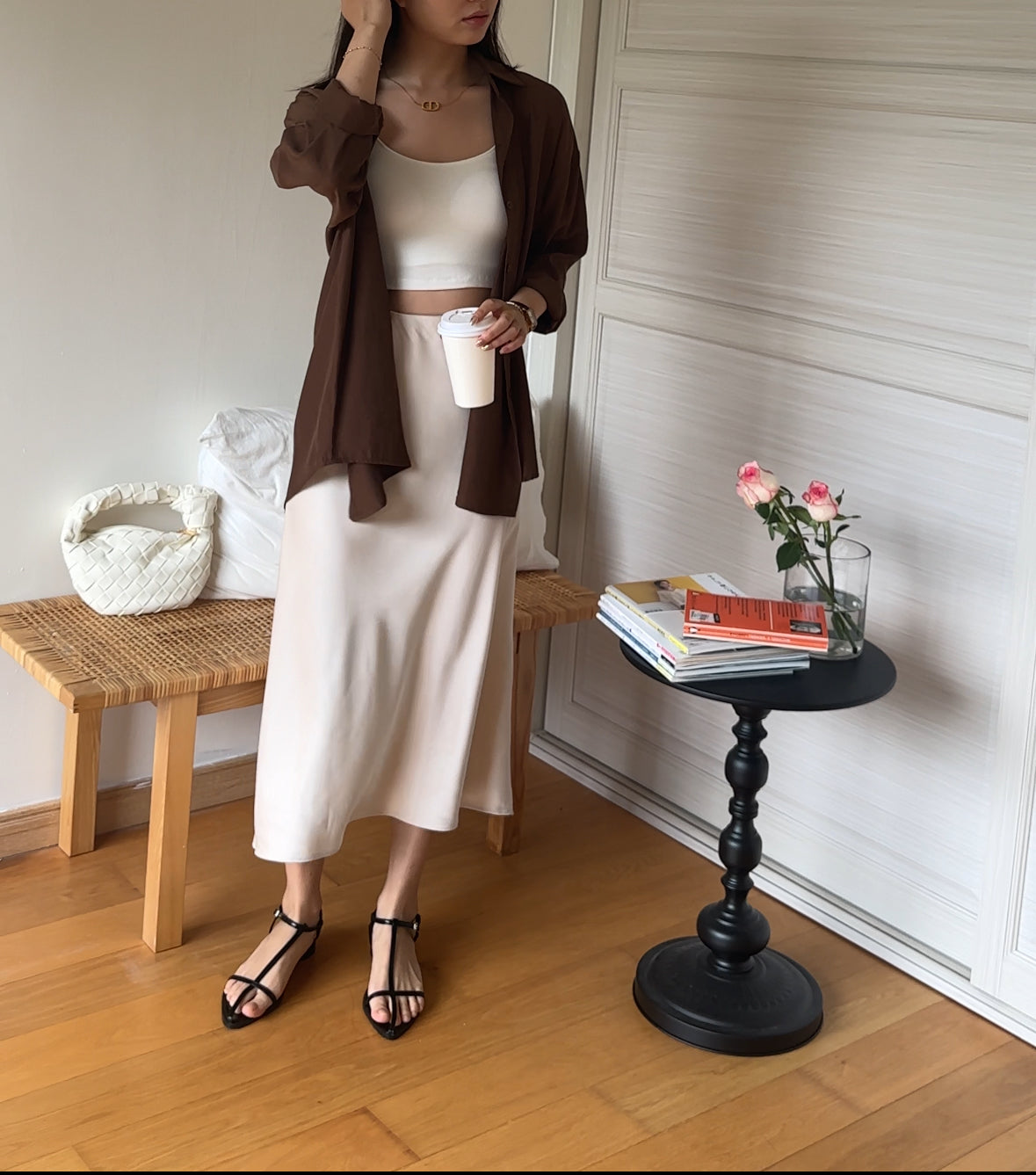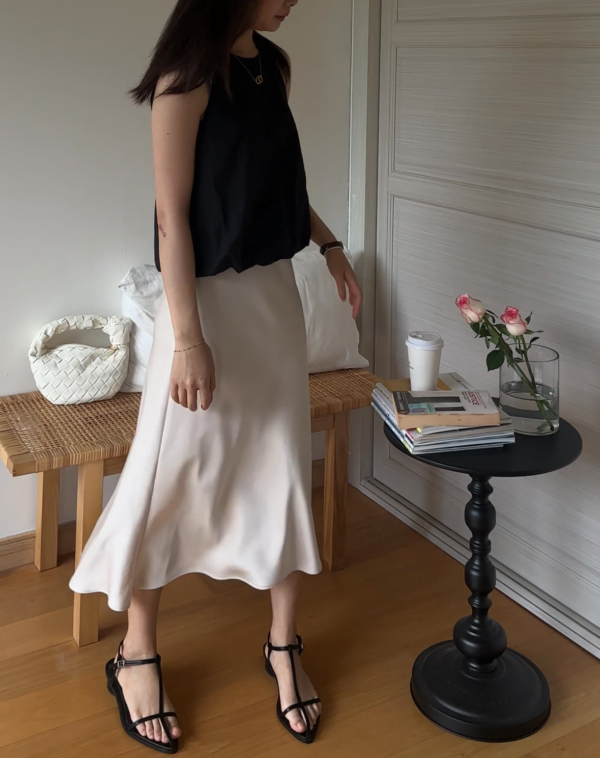 FC05205 Premium Satin Fish Tail Skirt Beige