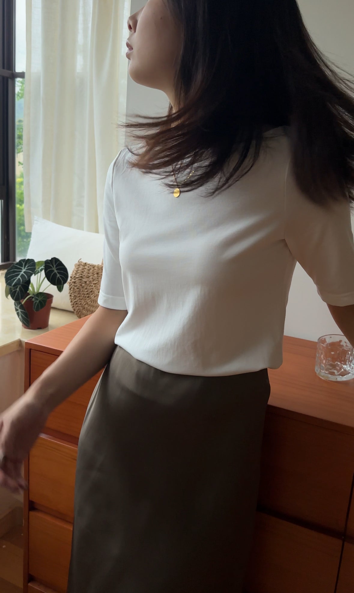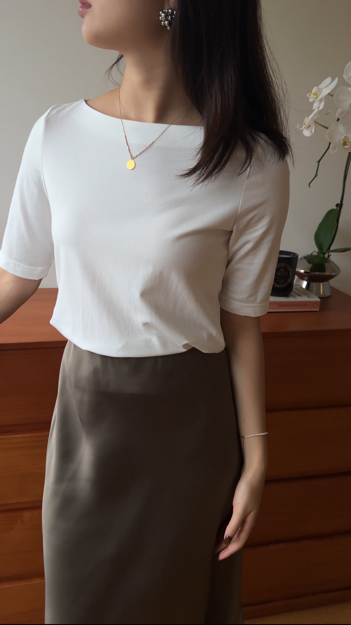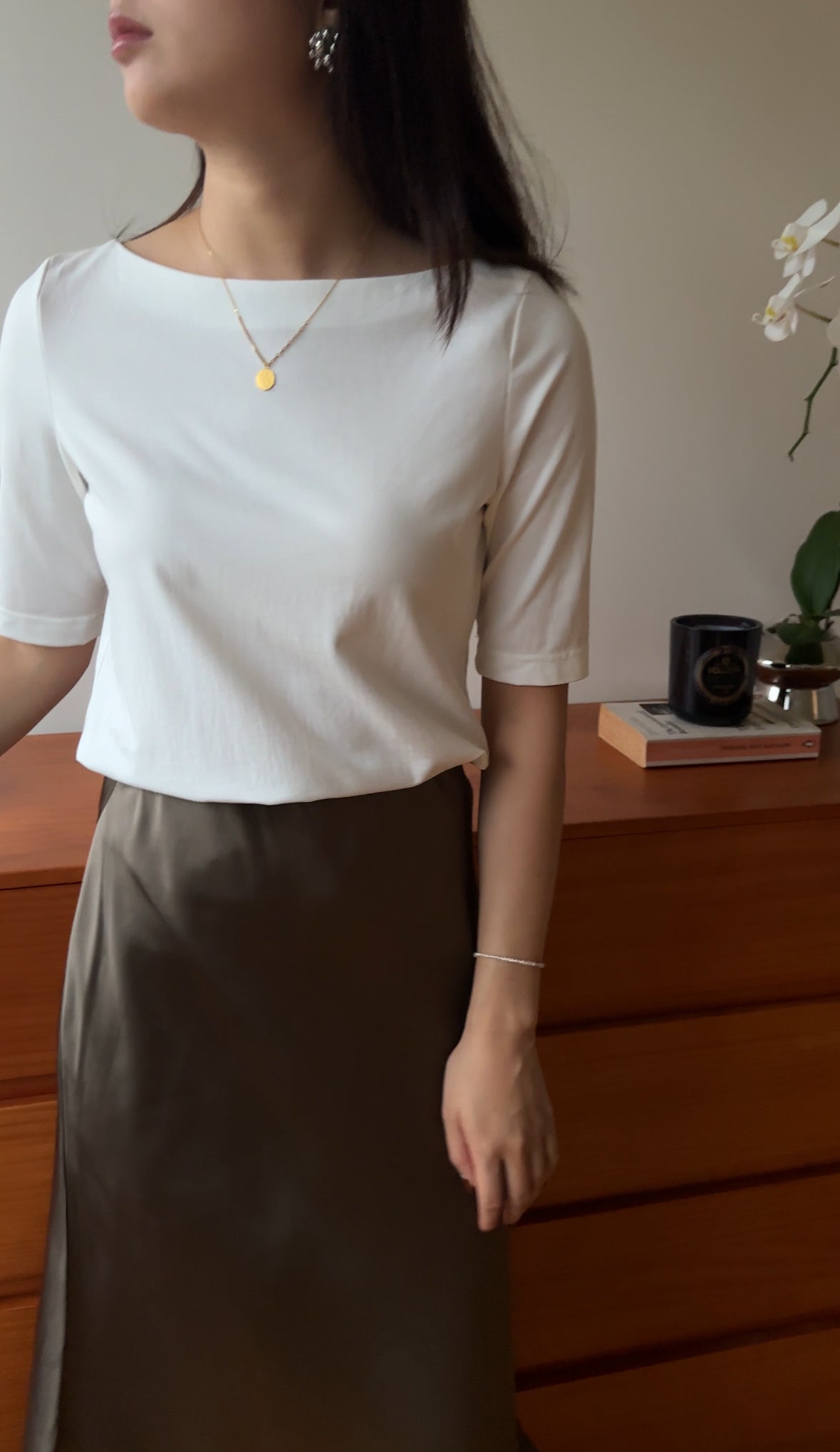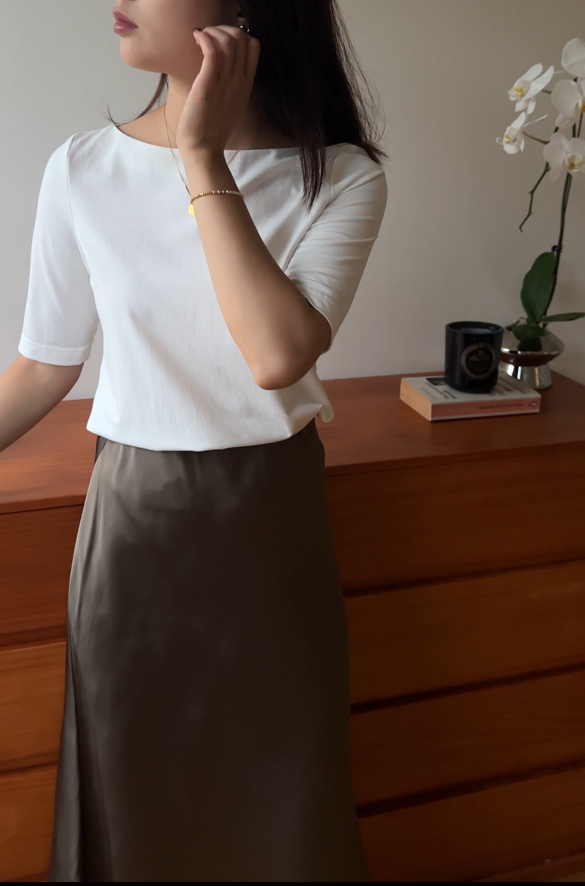 FC09302 Premium Roma Cotton Boat Neck Midi-Sleeve Basic T-shirt White