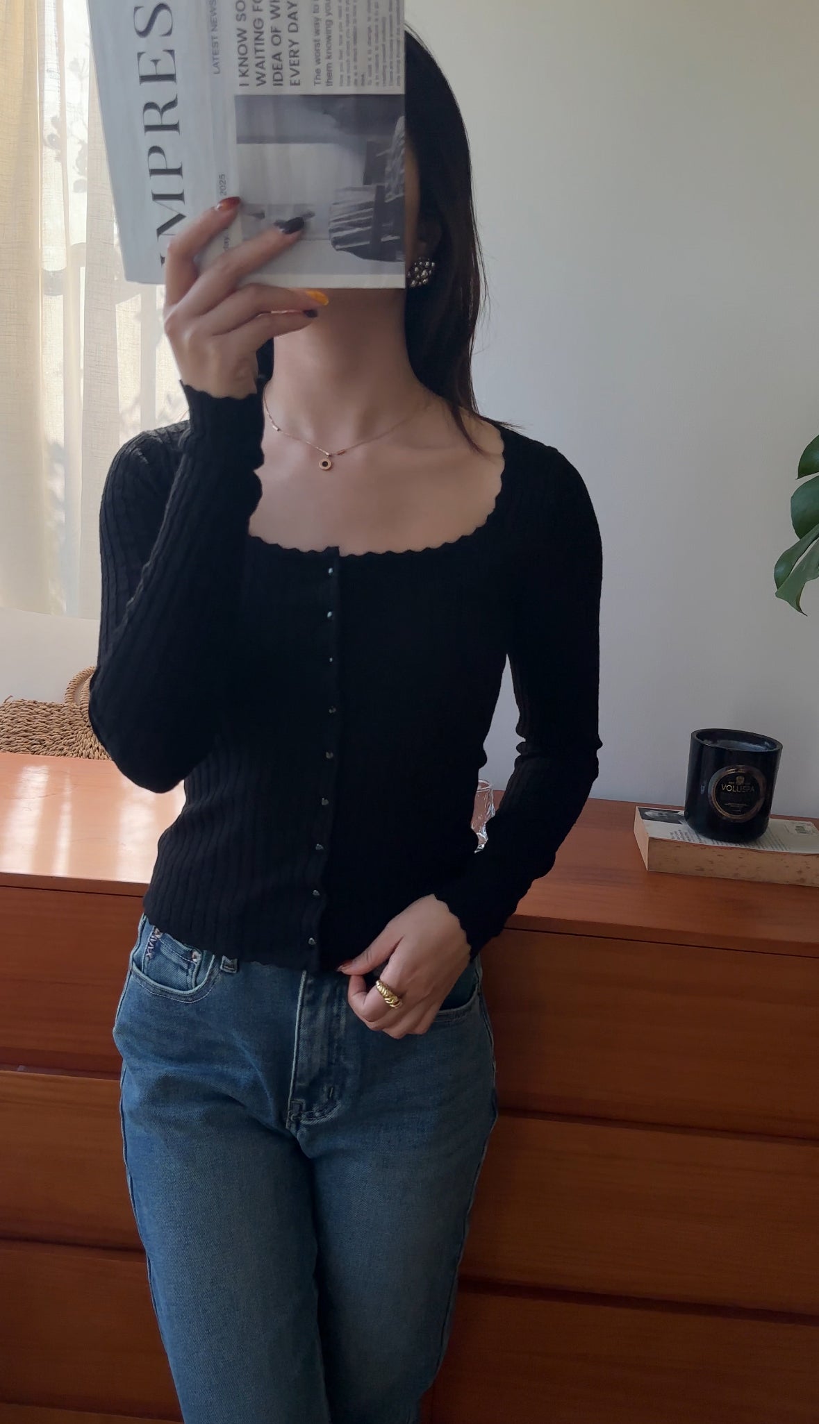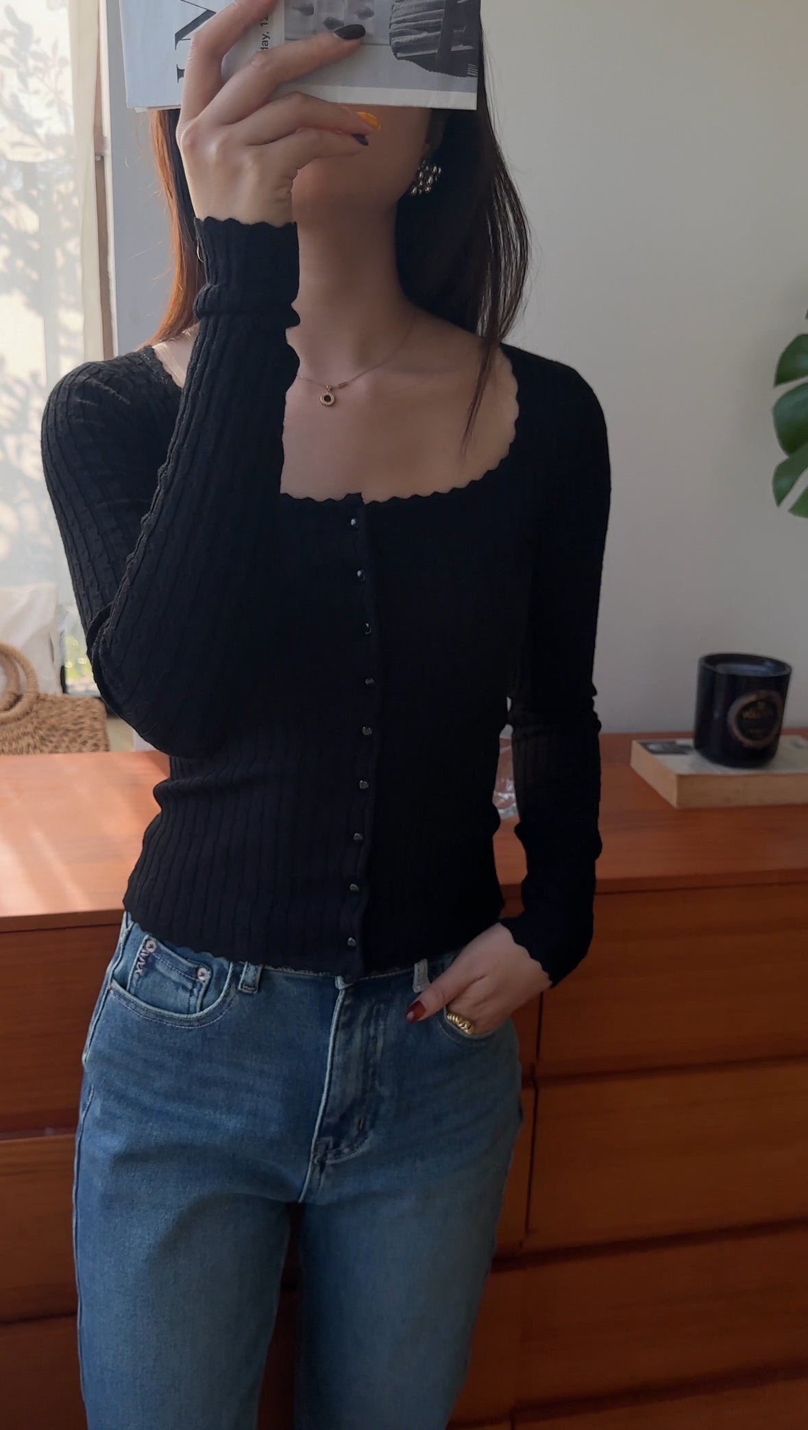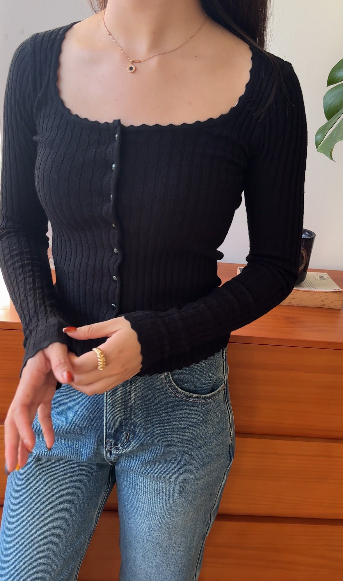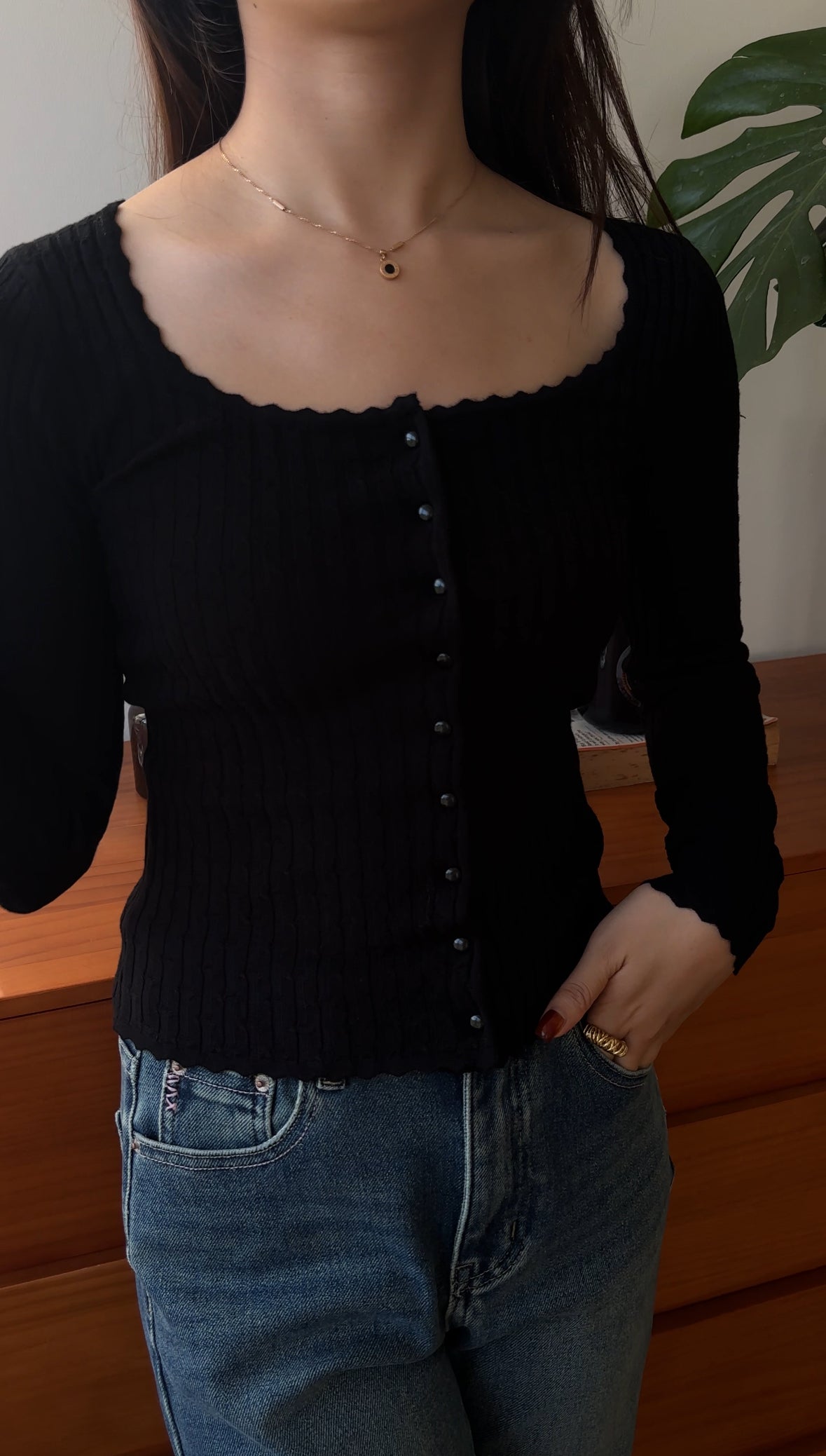 FC11102 French Square Collar Knitted Top/Cardigan Black