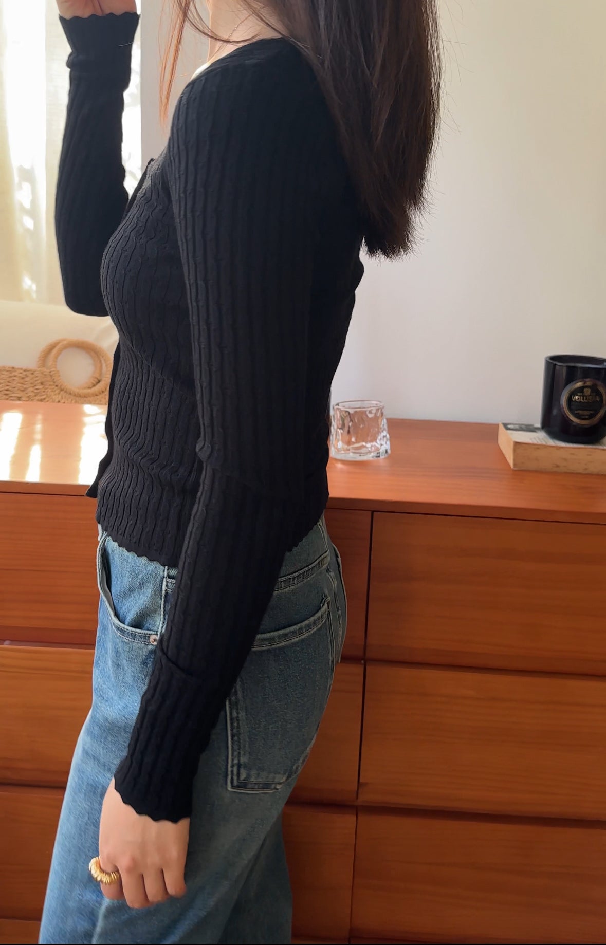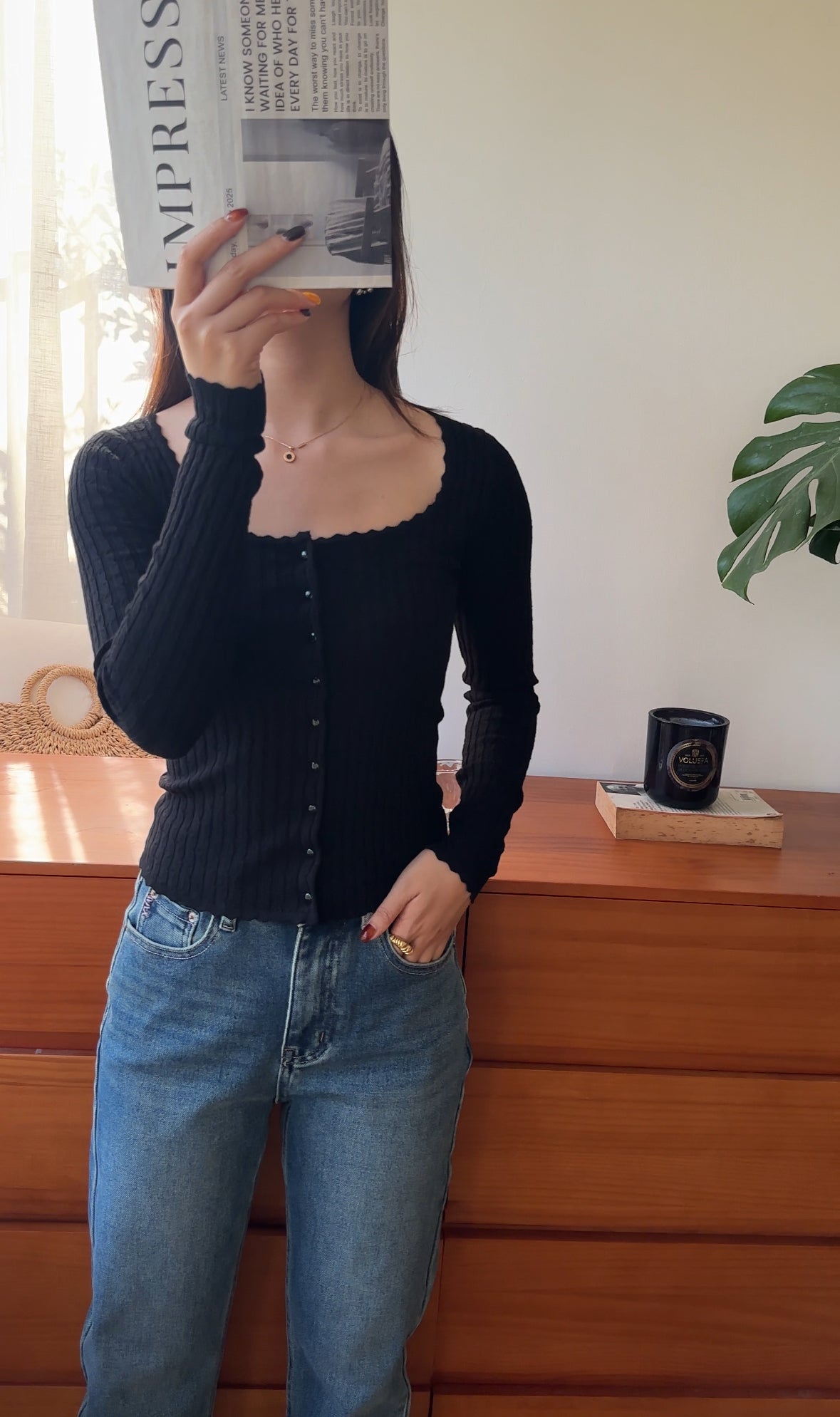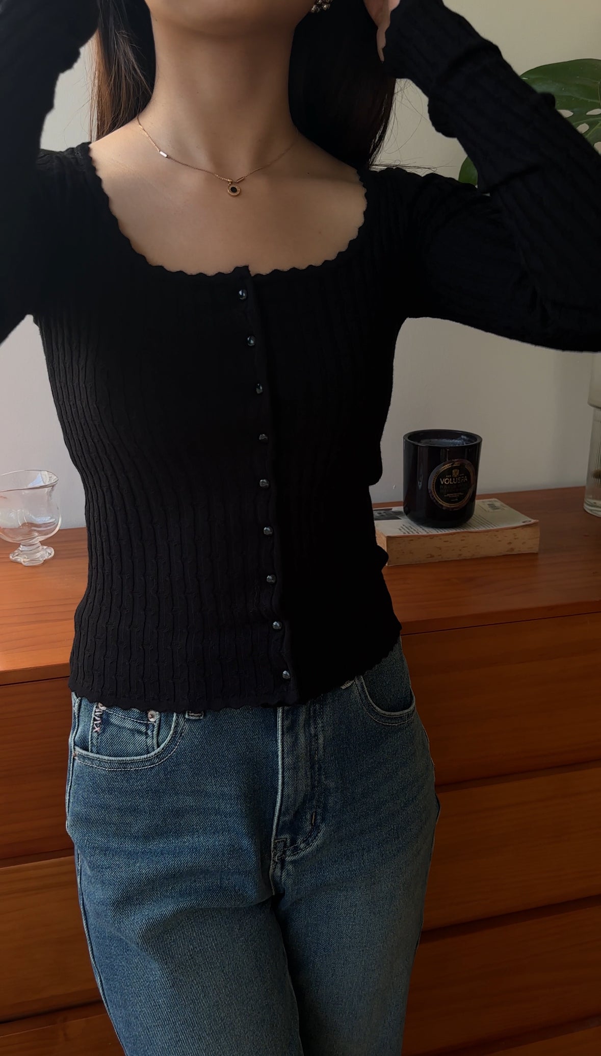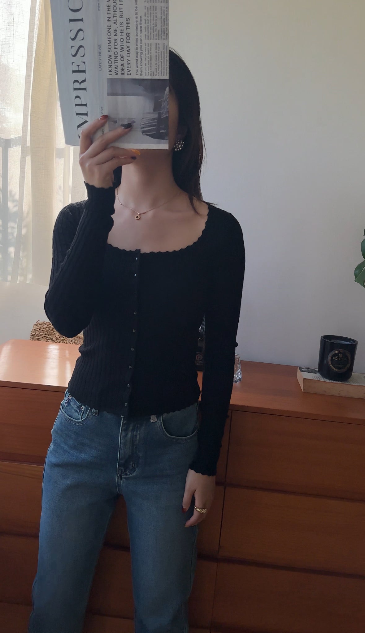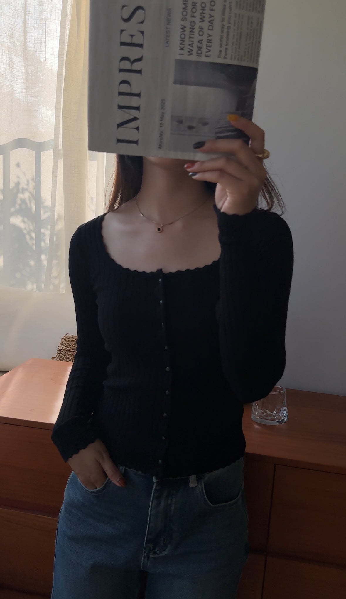 FC11102 French Square Collar Knitted Top/Cardigan Black