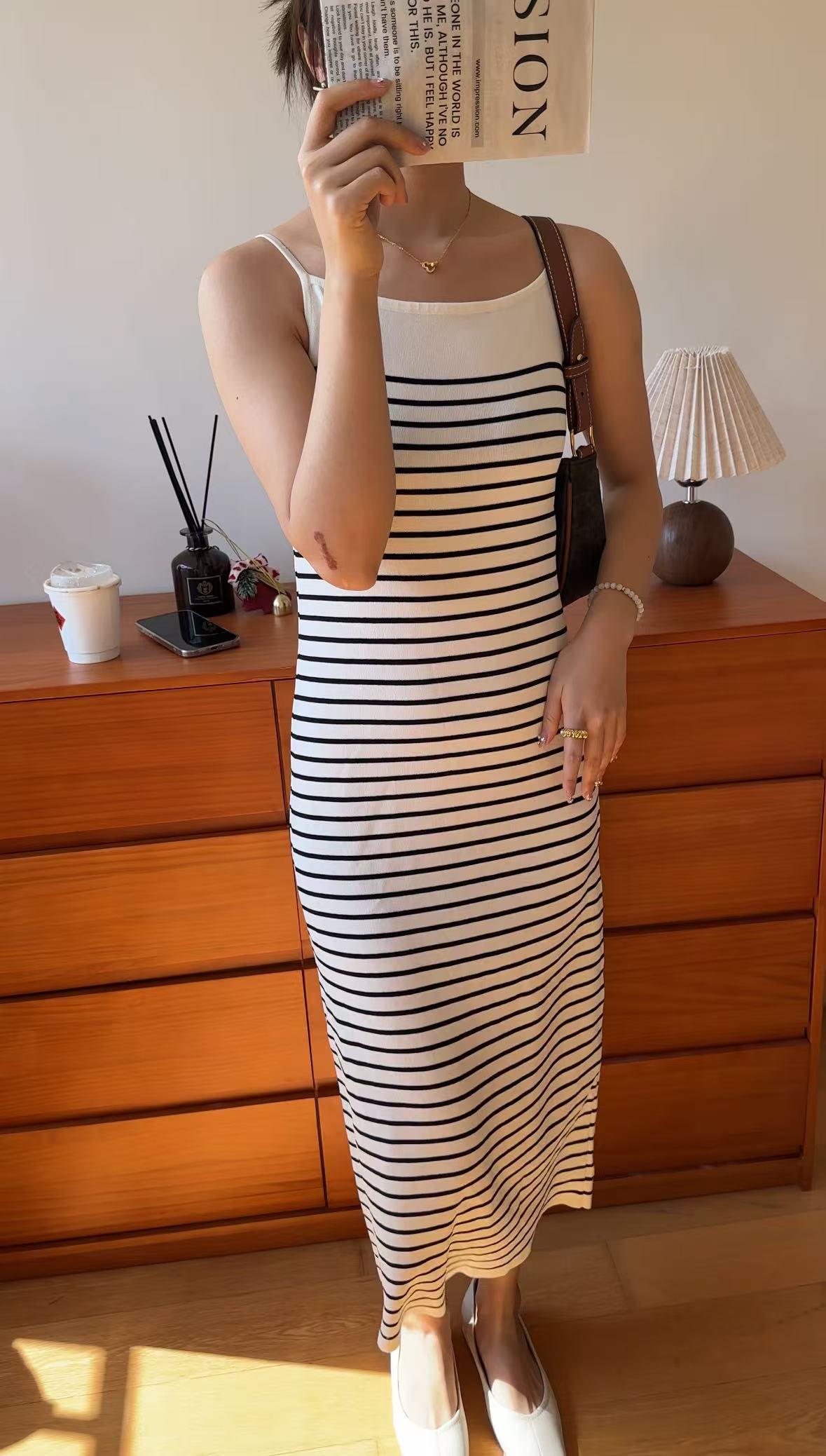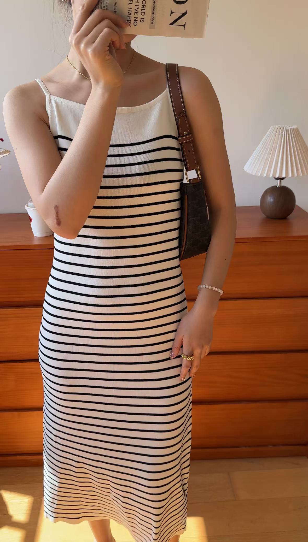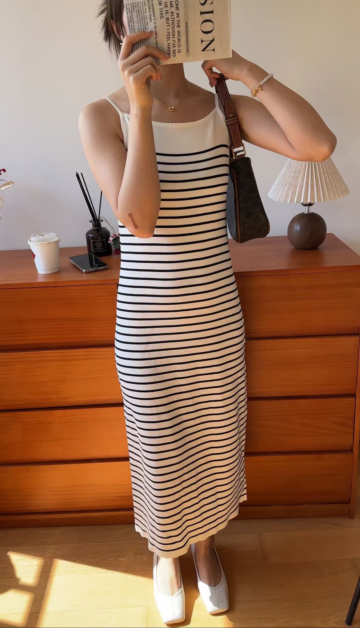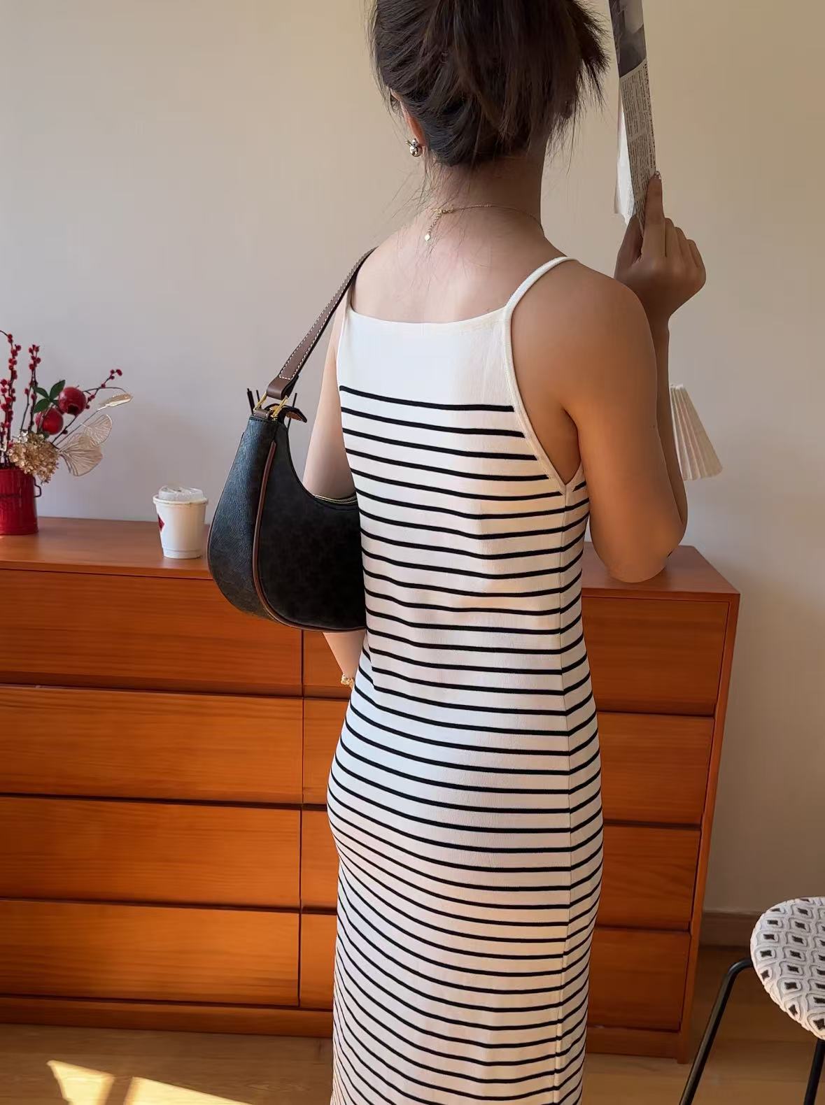 GC01151 Spring Collection NEW Premium Cos Fabric Boat Neck Striped Knitted Slip Dress