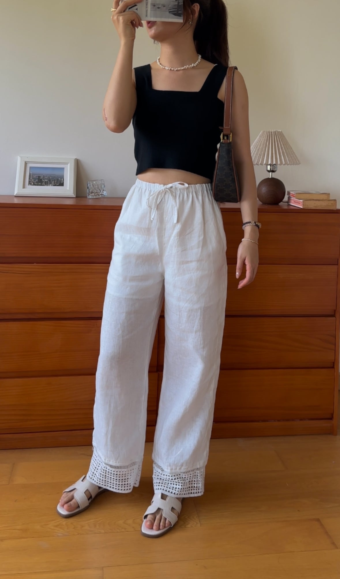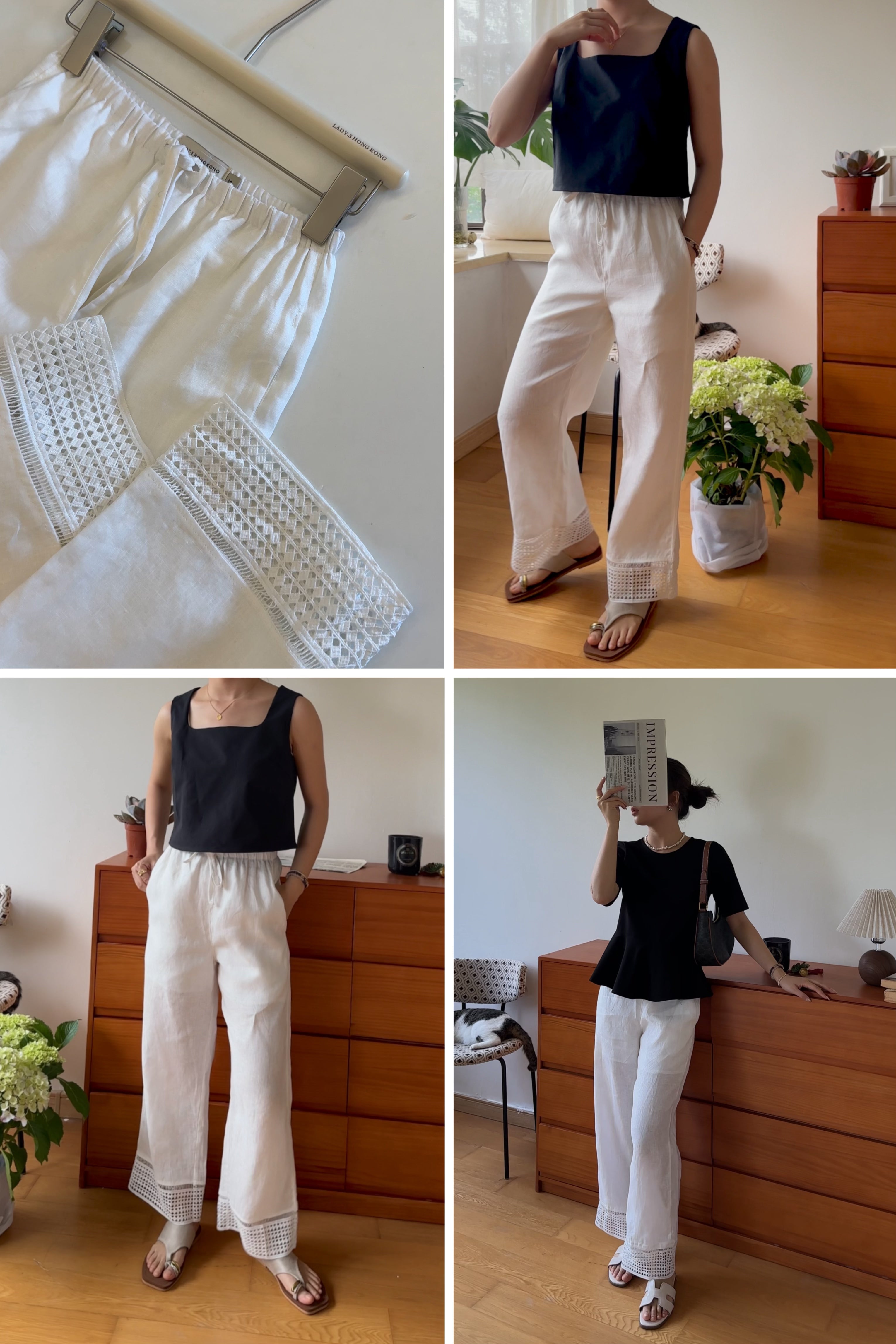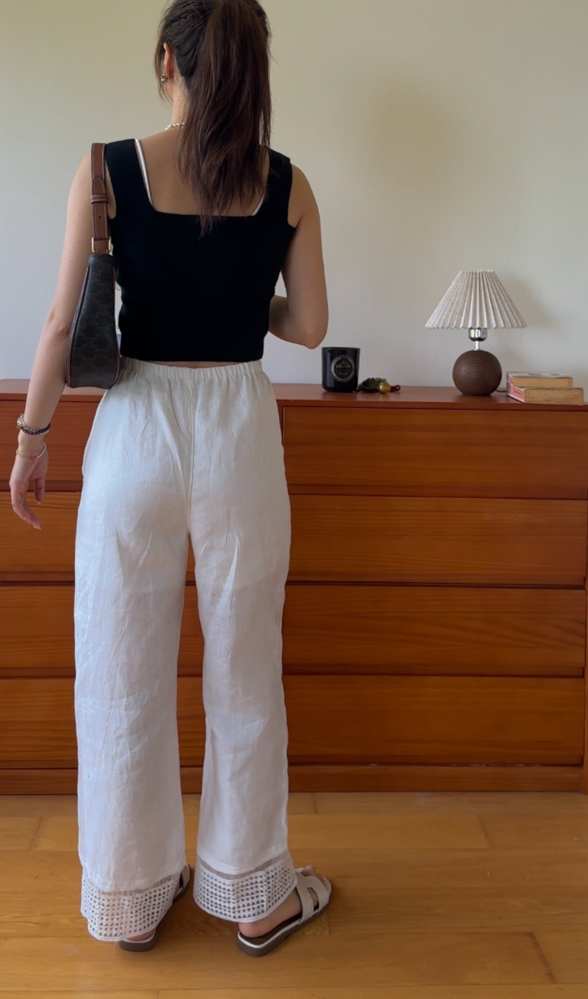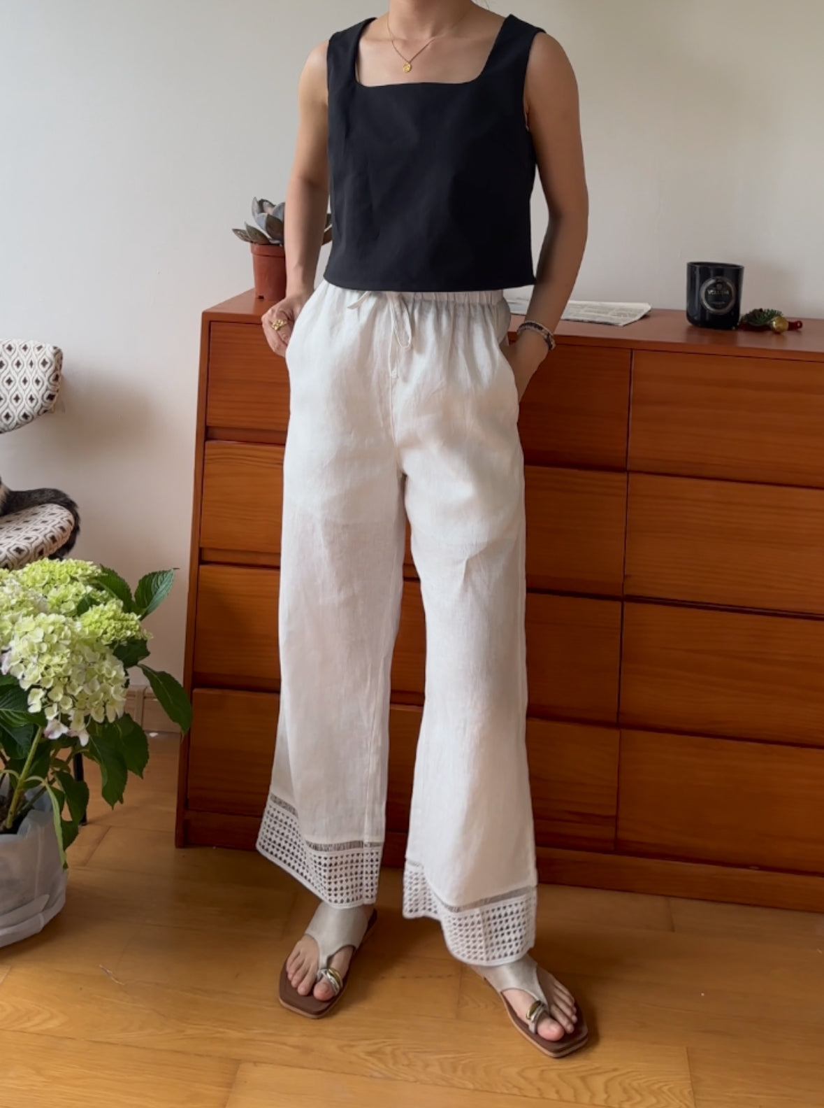 GC04302 Linen made Lace Siding Pants (ONLY S)