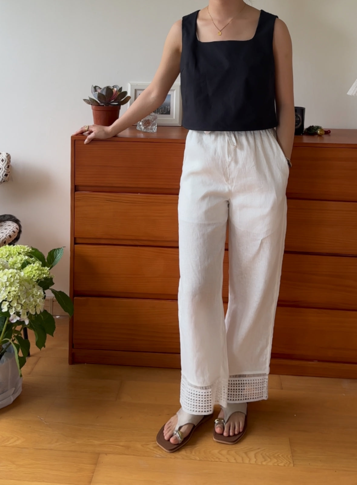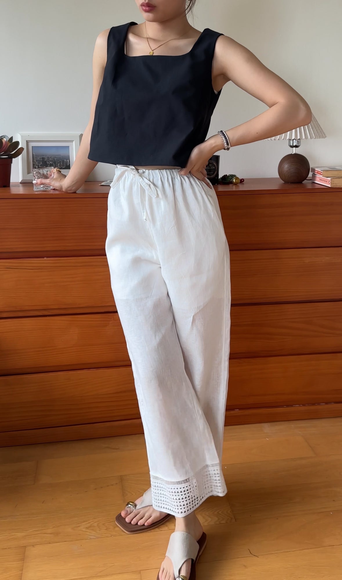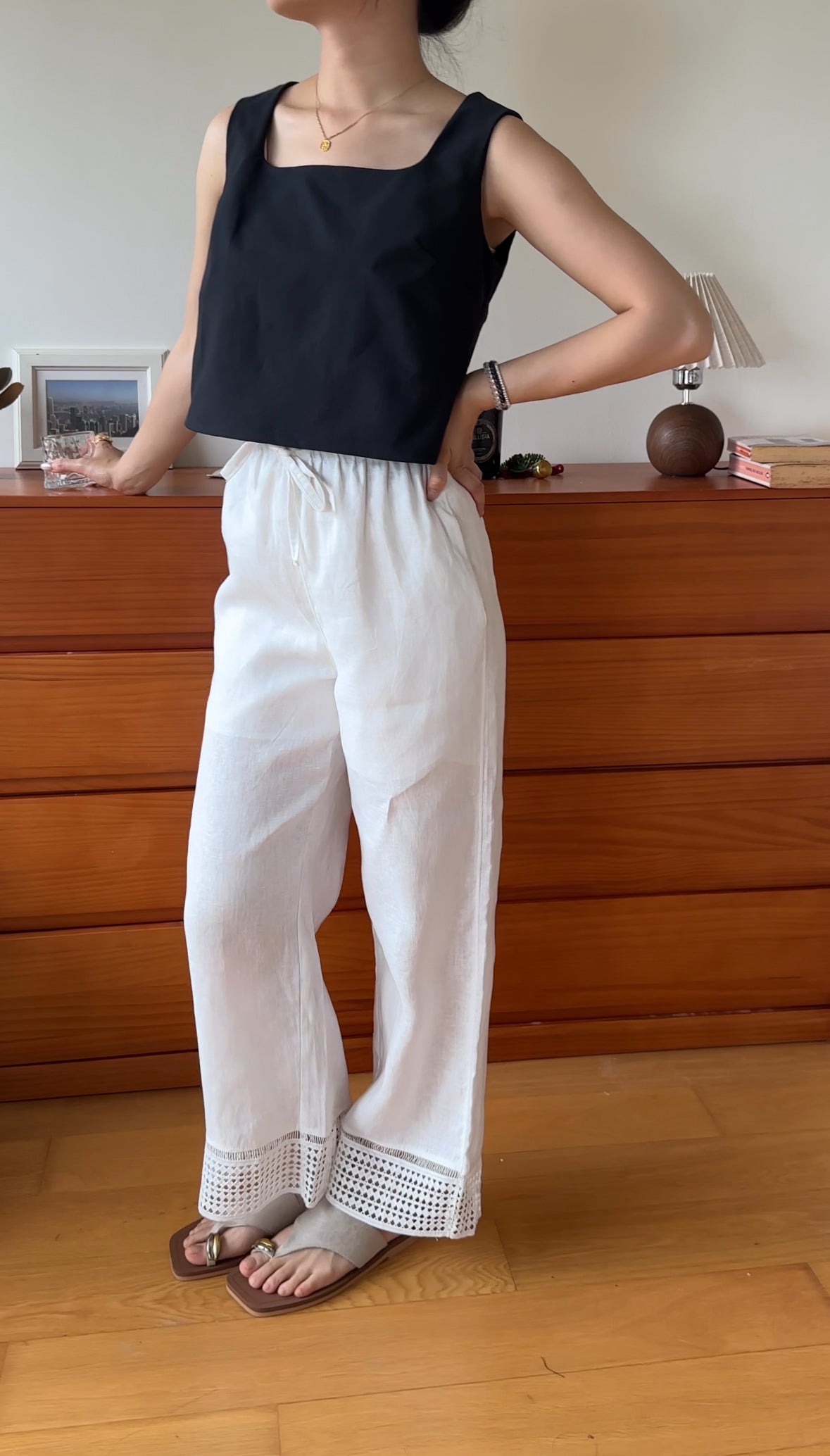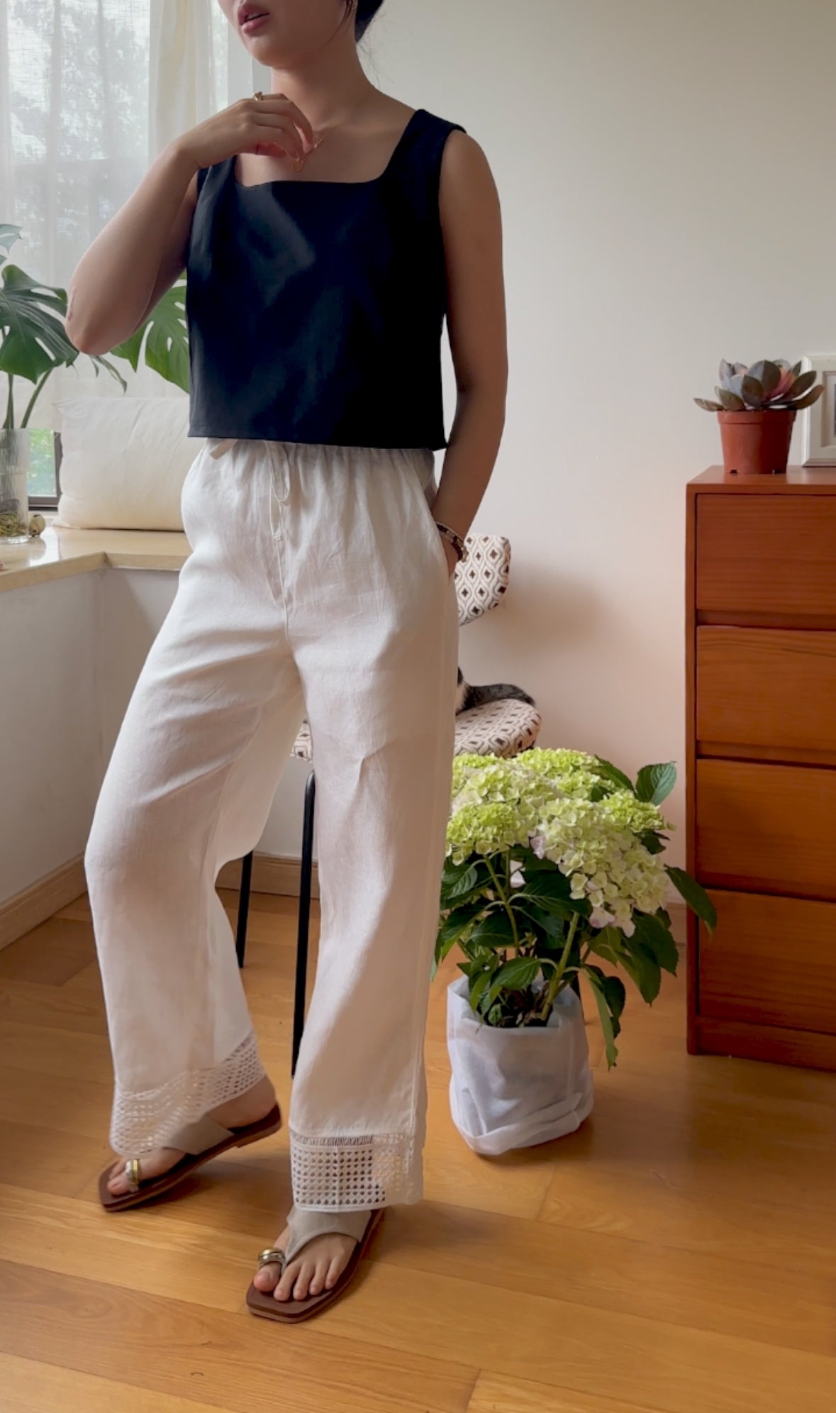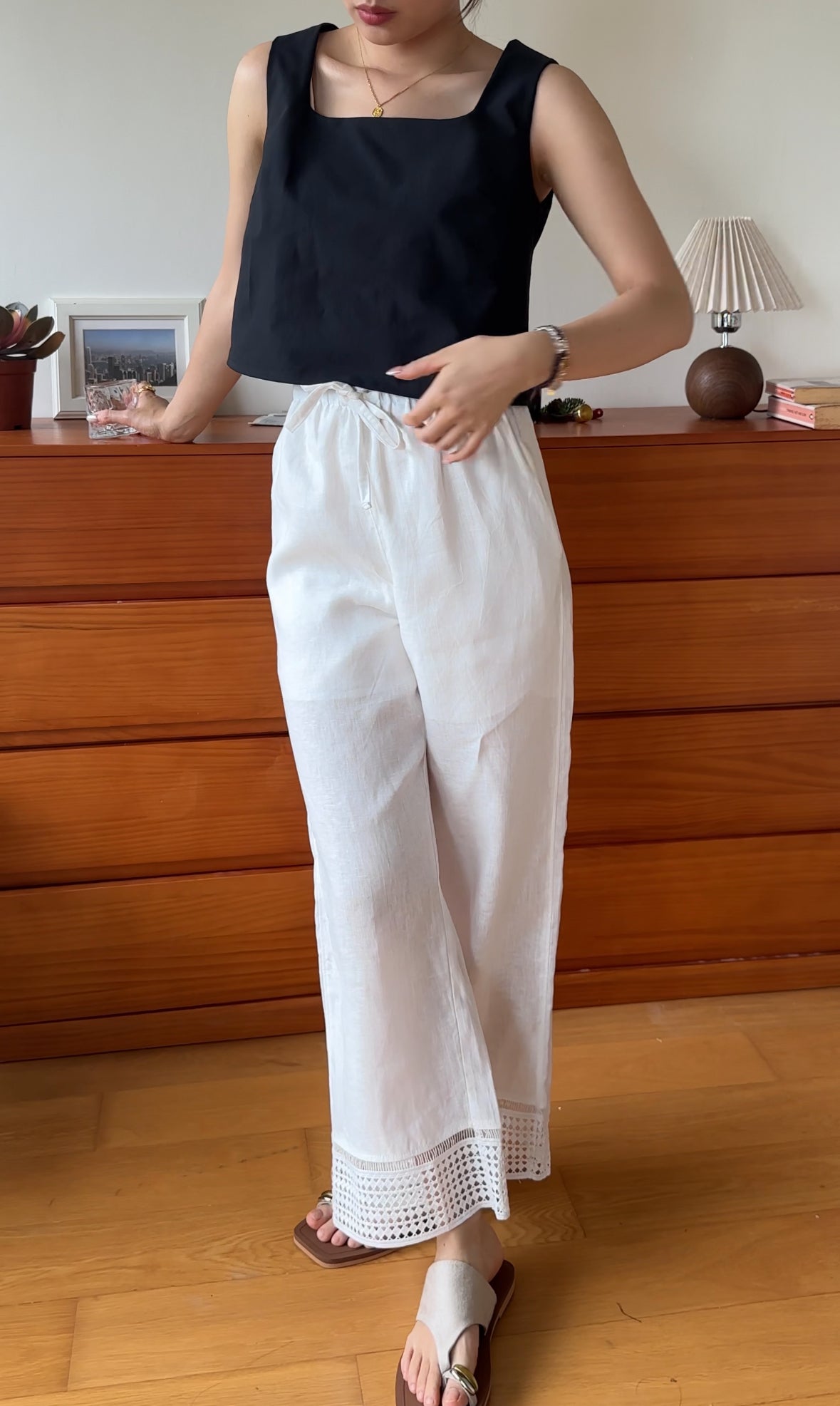 GC04302 Linen made Lace Siding Pants (ONLY S)