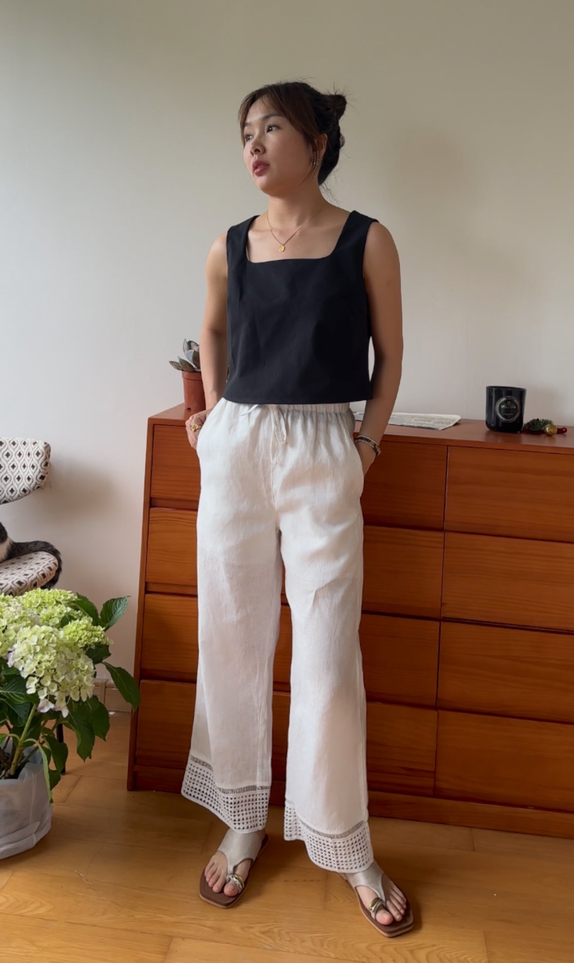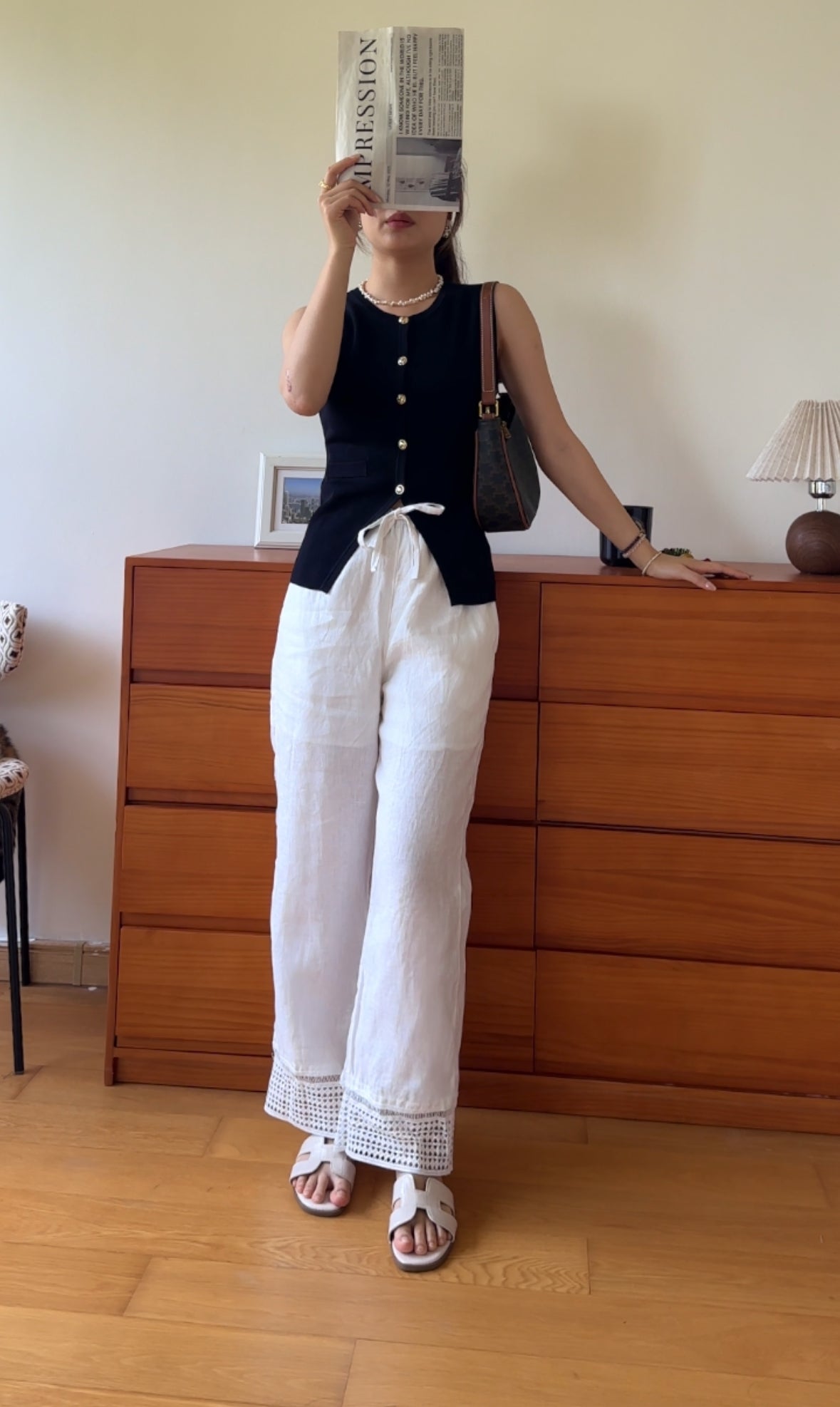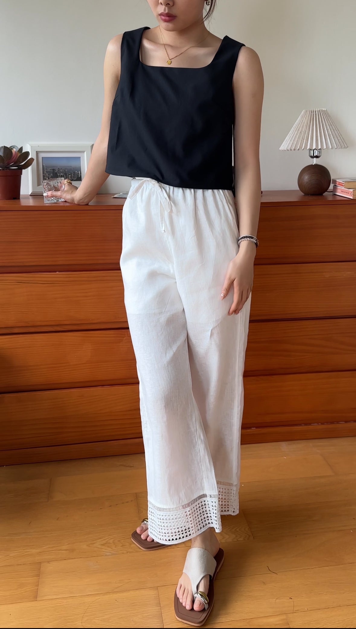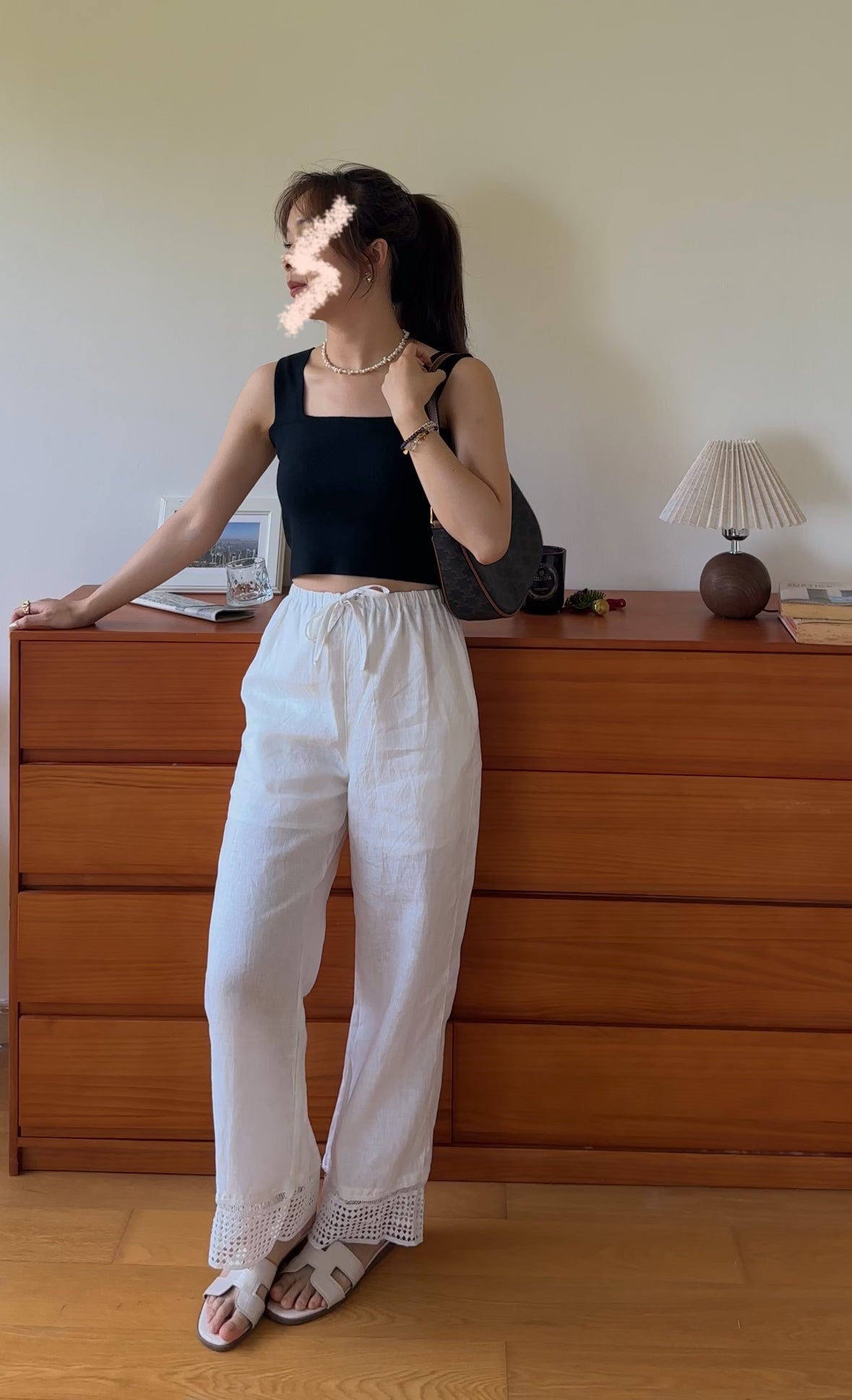 GC04302 Linen made Lace Siding Pants (ONLY S)