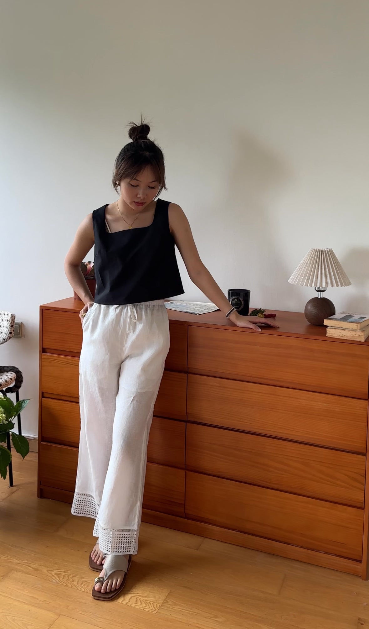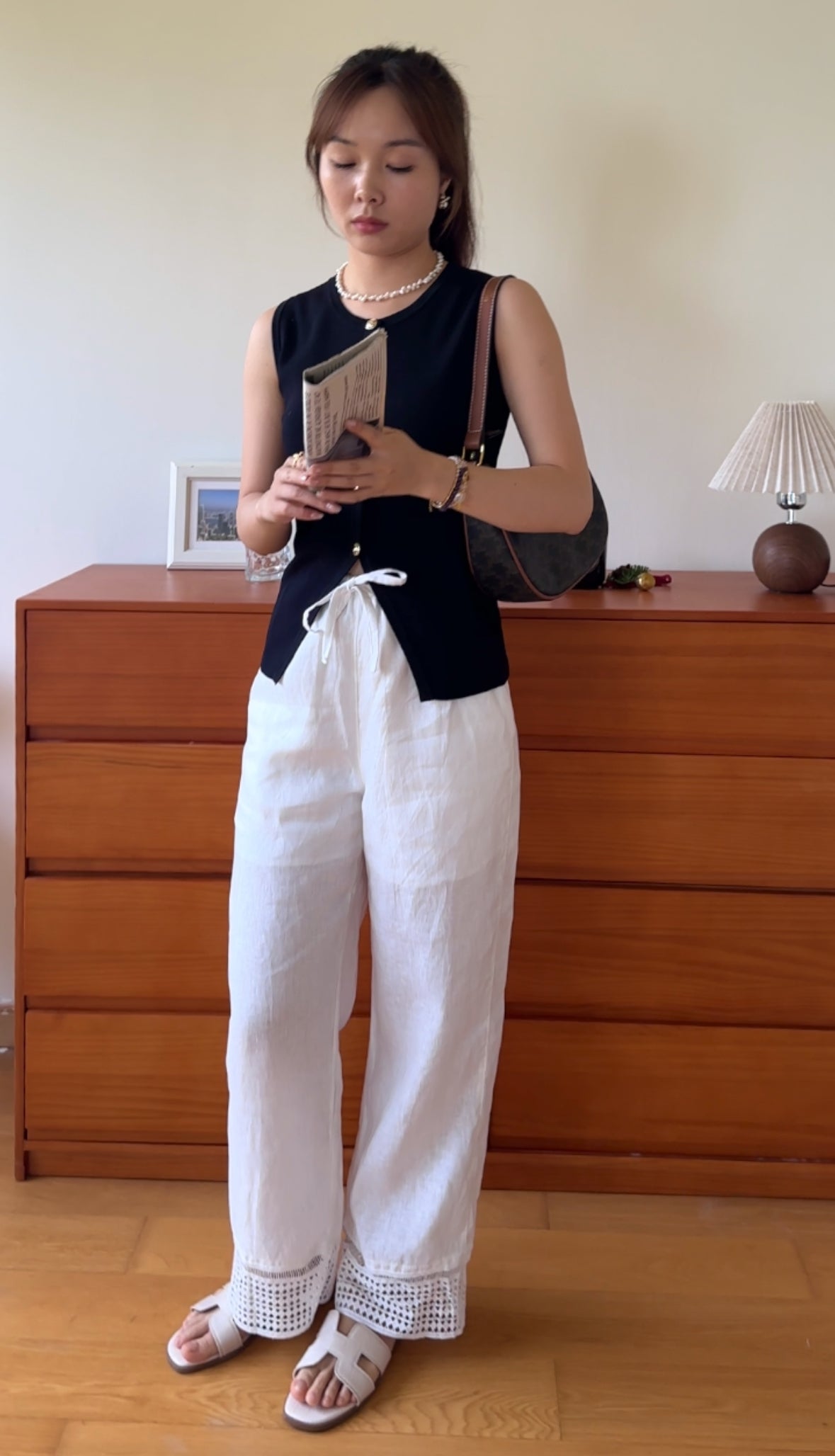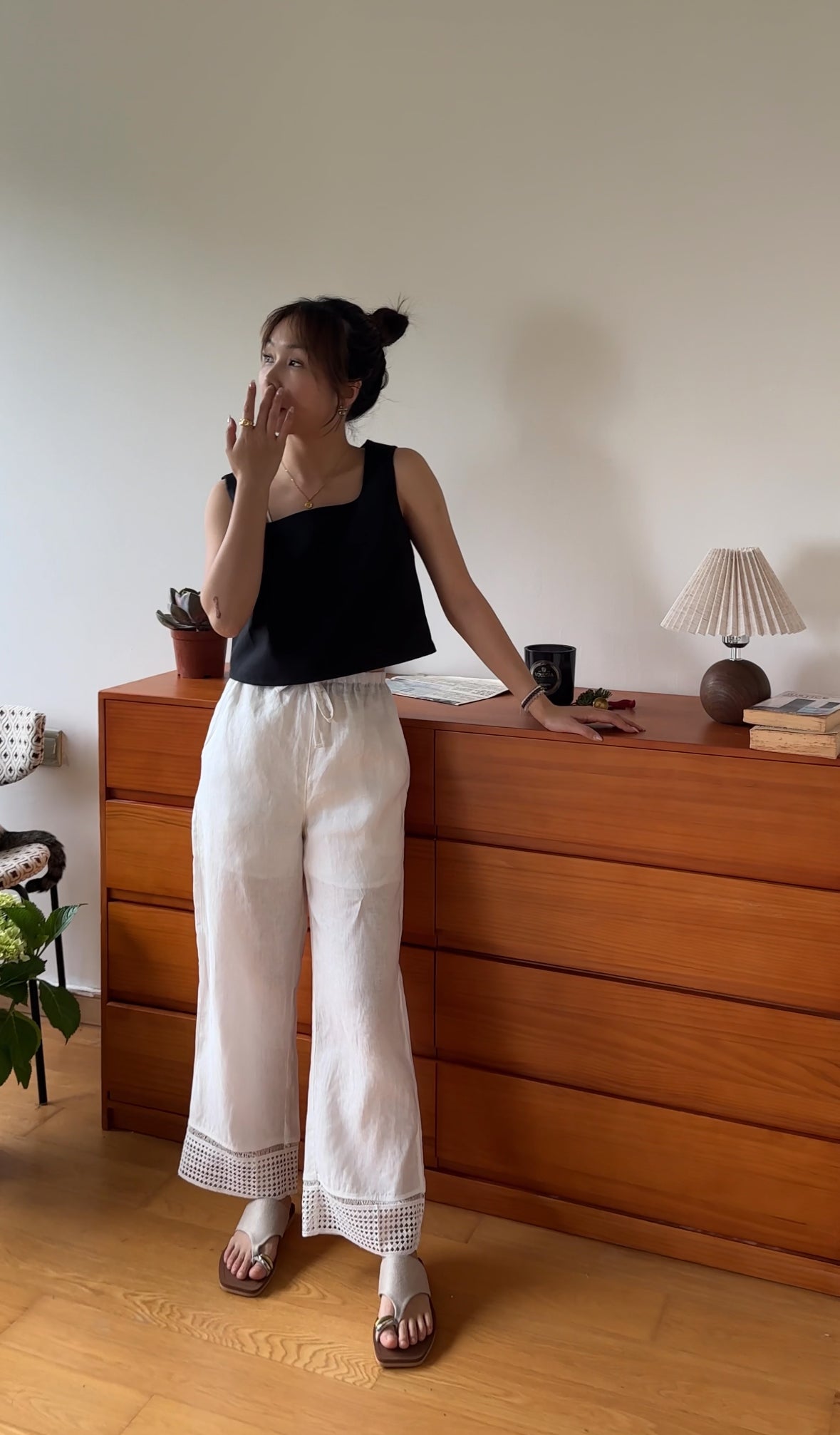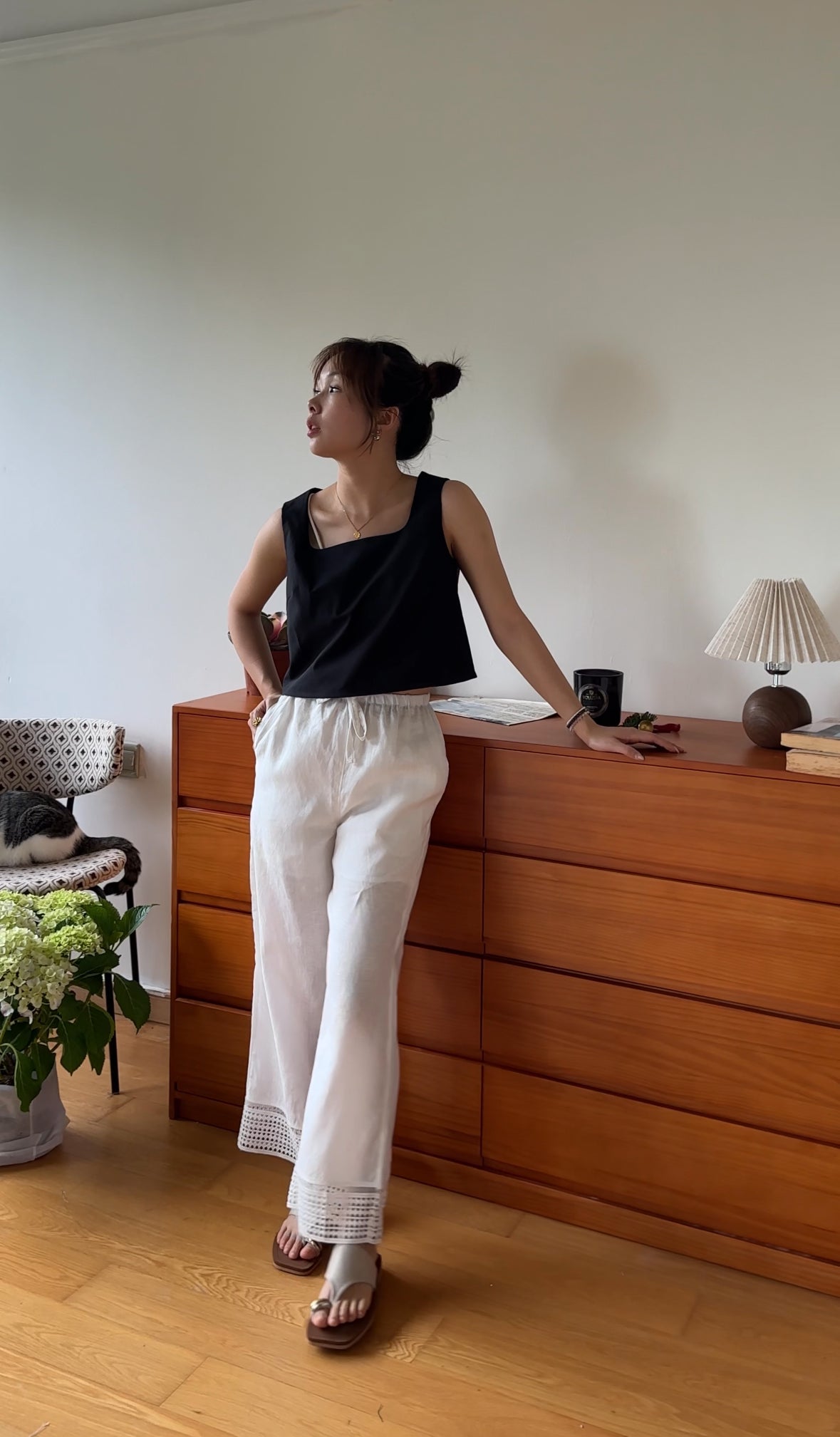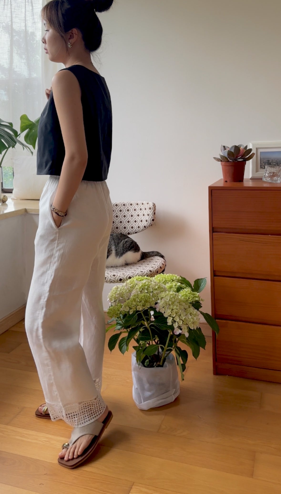 GC04302 Linen made Lace Siding Pants (ONLY S)