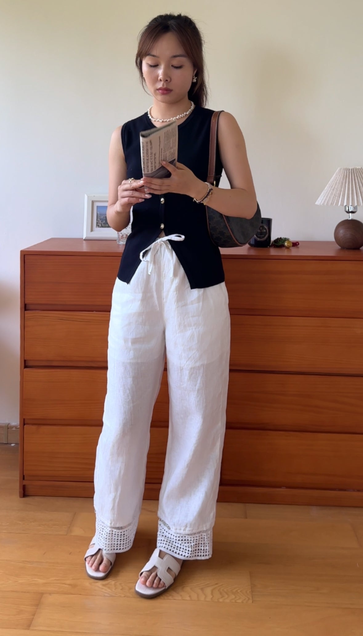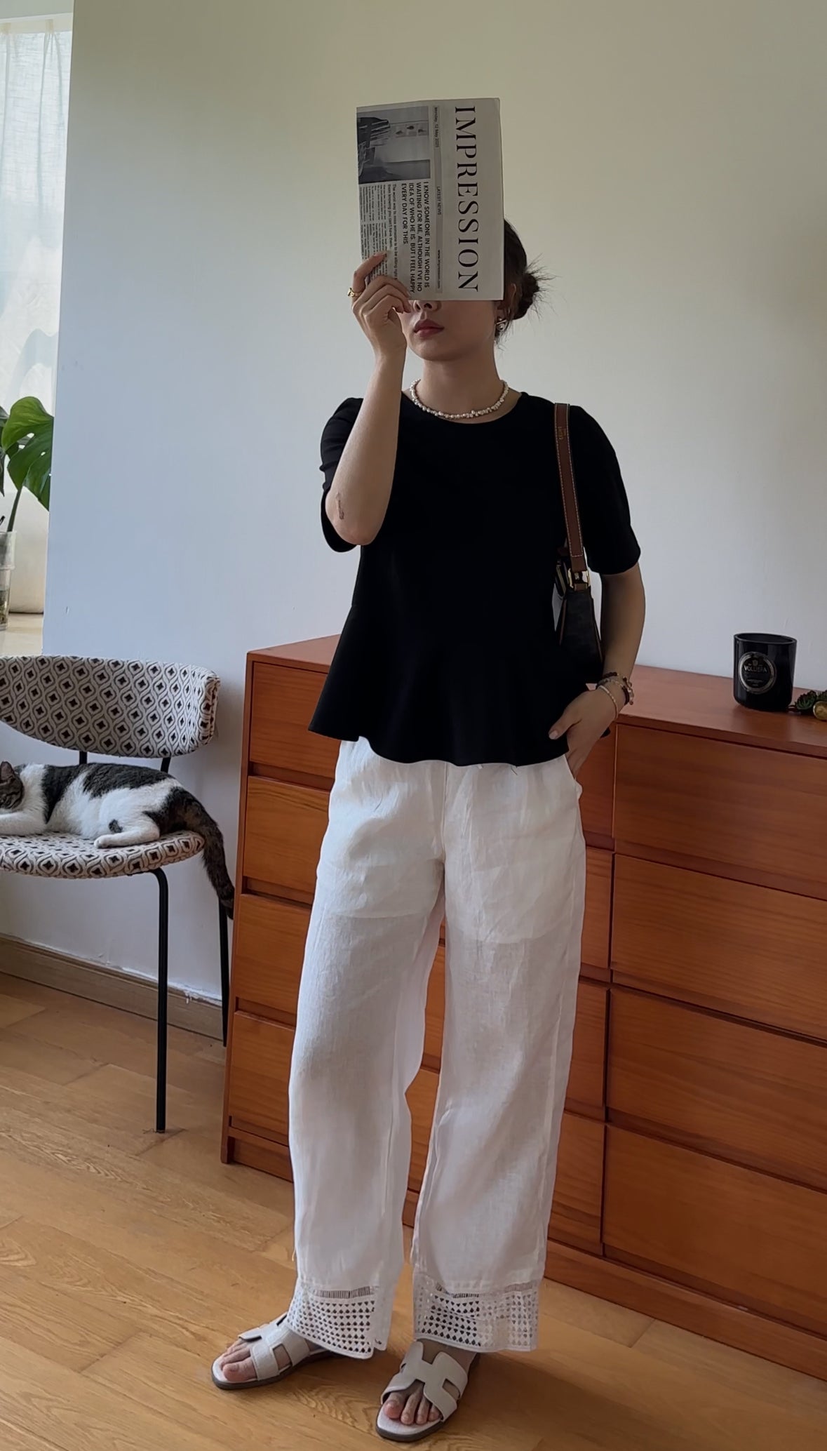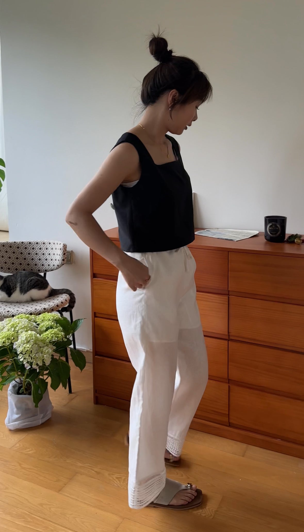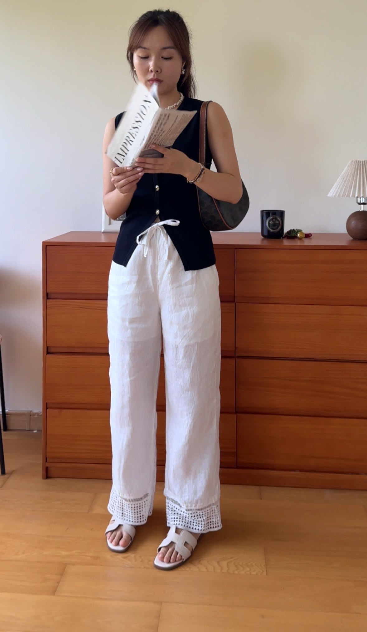 GC04302 Linen made Lace Siding Pants (ONLY S)