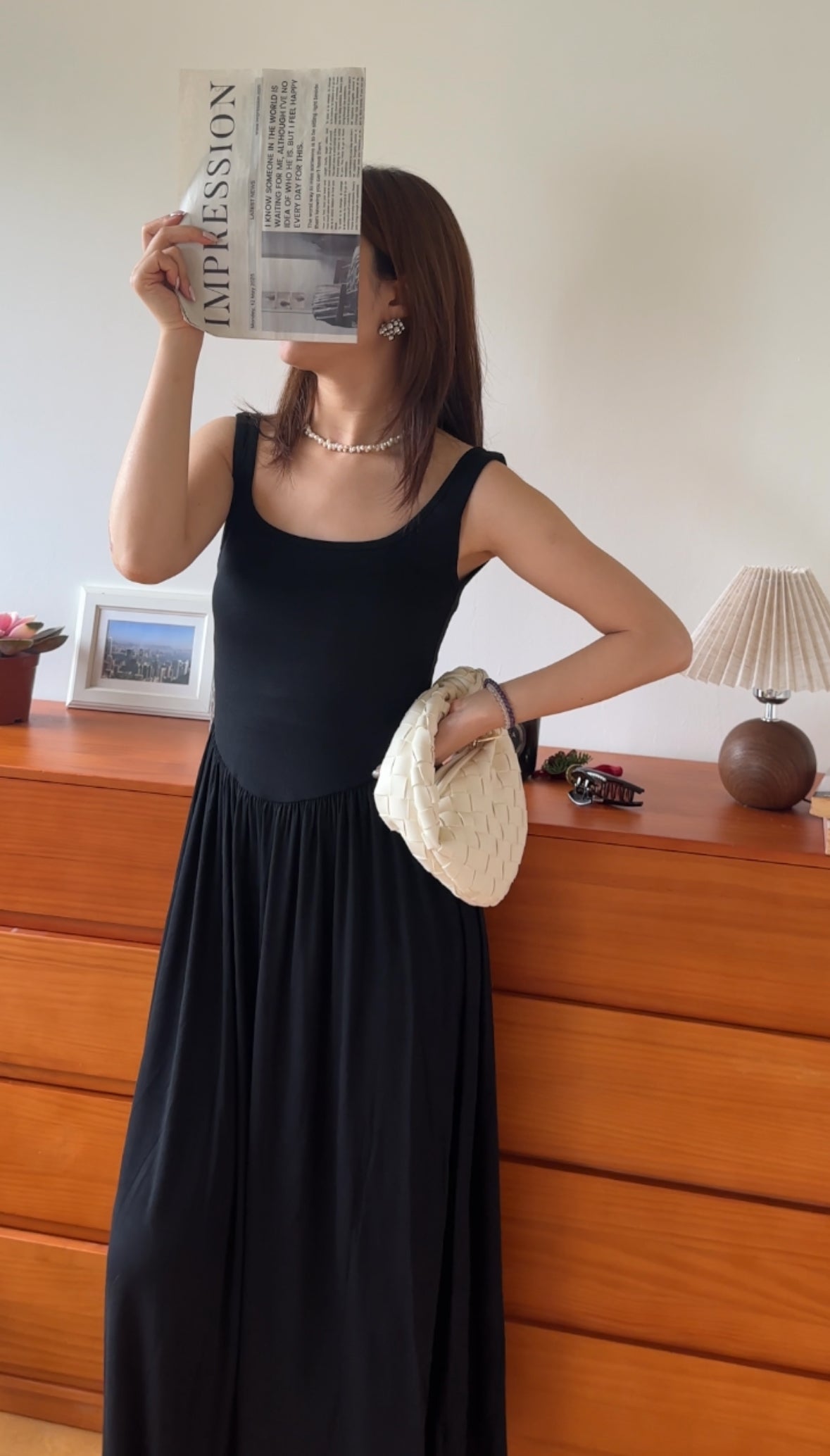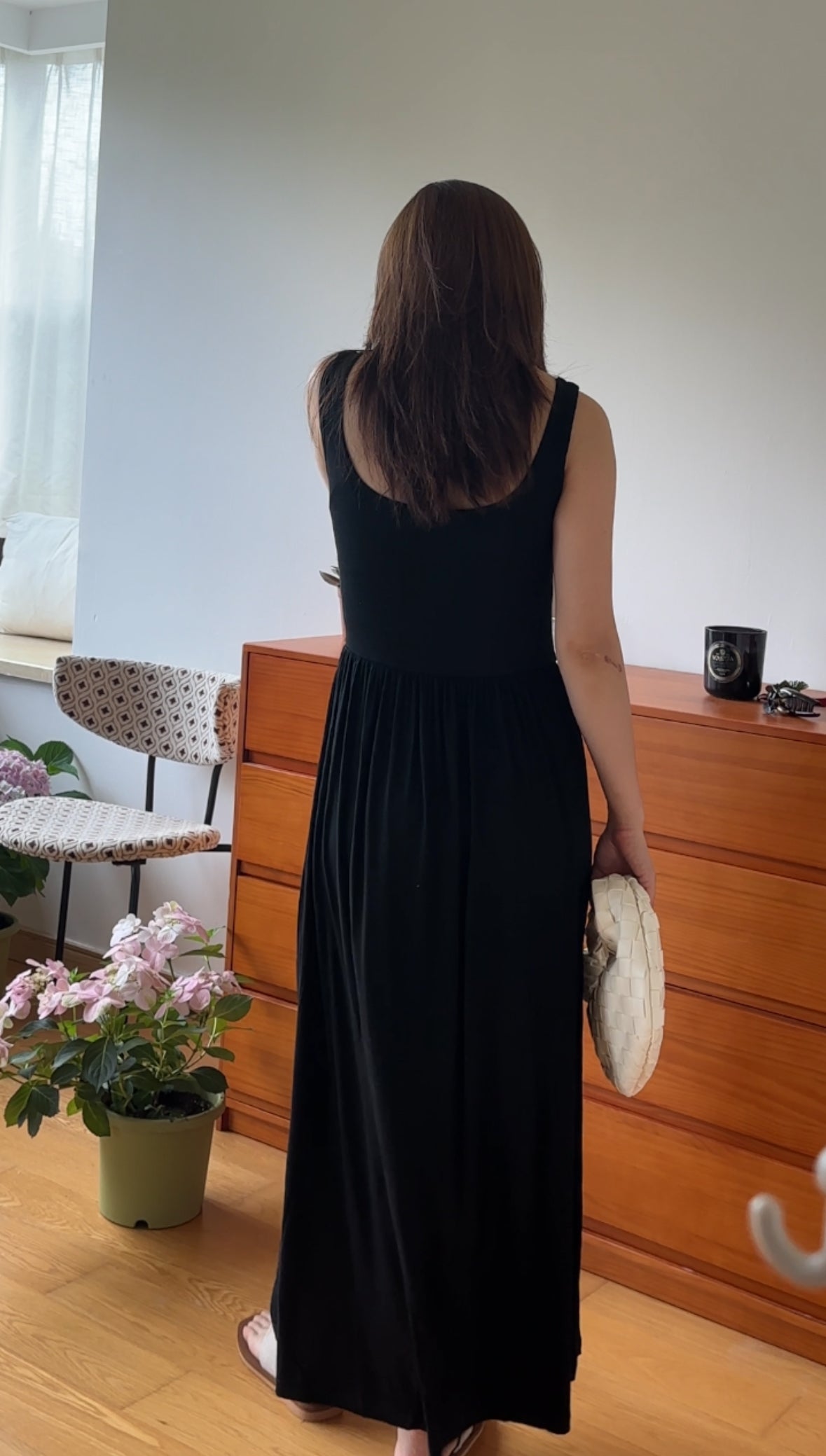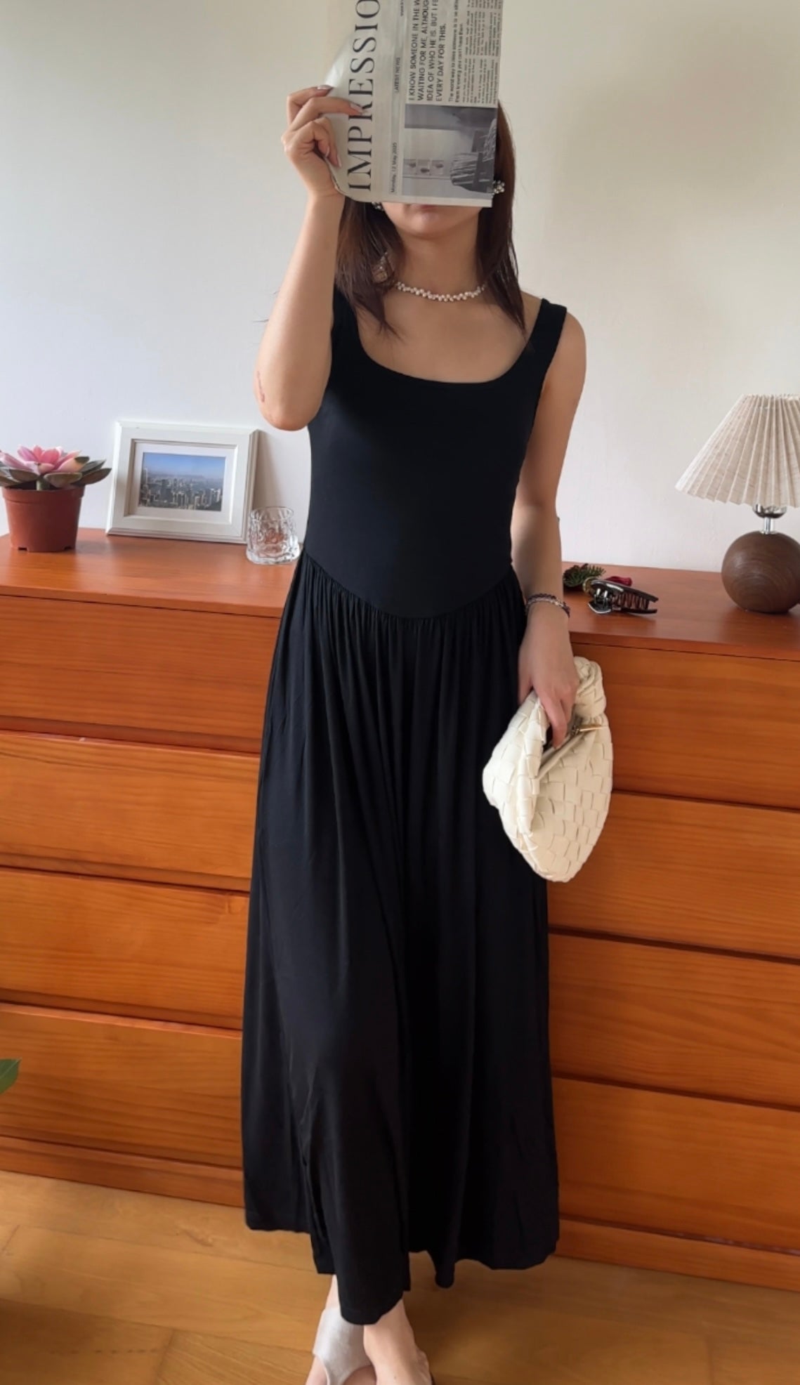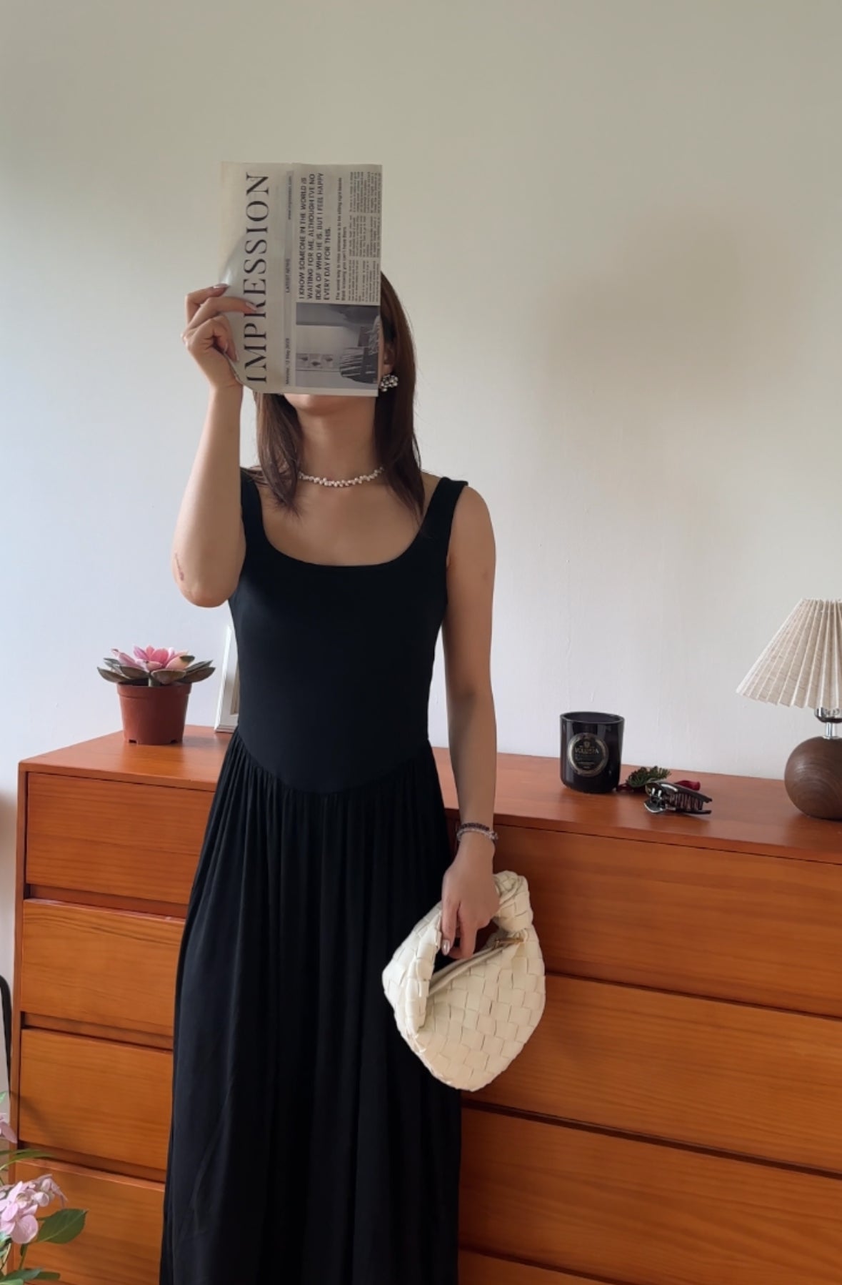 GC05201 Super Comfy&Stretchy Modal Fabric Square Collar Long Dress Black