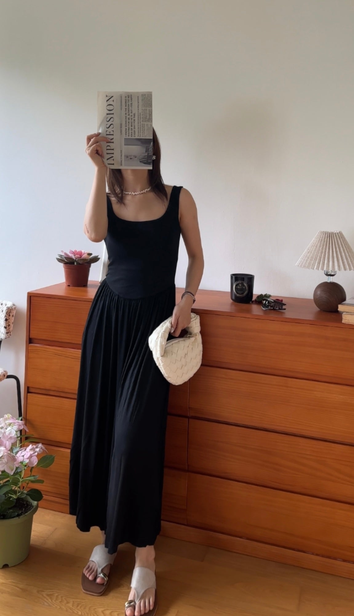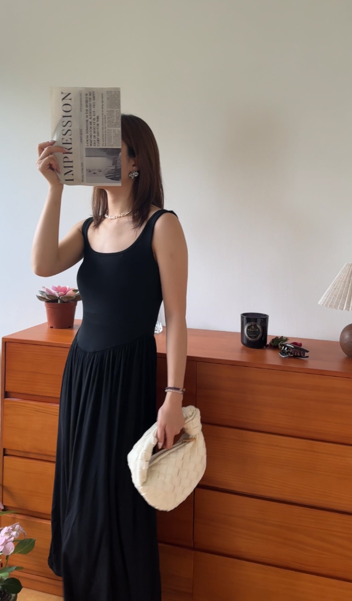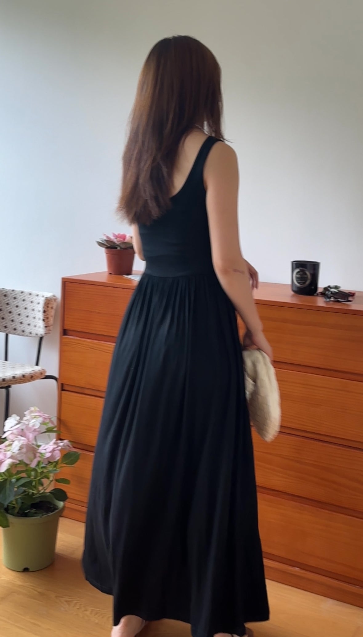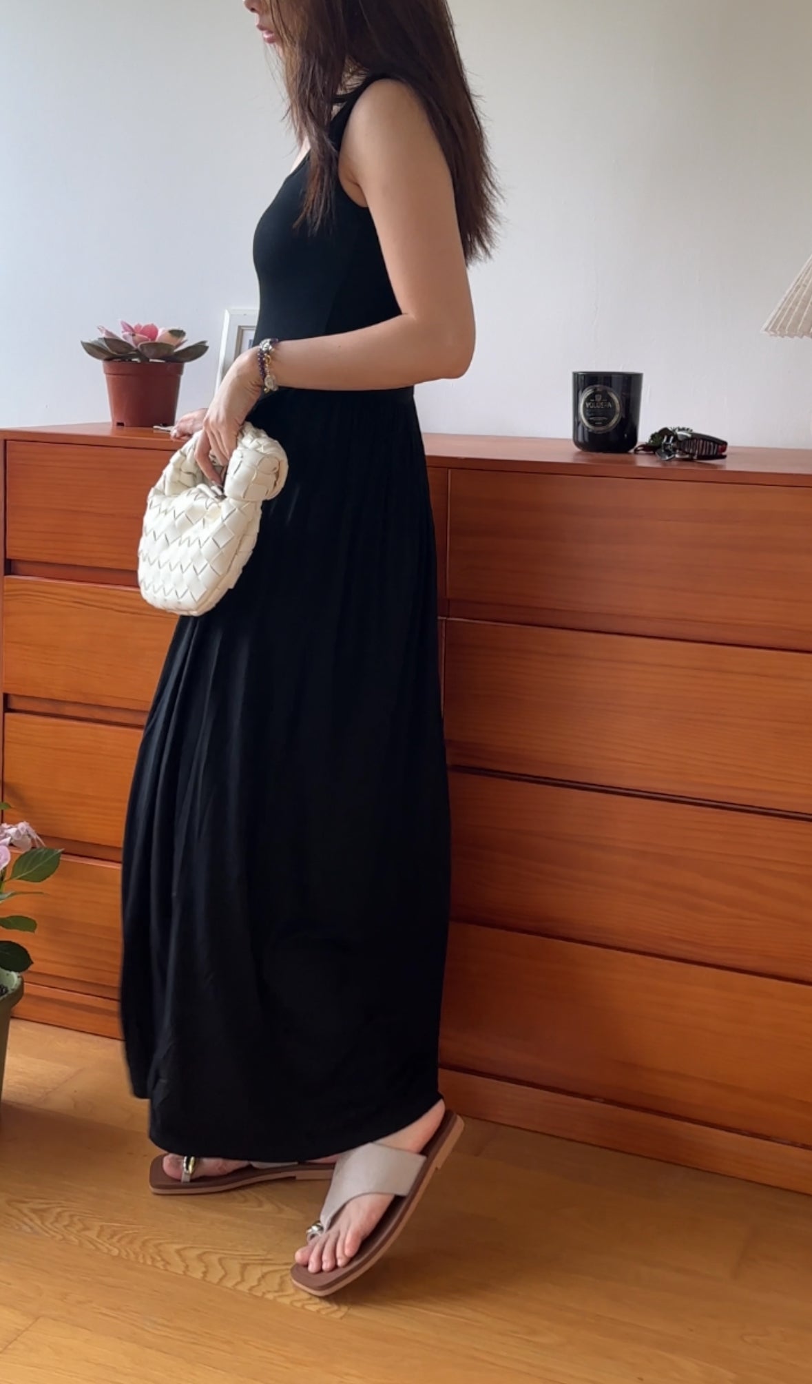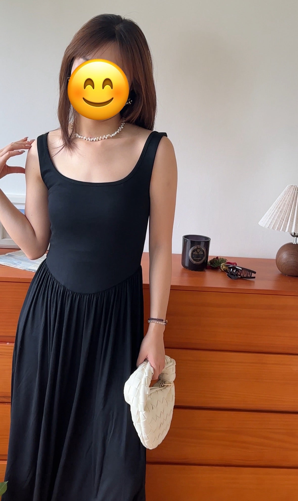 GC05201 Super Comfy&Stretchy Modal Fabric Square Collar Long Dress Black