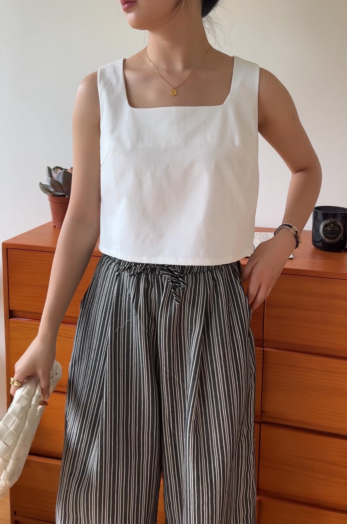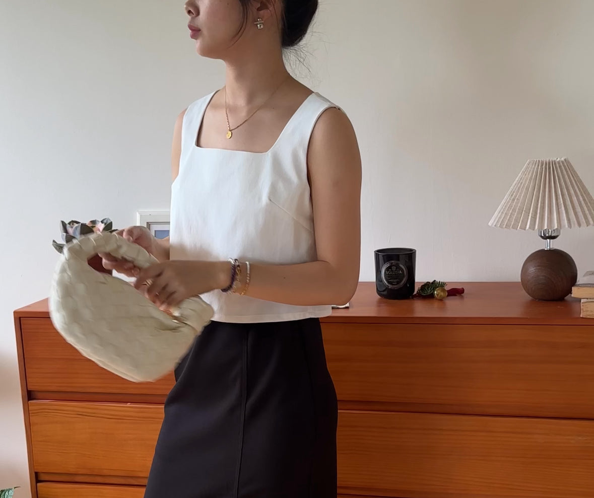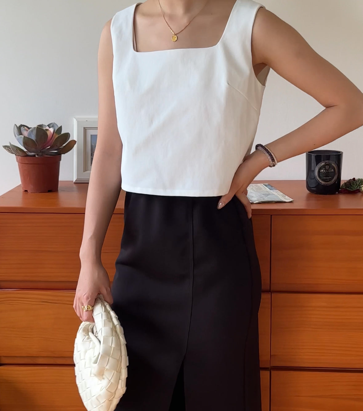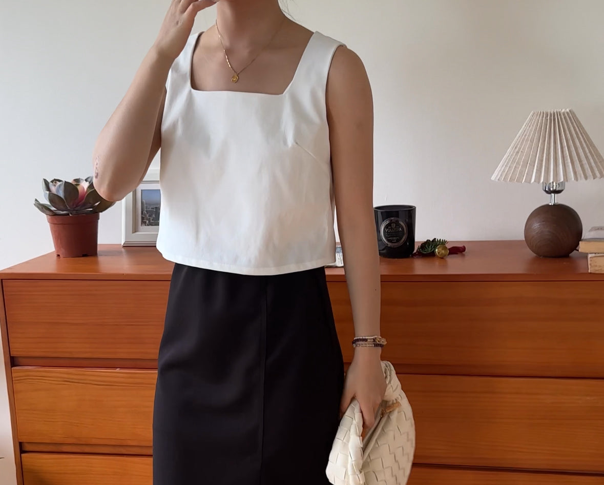 GC05303 立體剪裁 Square Collar Design Cropped Top 抗皺面料(White/Black)