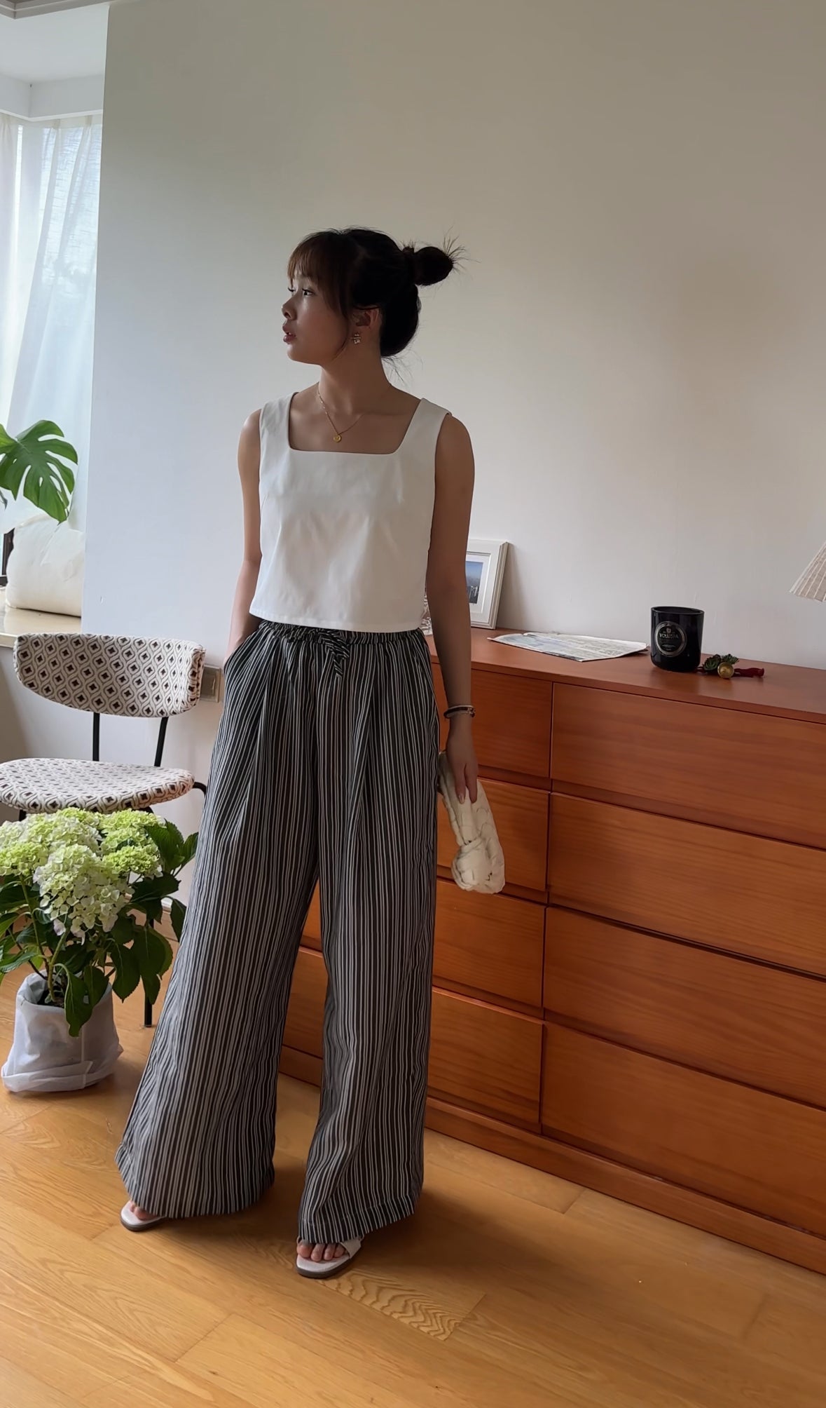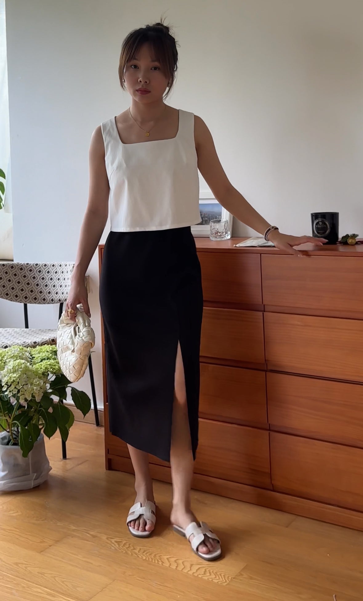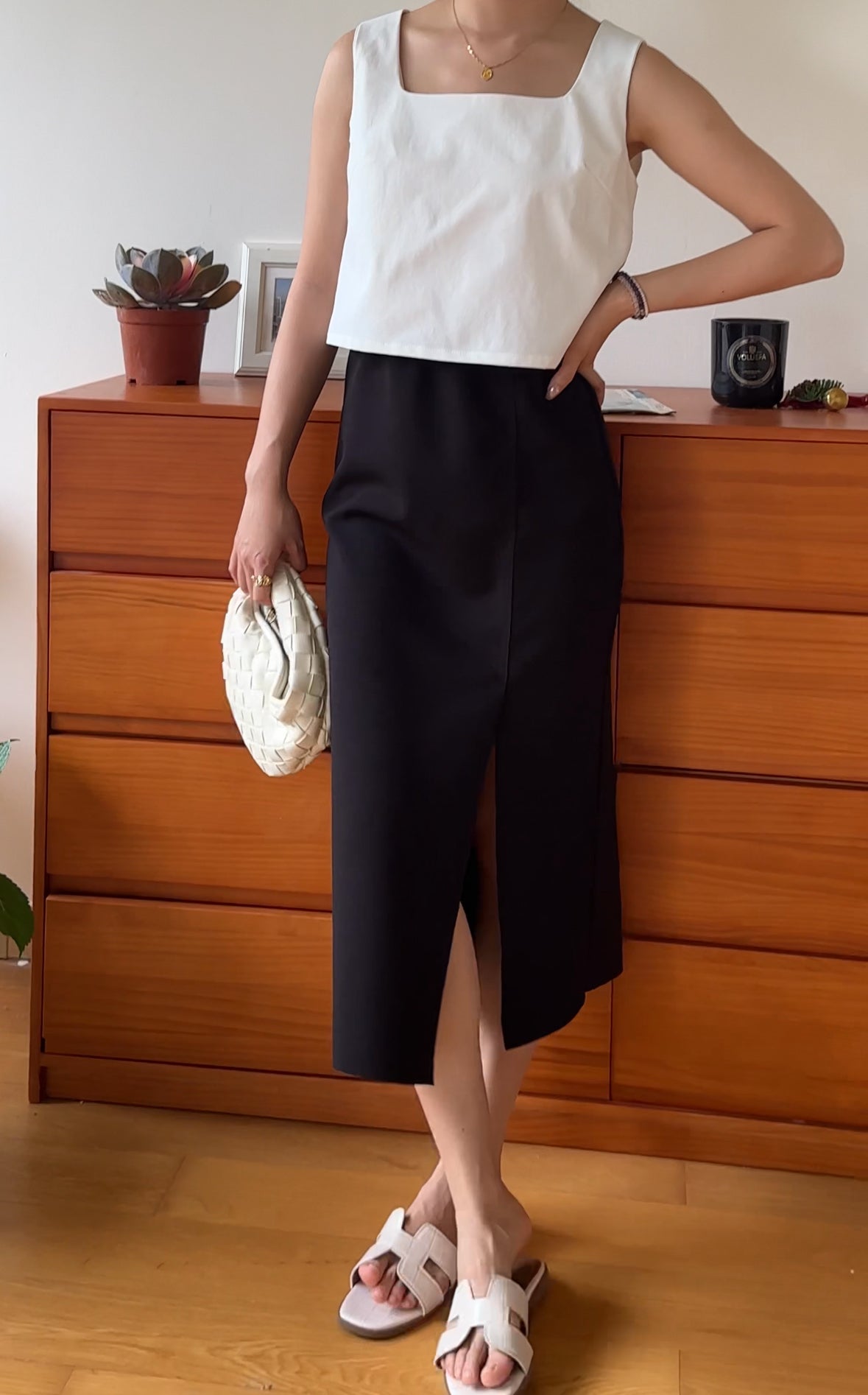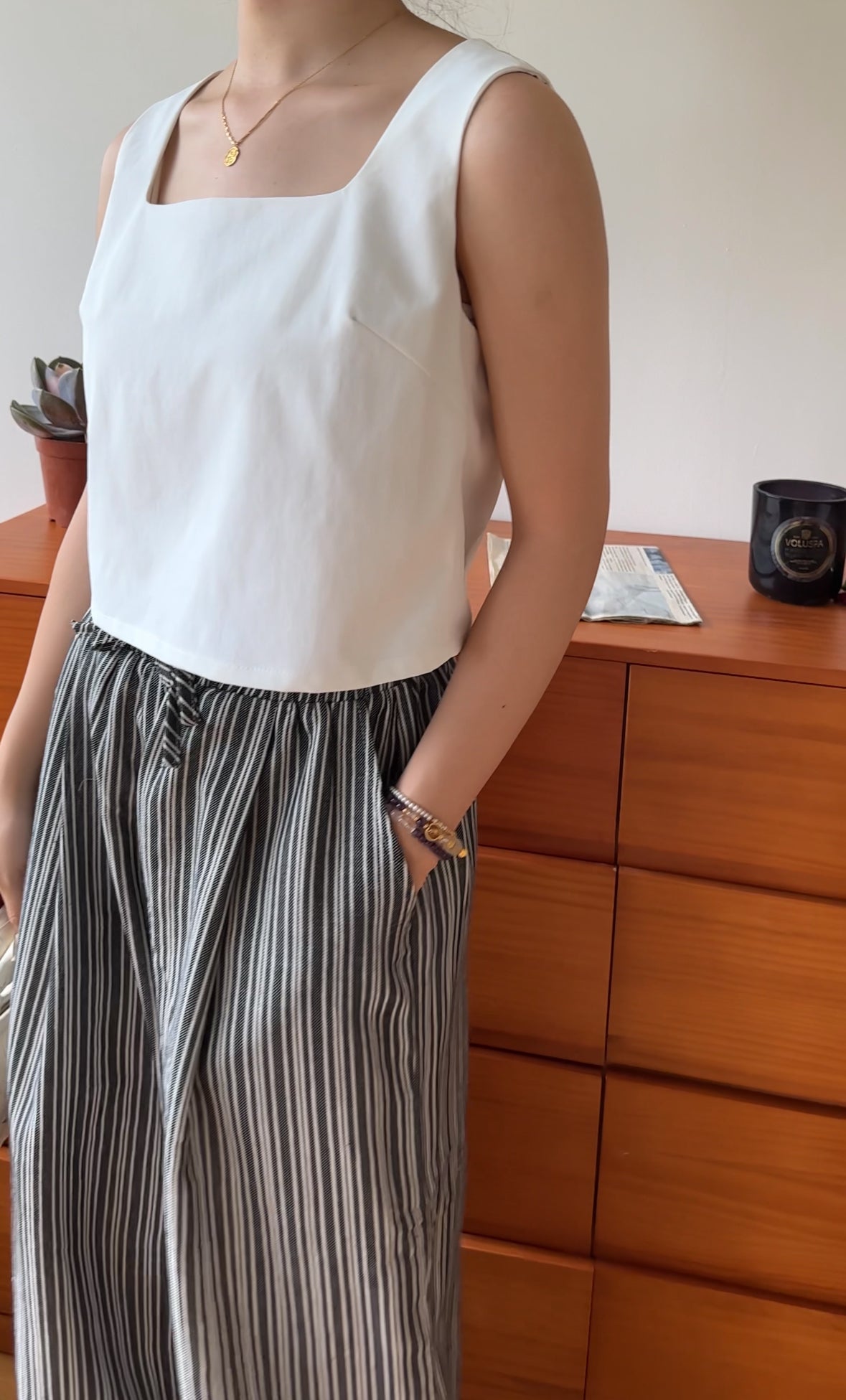 GC05303 立體剪裁 Square Collar Design Cropped Top 抗皺面料(White/Black)