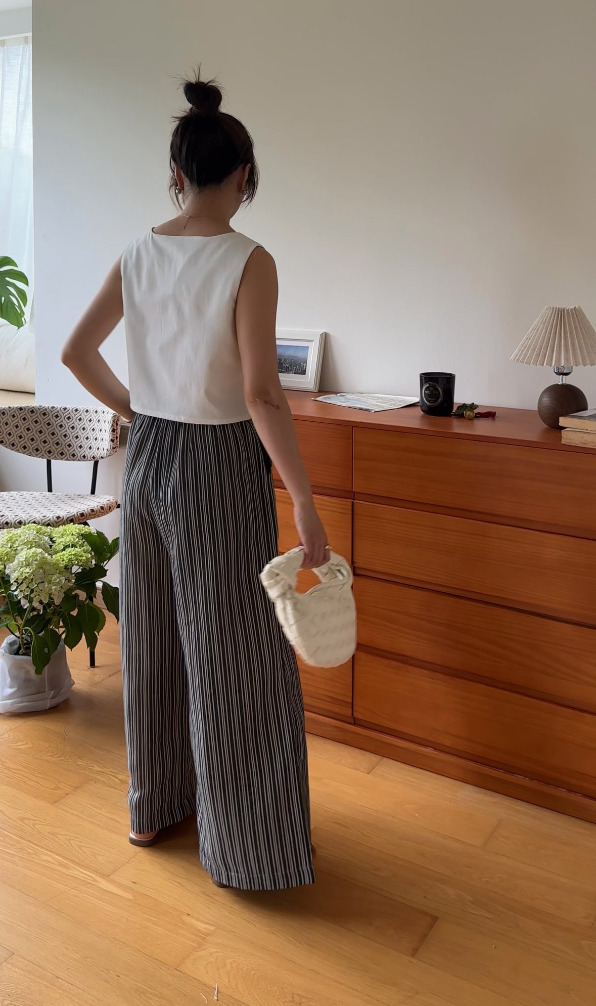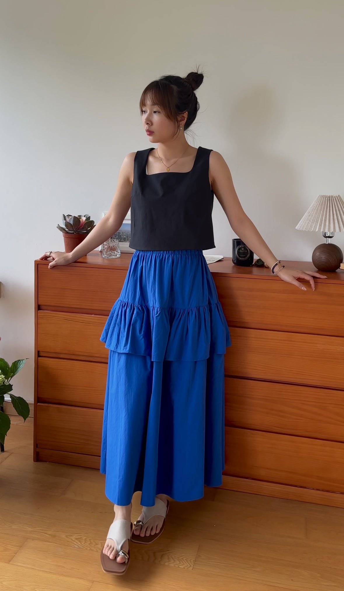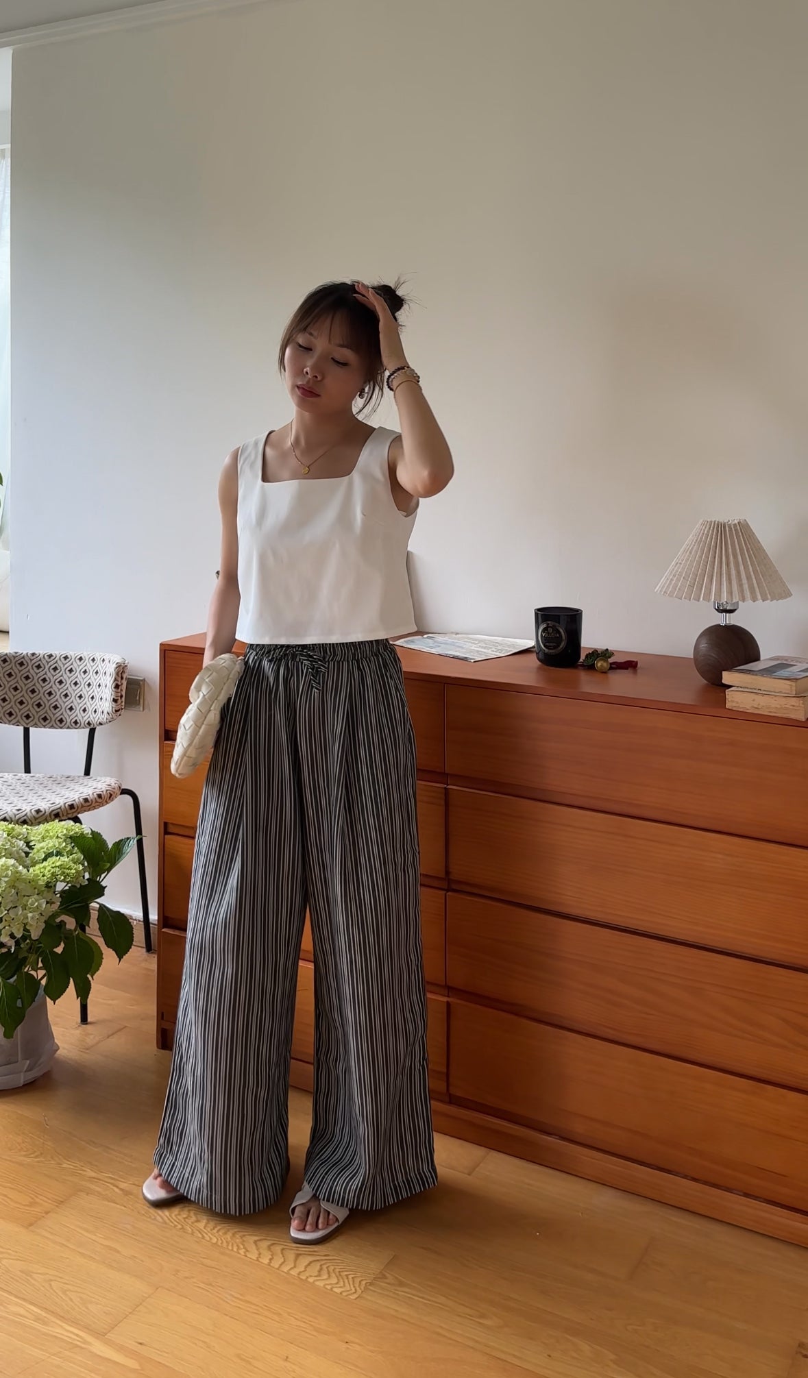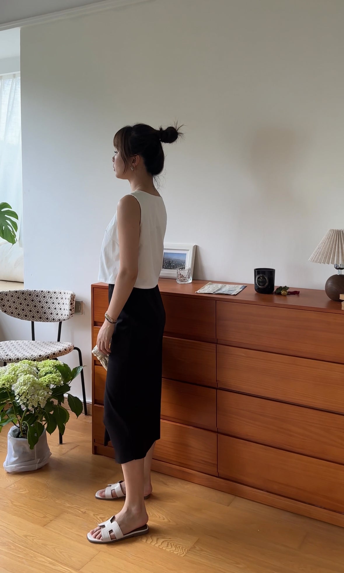 GC05303 立體剪裁 Square Collar Design Cropped Top 抗皺面料(White/Black)