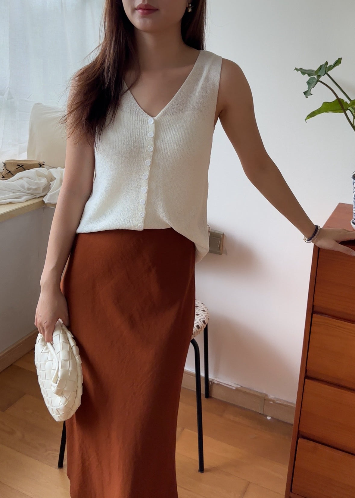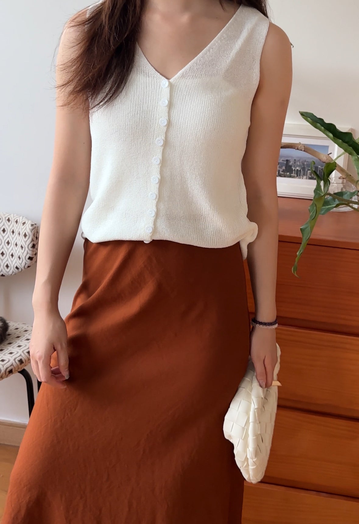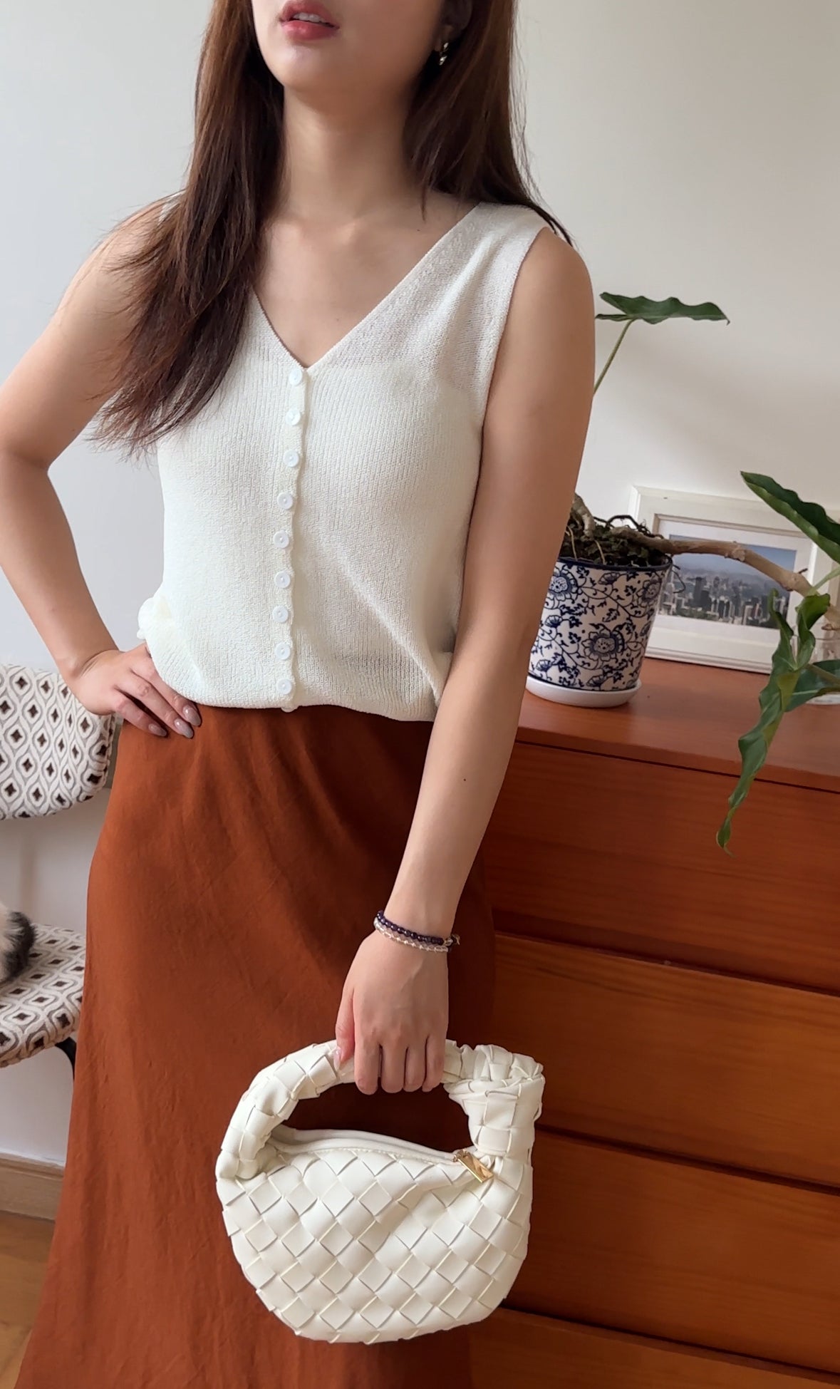 GC07308 Texture Fabric V Neck Basic Knitted Gilet White