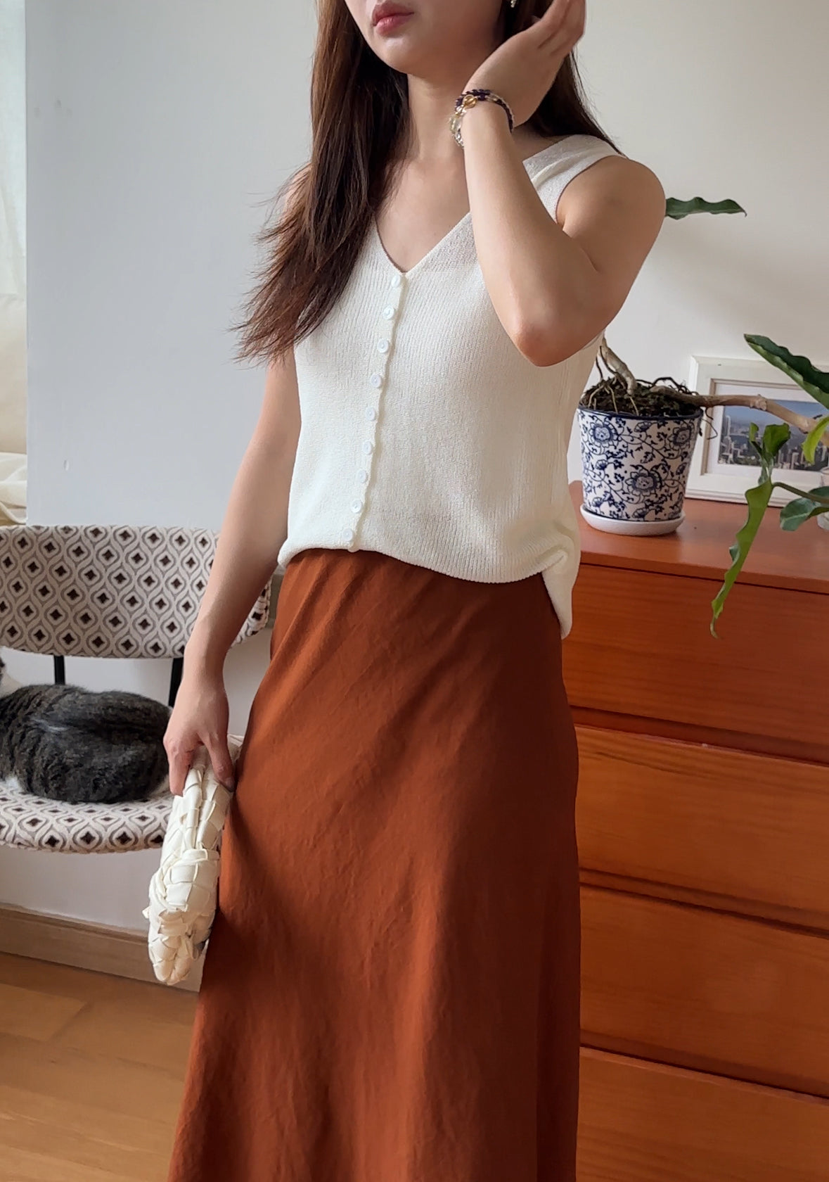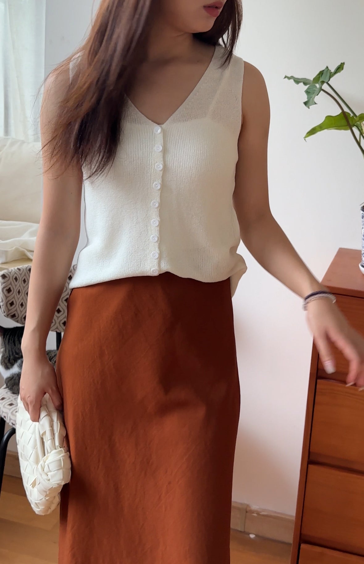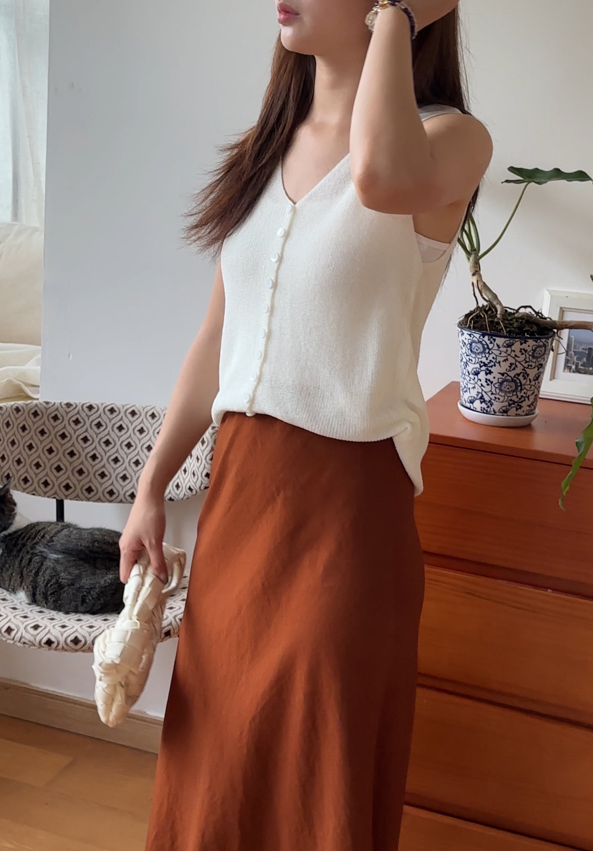 GC07308 Texture Fabric V Neck Basic Knitted Gilet White