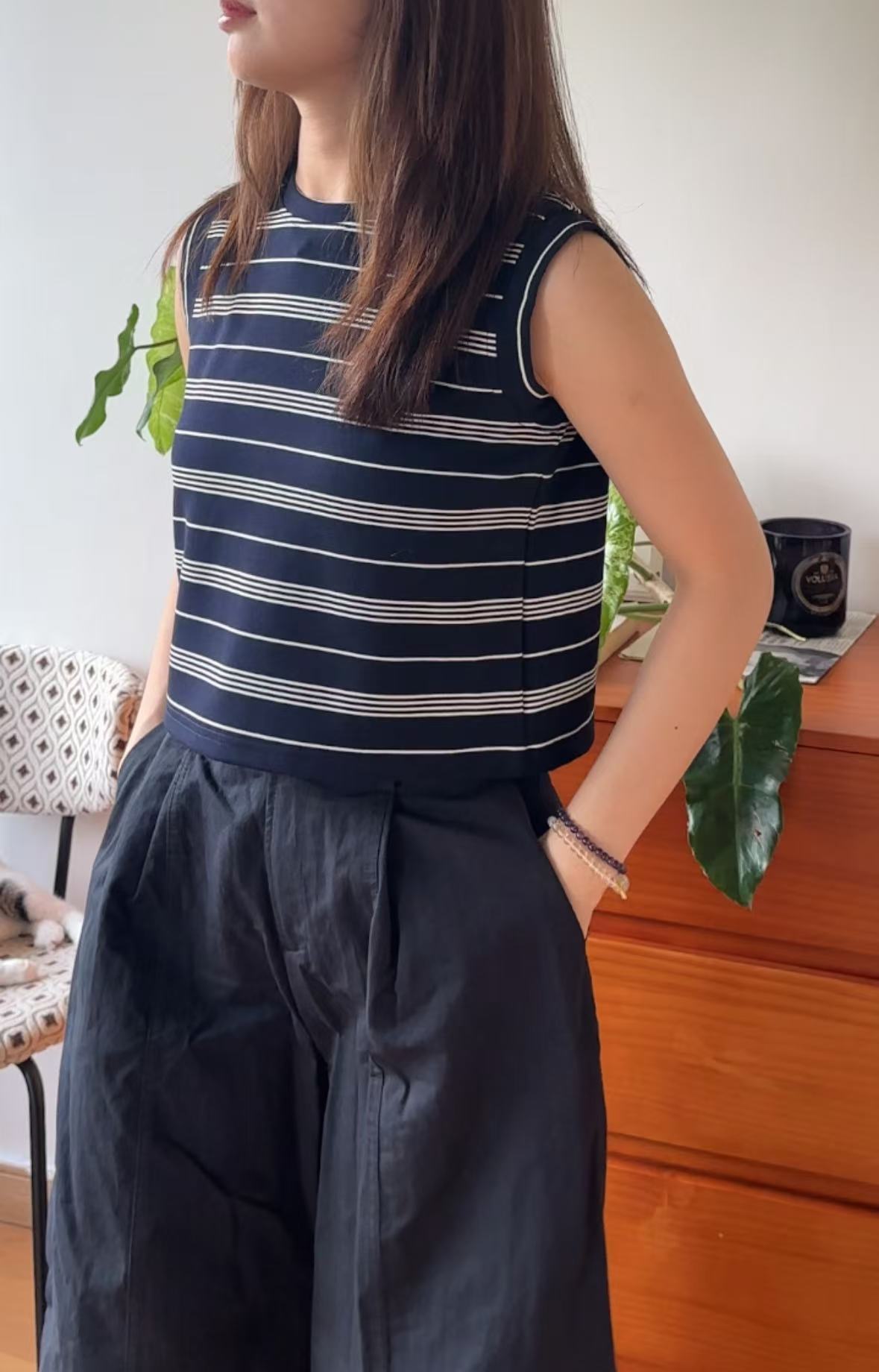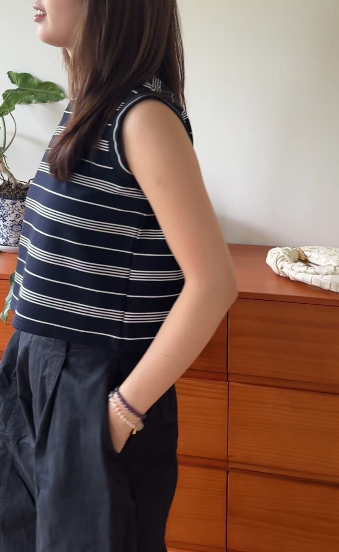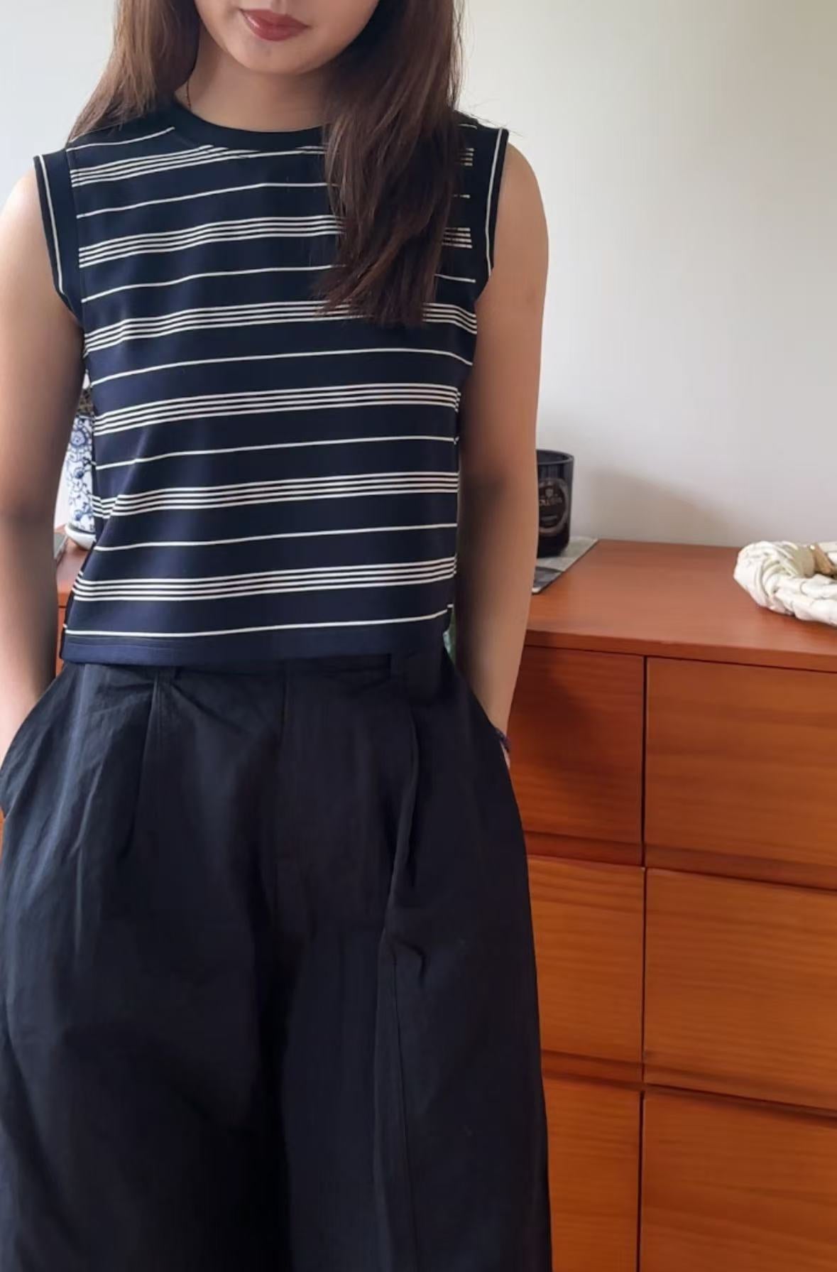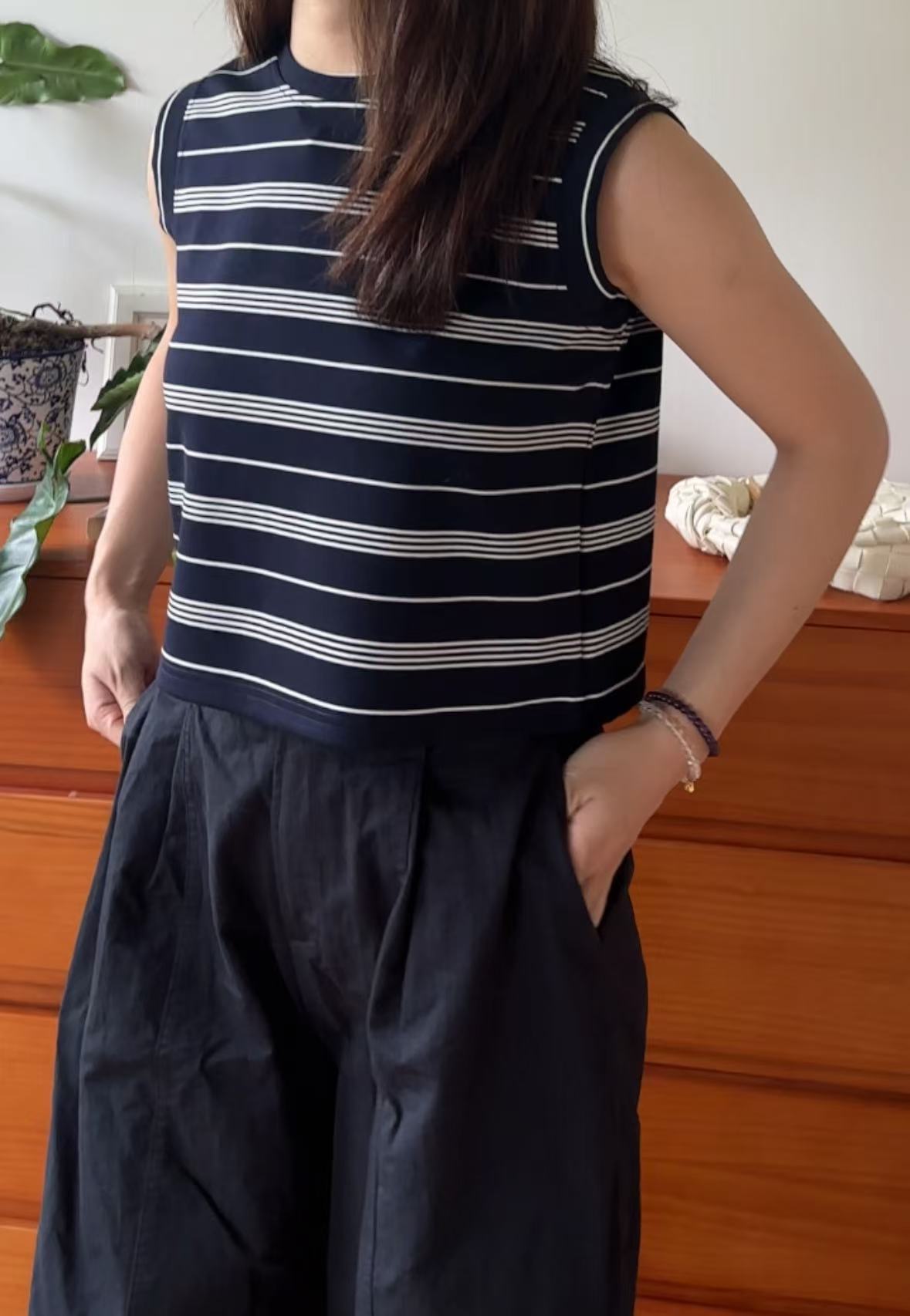 GC08117 Premium anti-Crinkle 抗皺面料 Stripe Cropped Design Top