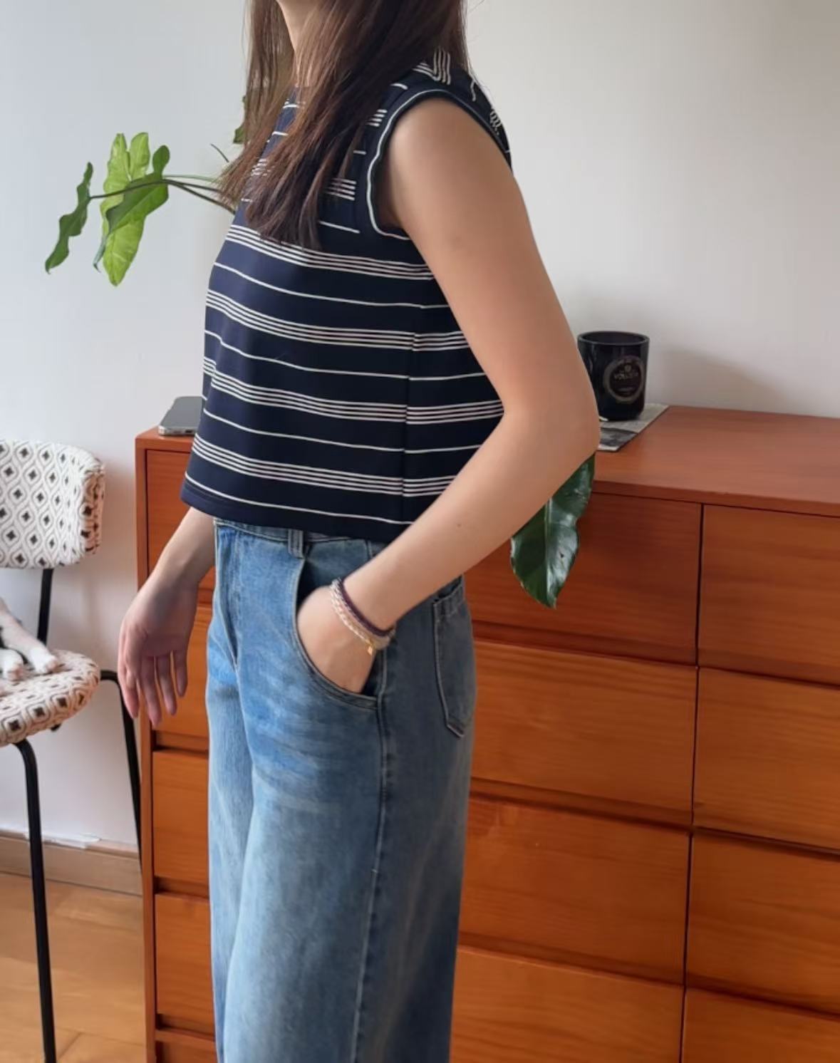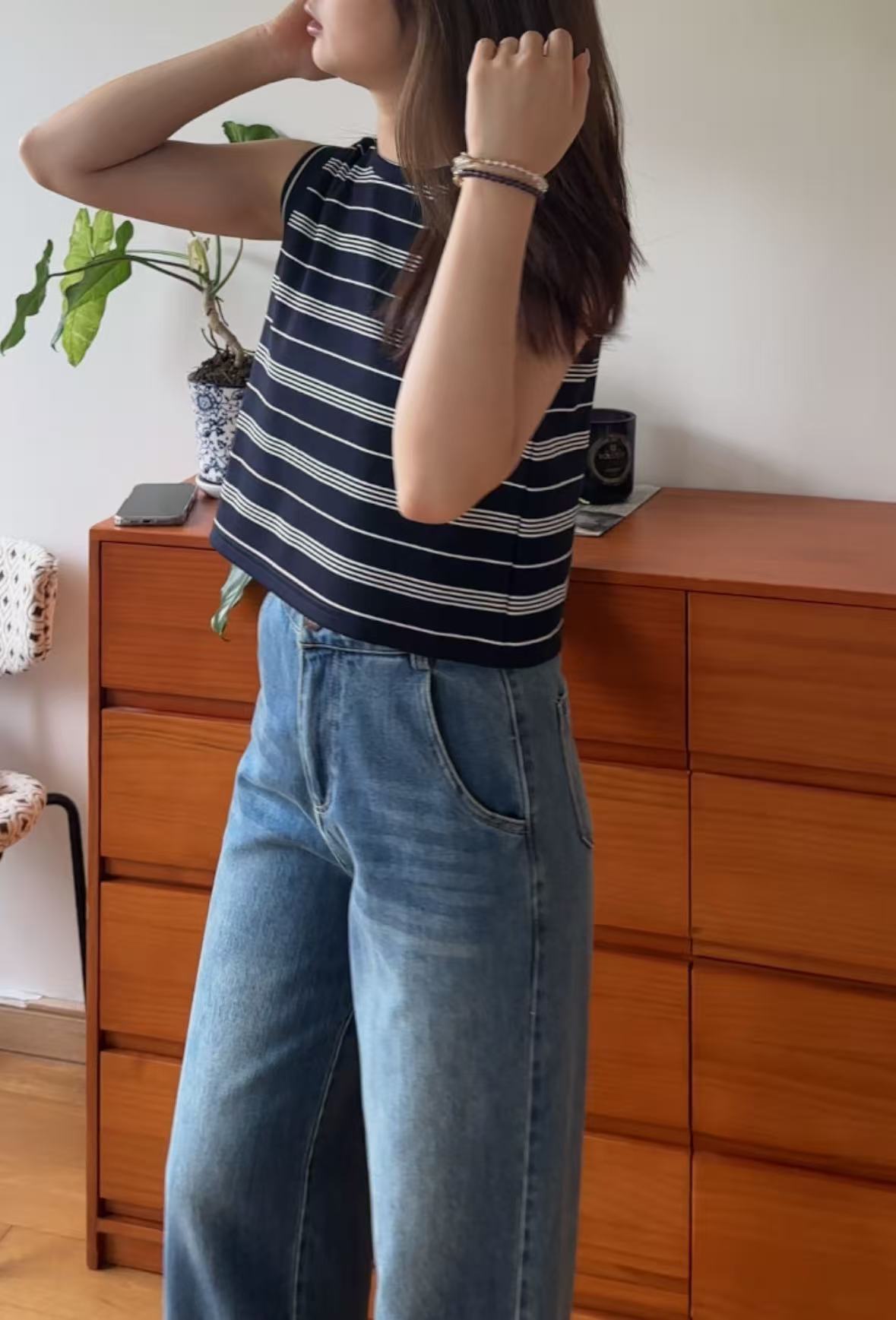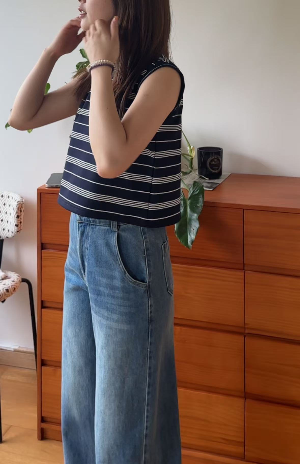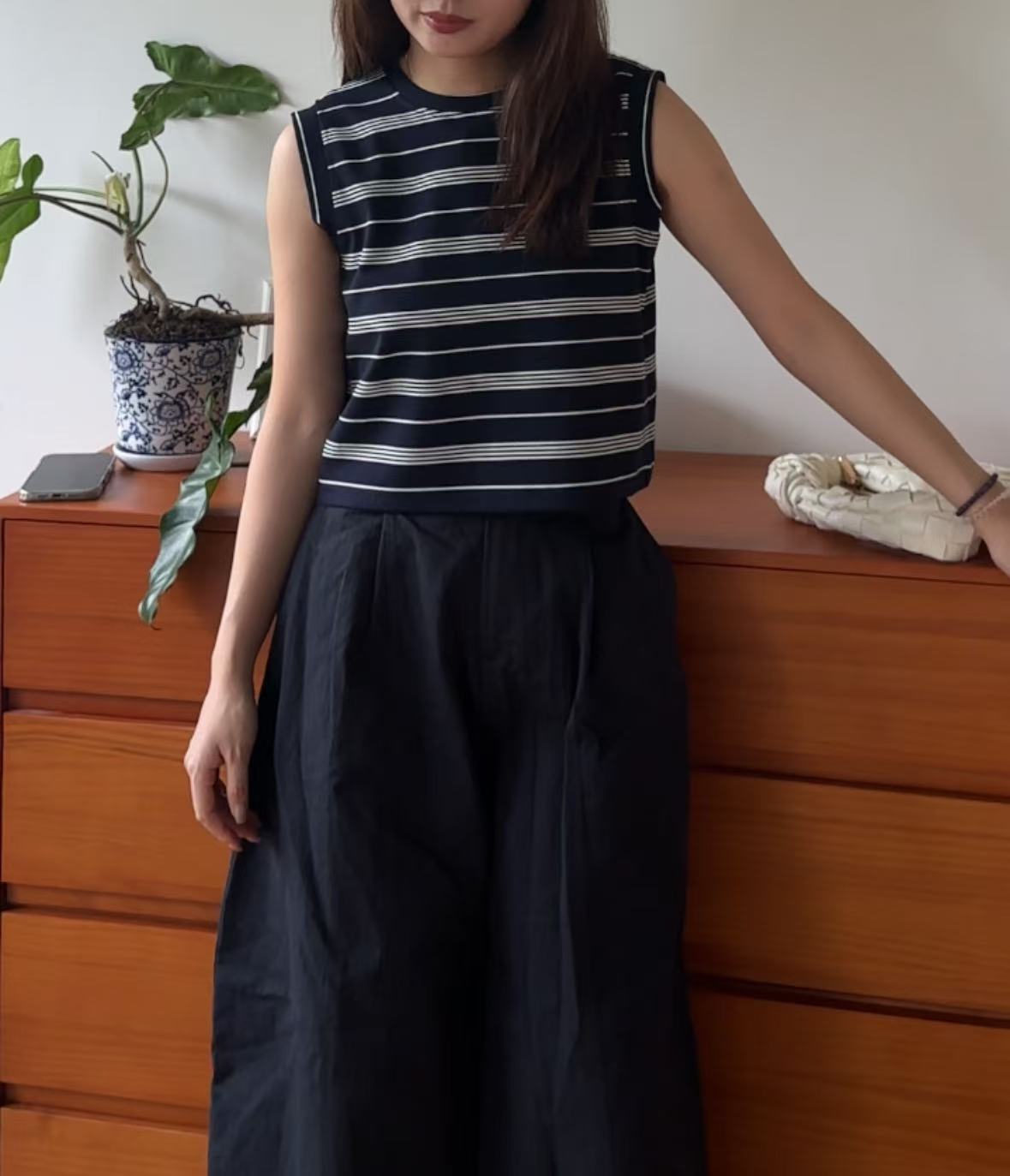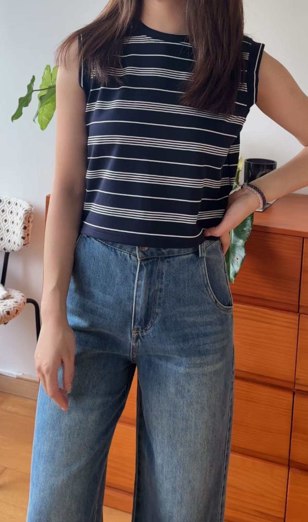 GC08117 Premium anti-Crinkle 抗皺面料 Stripe Cropped Design Top