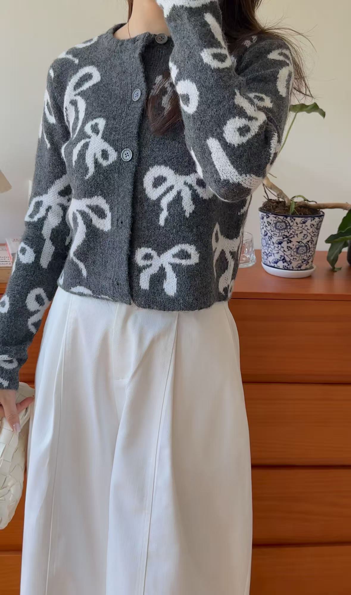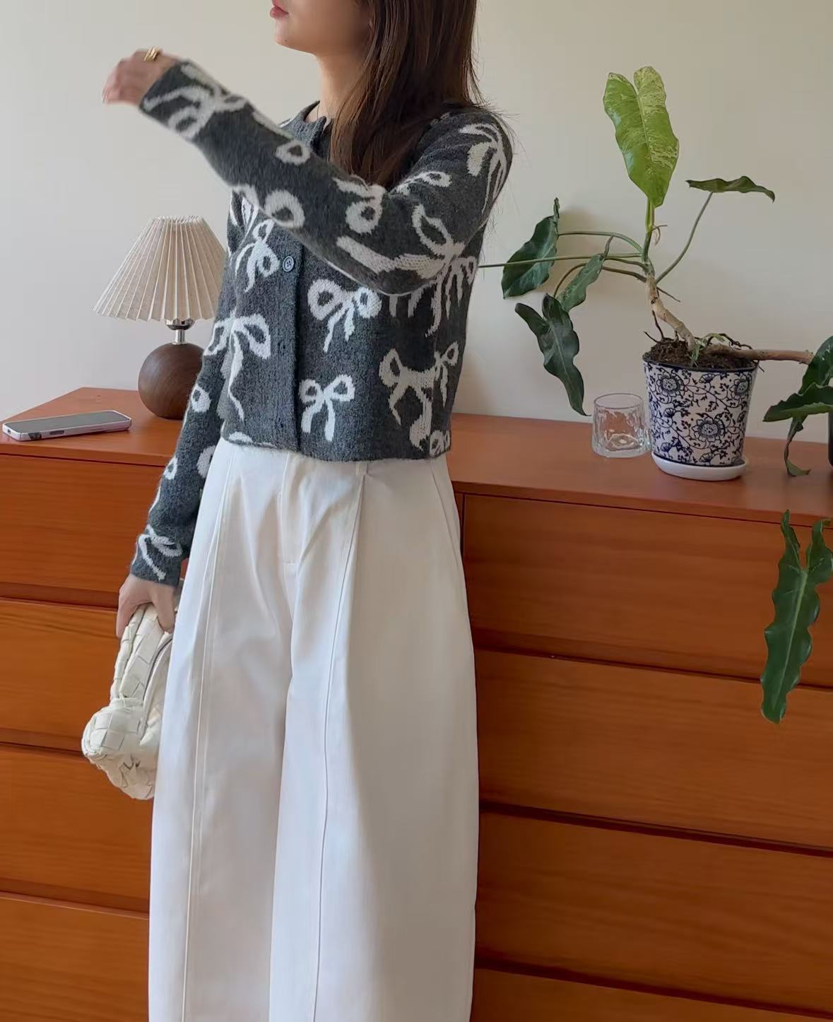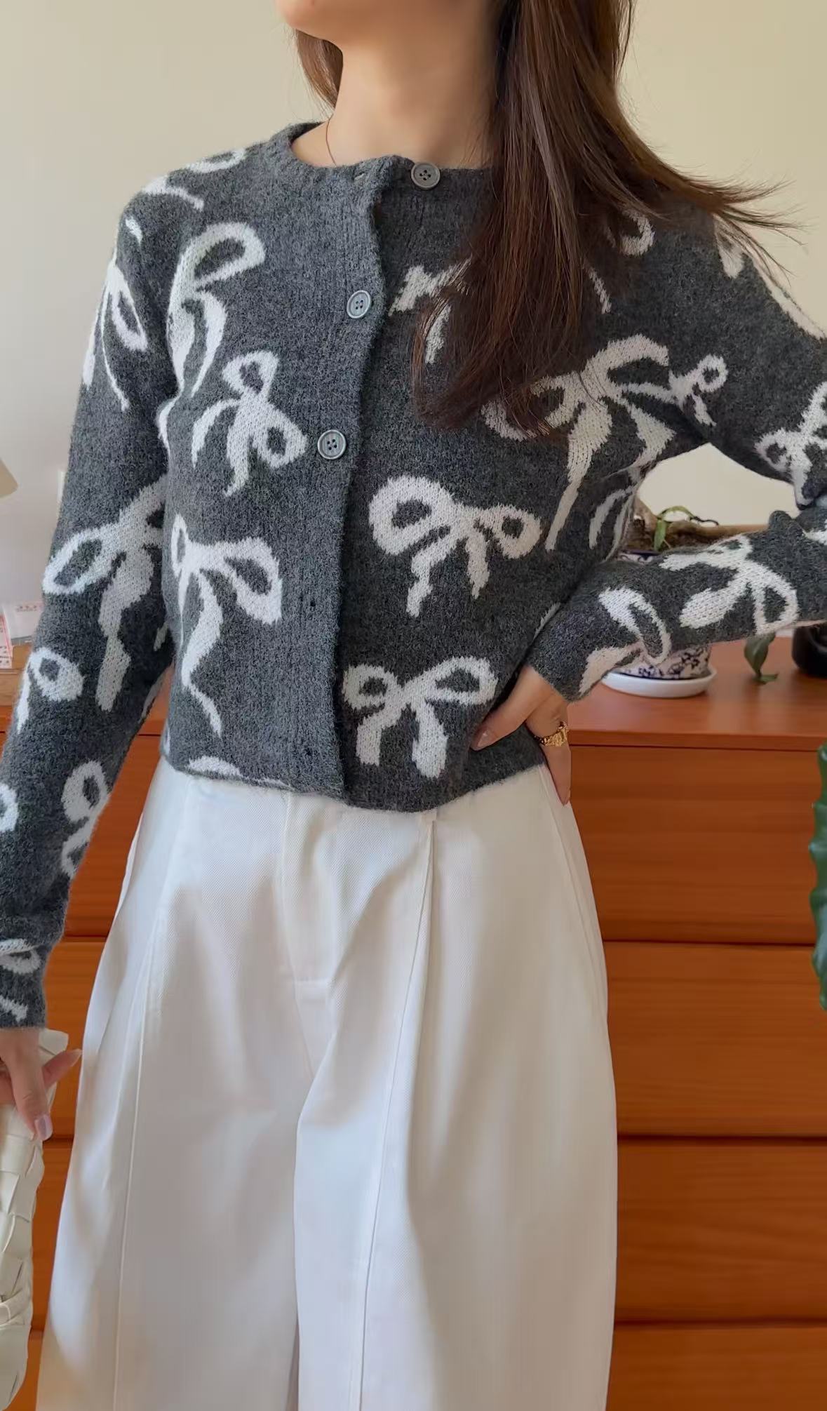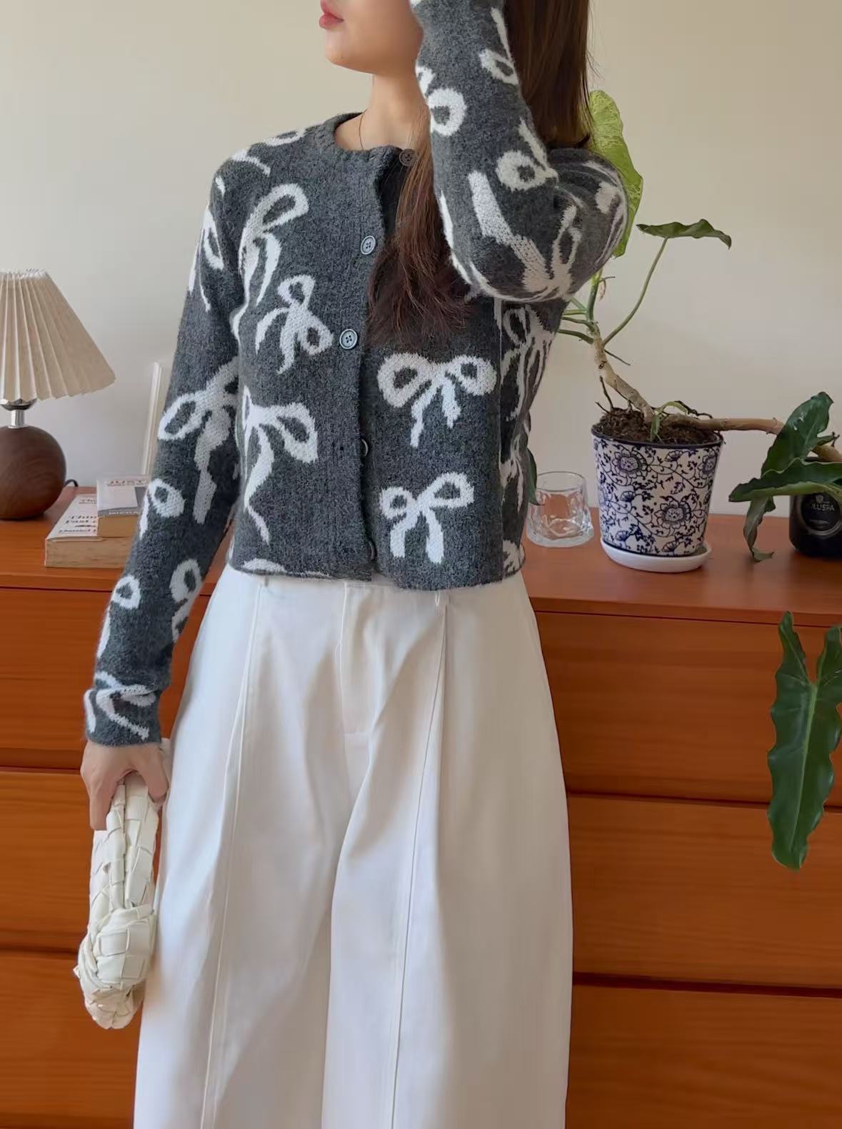 GC09204 Ribbon Pattern Cropped Sweater Grey