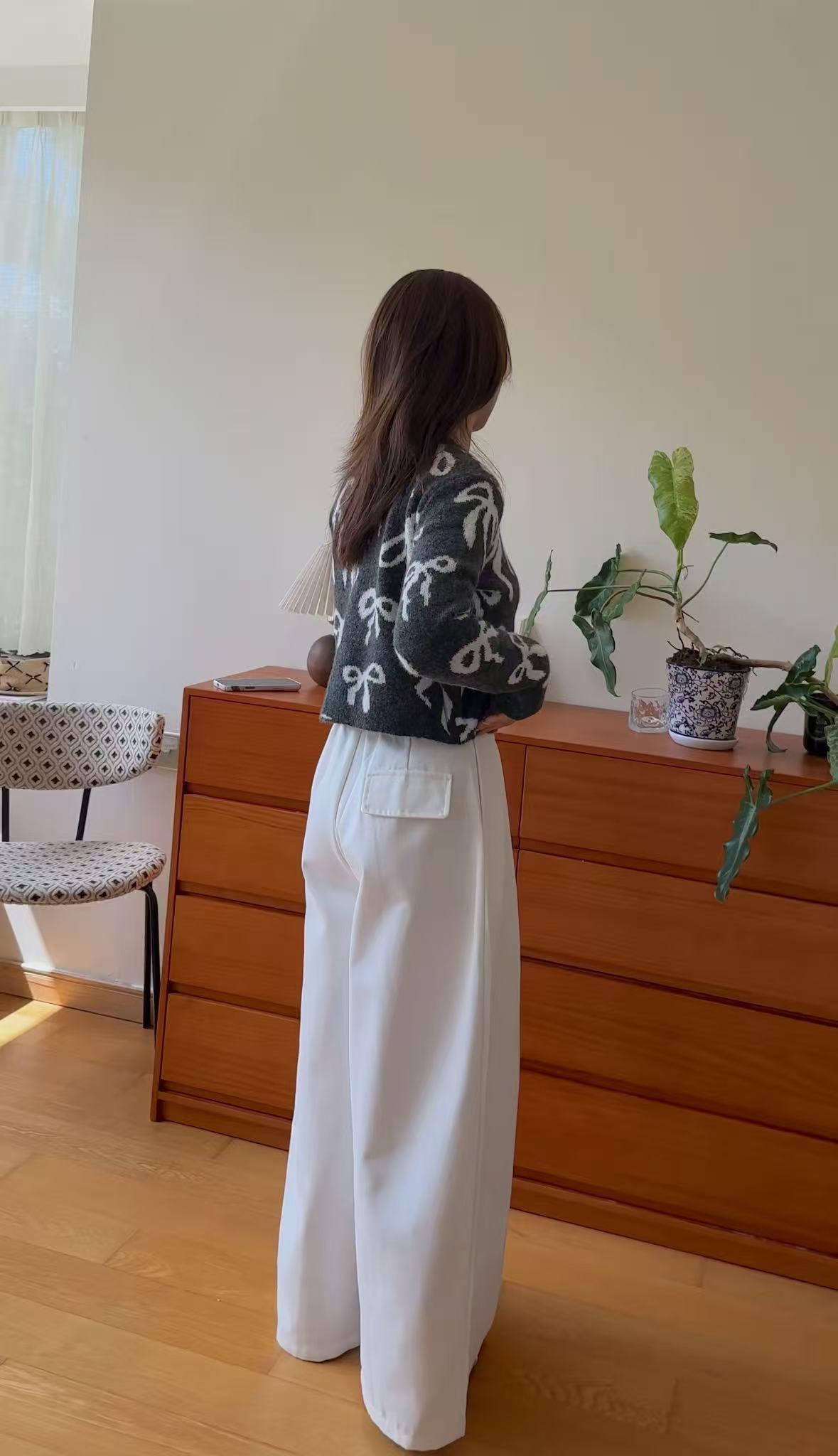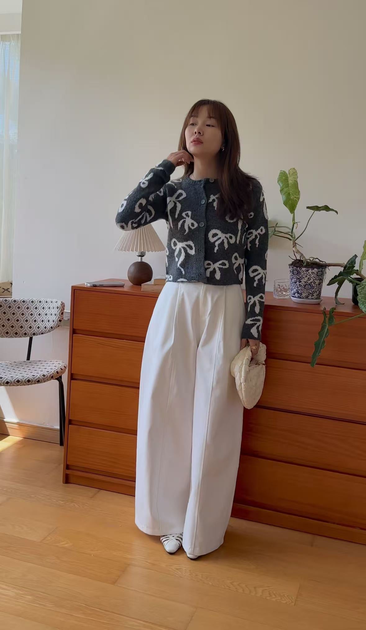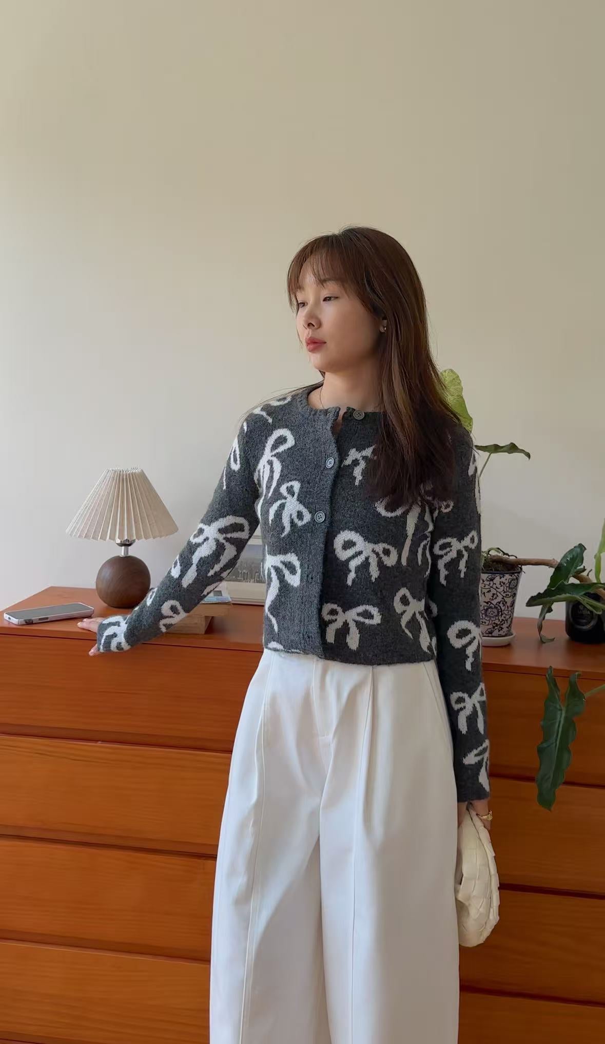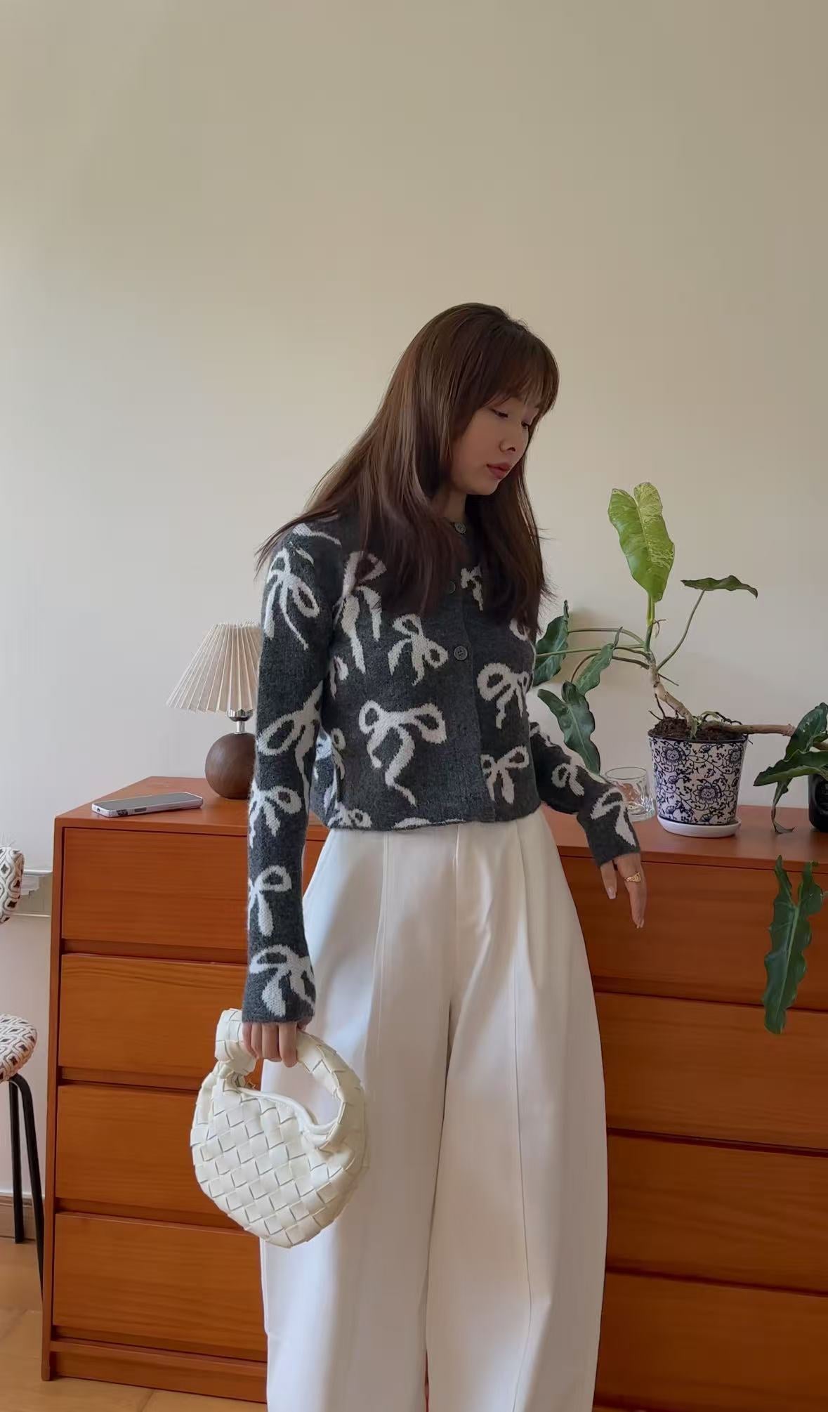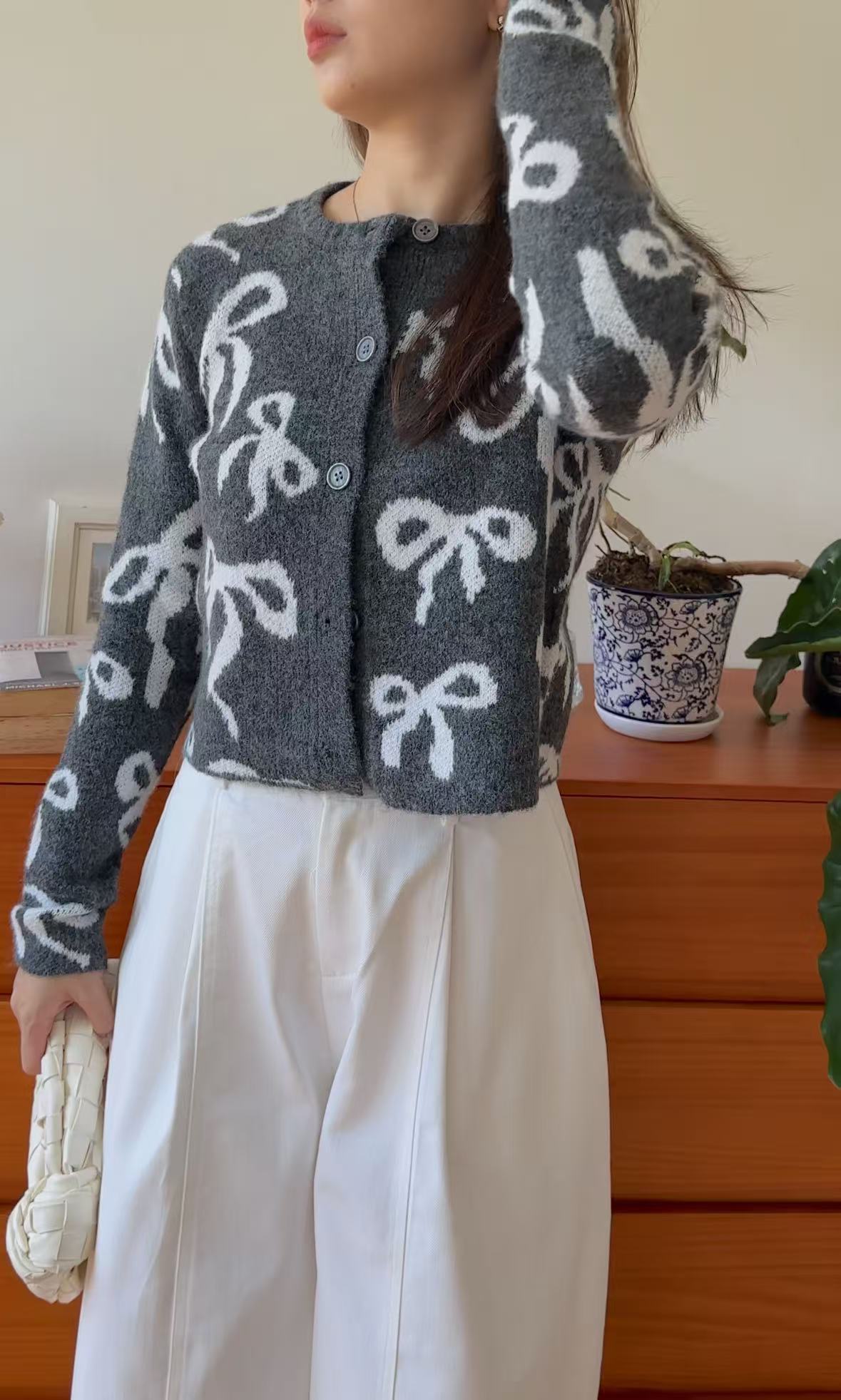 GC09204 Ribbon Pattern Cropped Sweater Grey