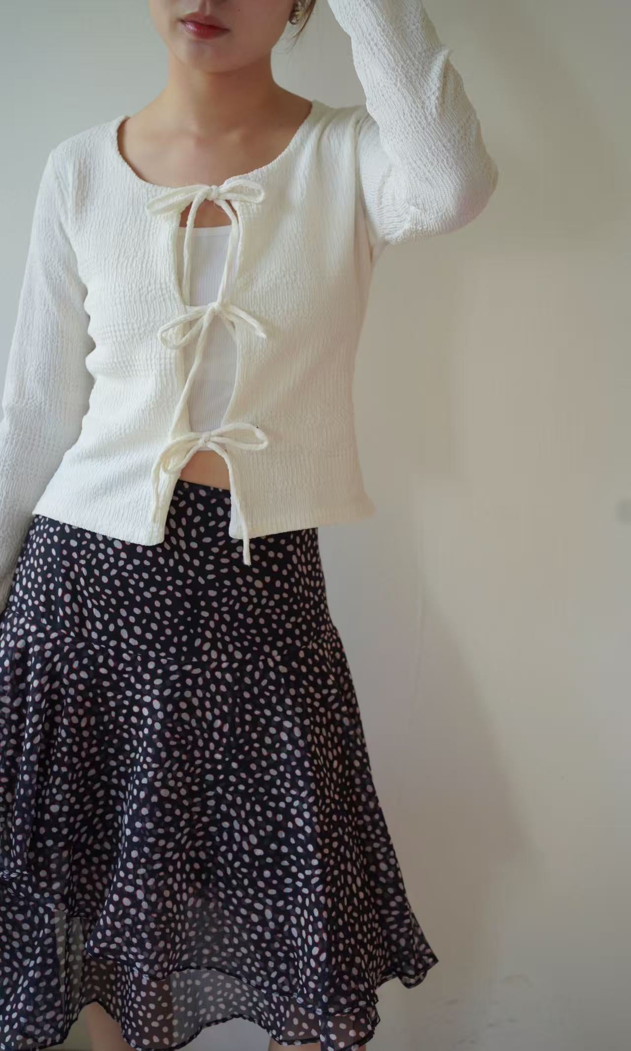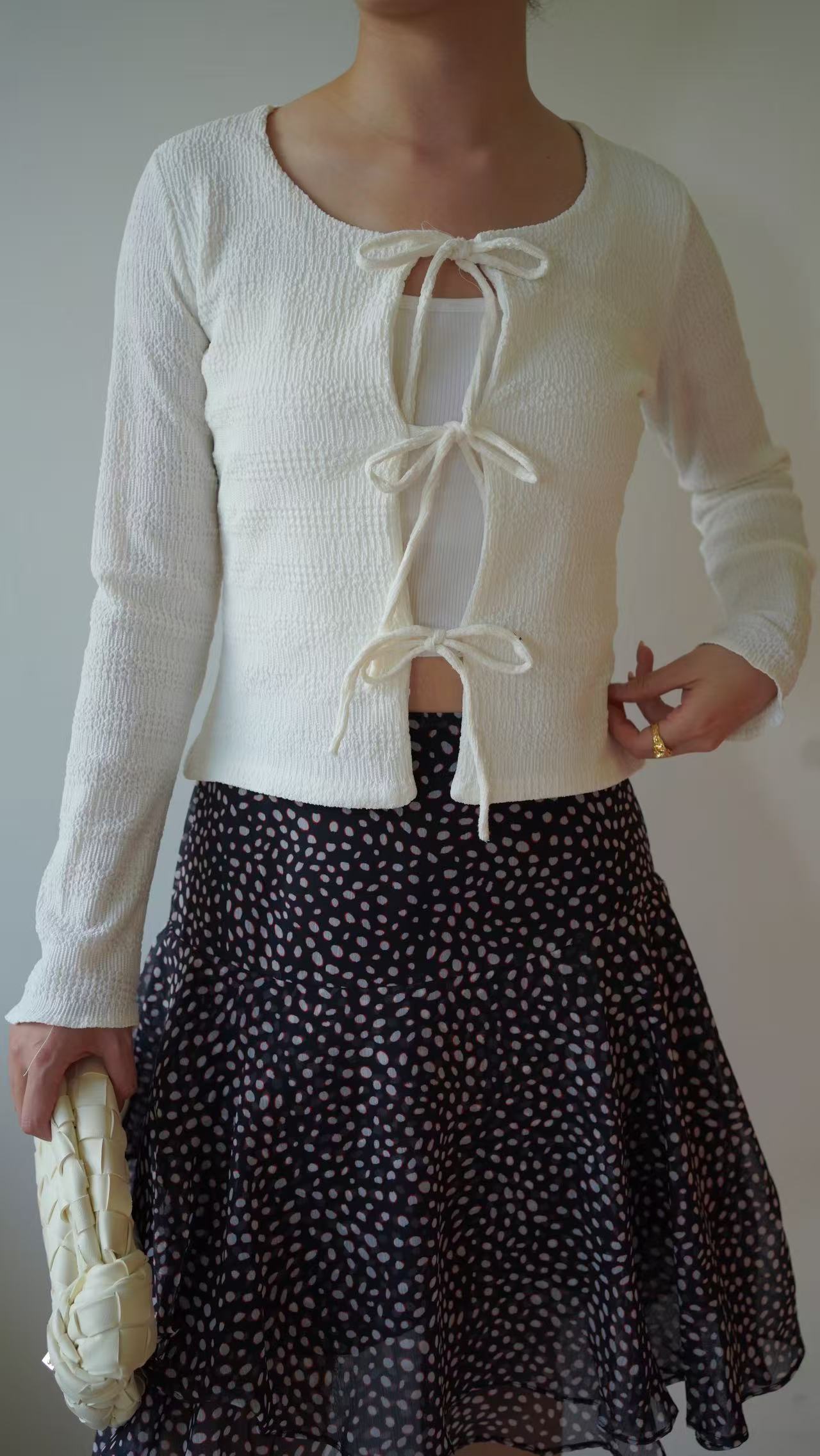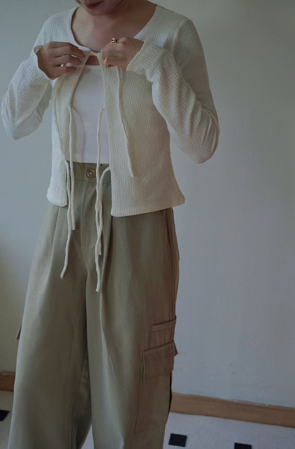 GC09309 Front String Design Texture Fabric made Fit Cut Top/Outer