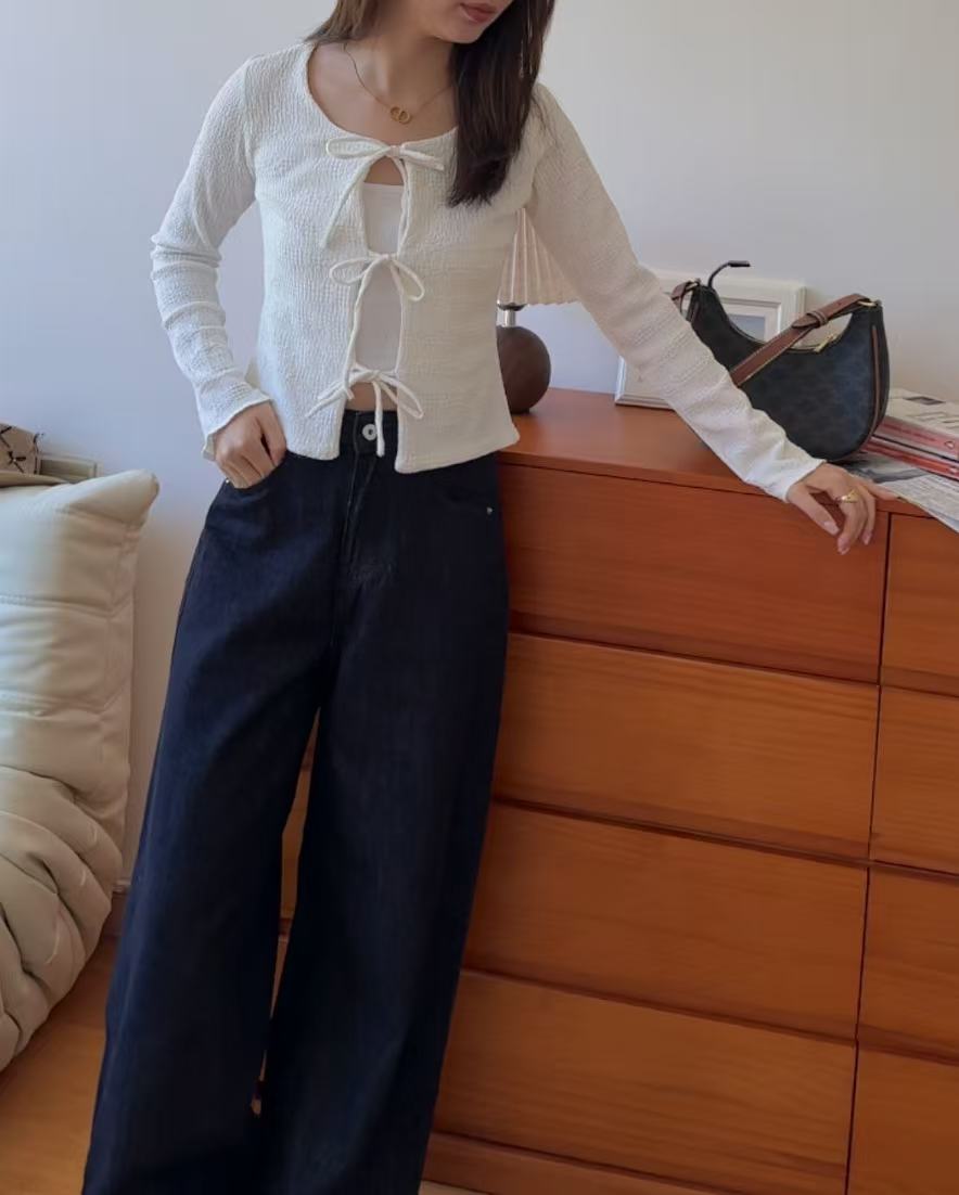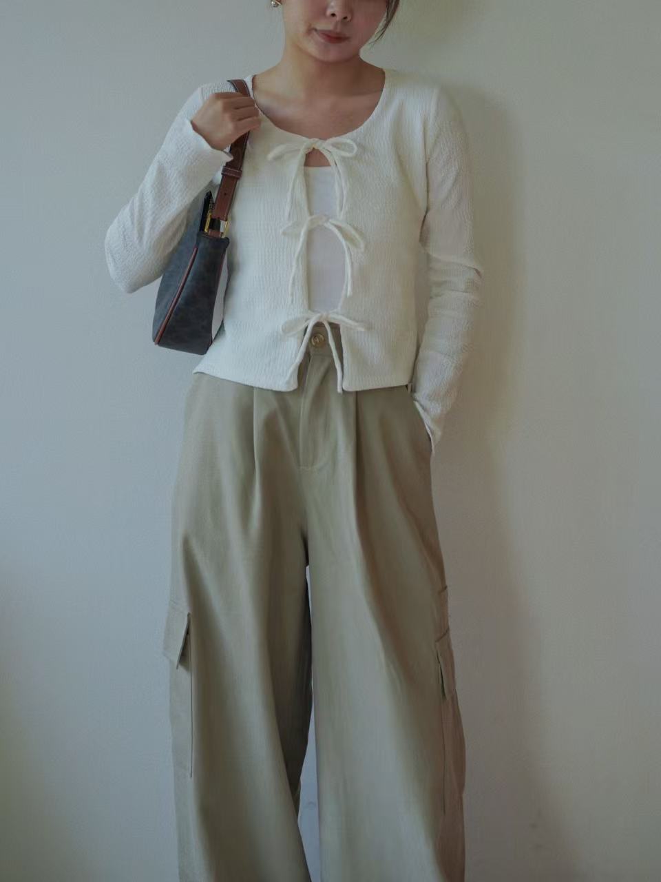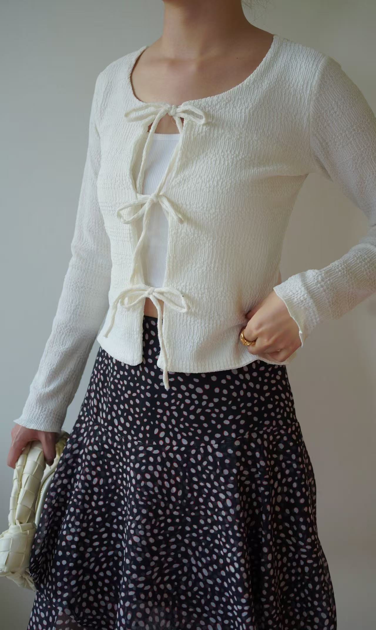 GC09309 Front String Design Texture Fabric made Fit Cut Top/Outer