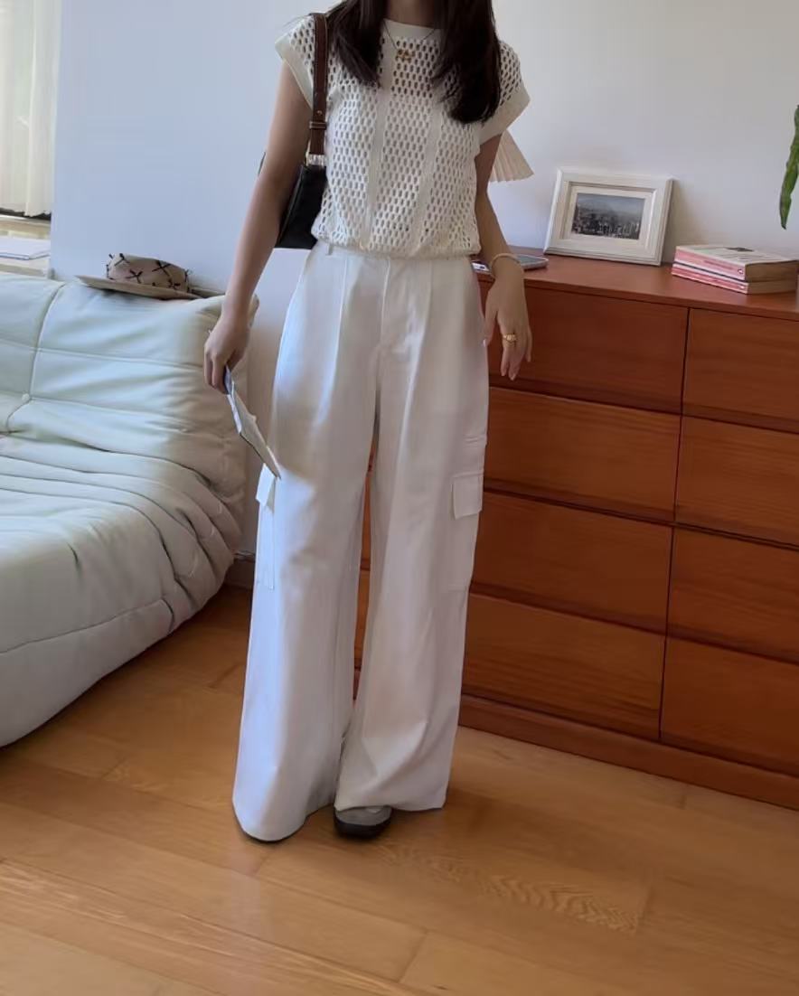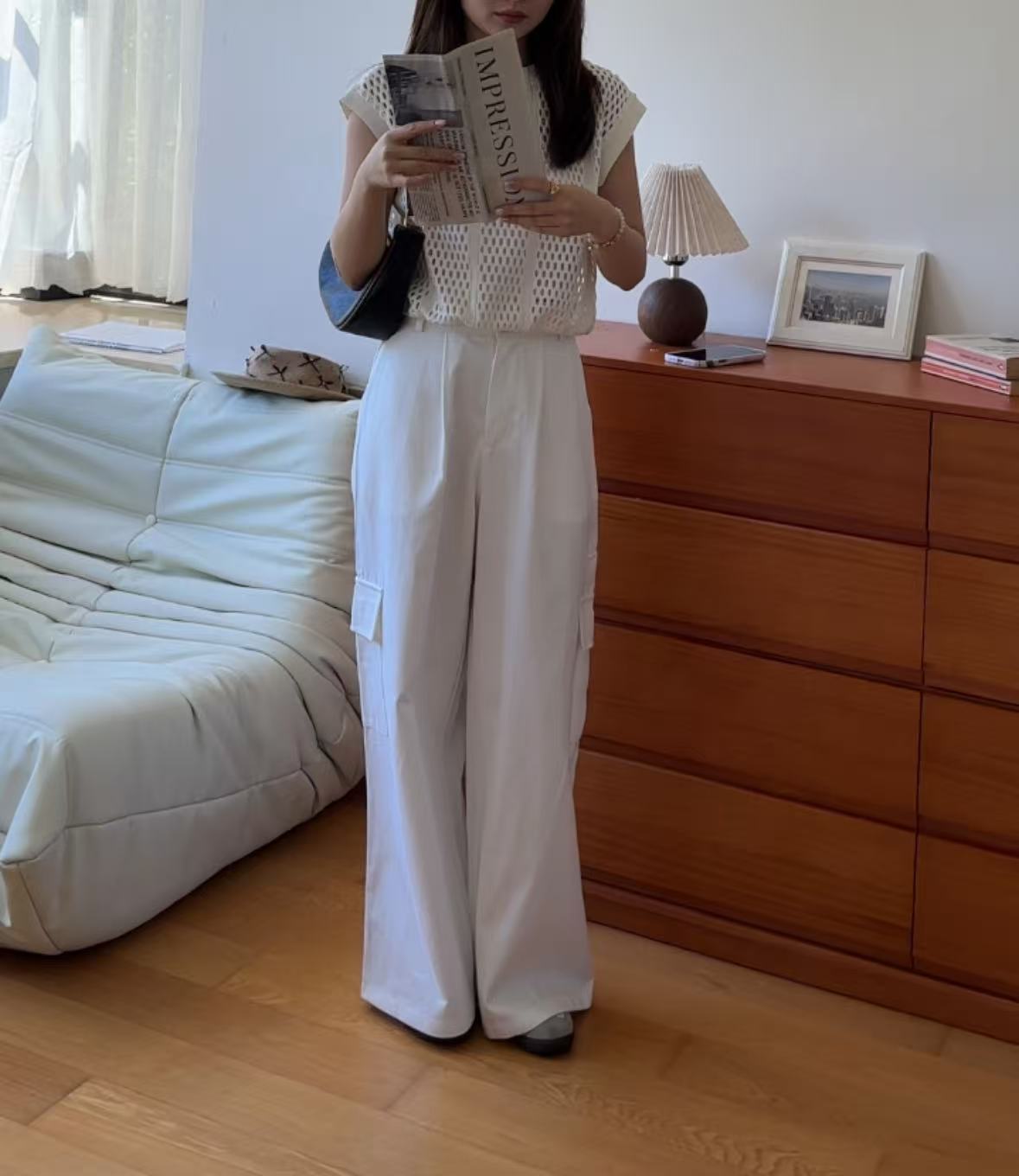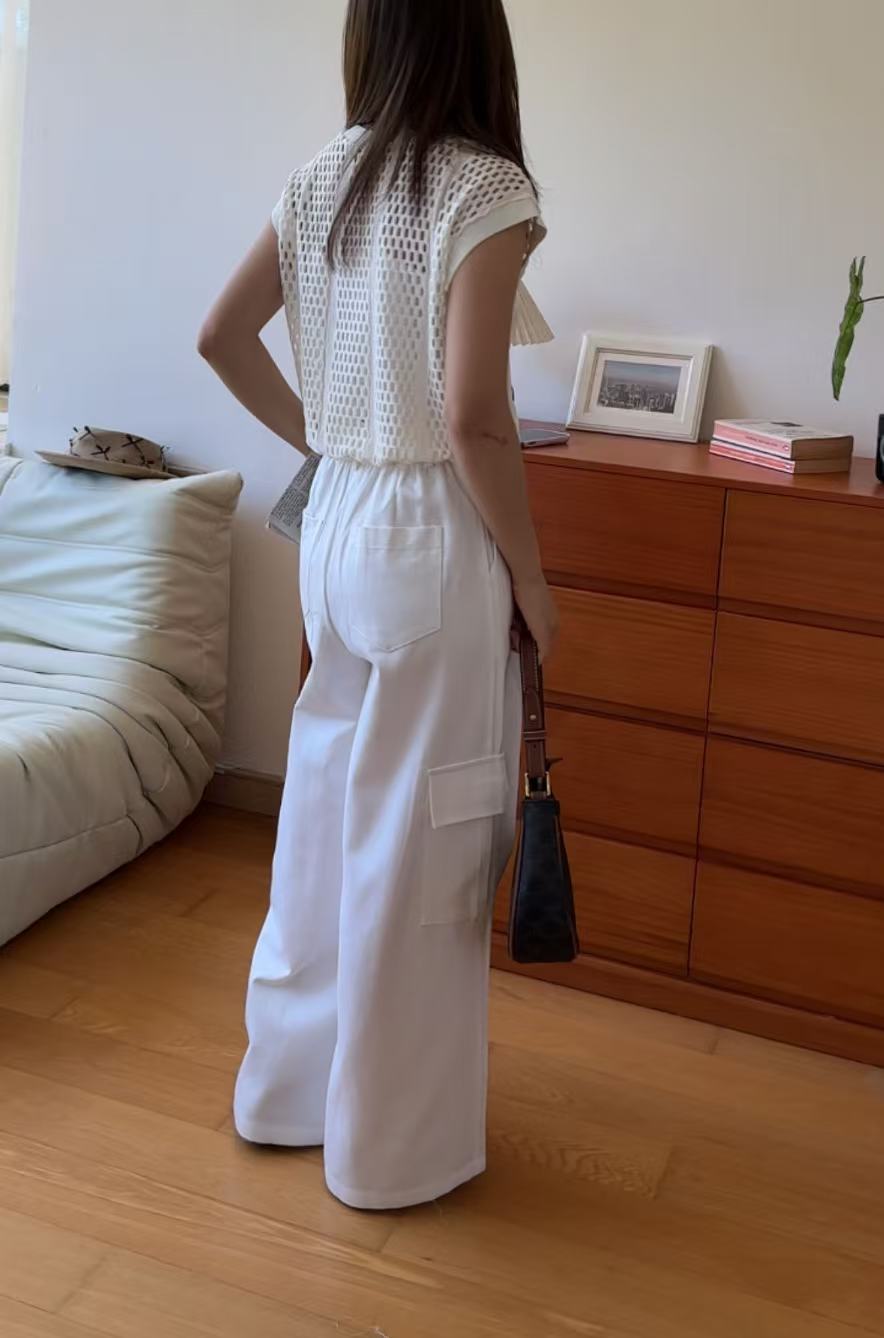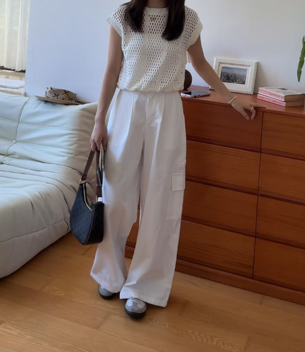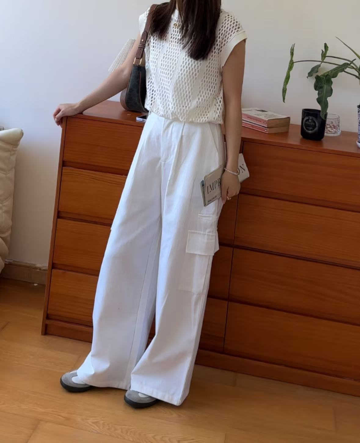 GC09311 Side Pocket Design Oversized Pants White (長/短兩個版本)