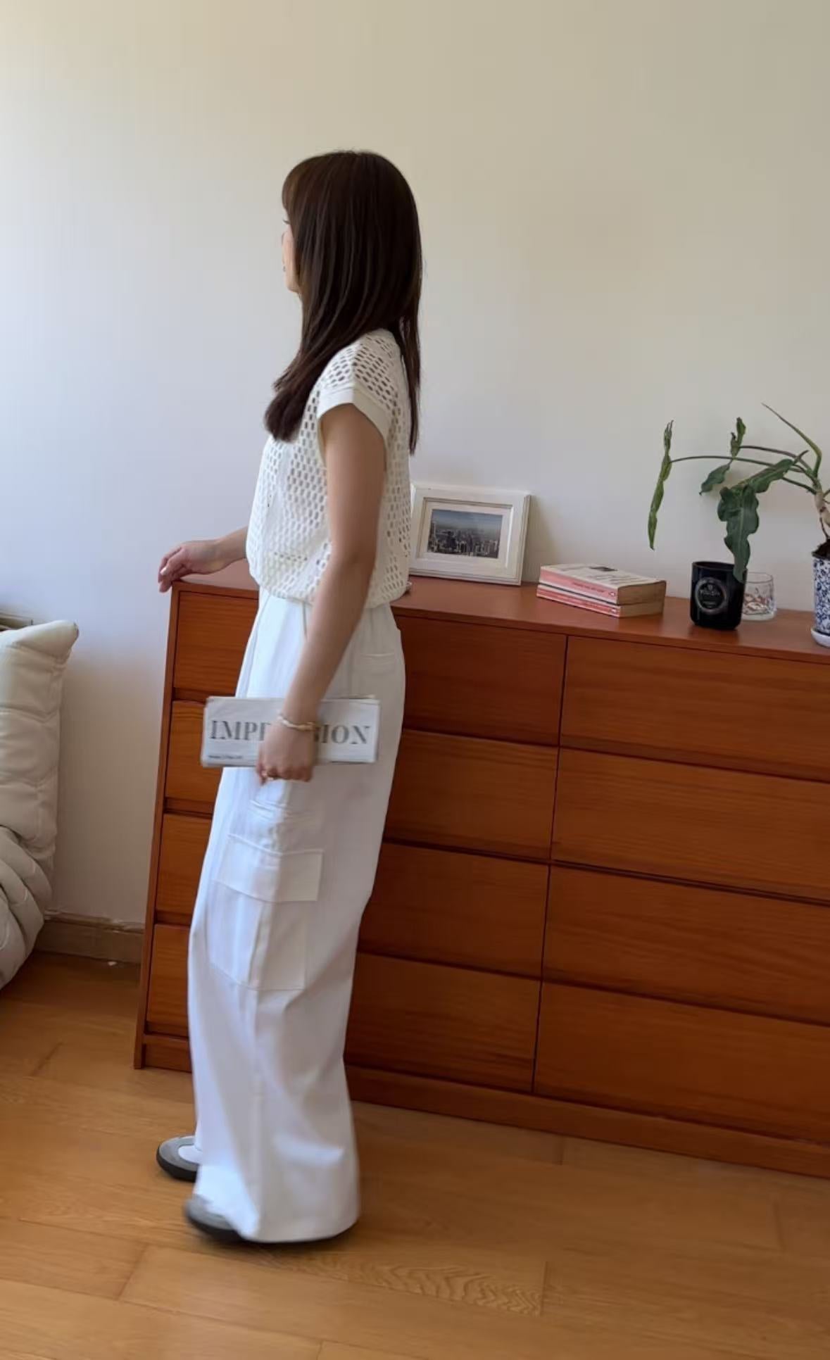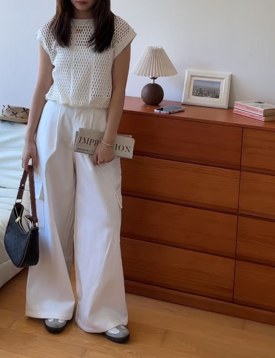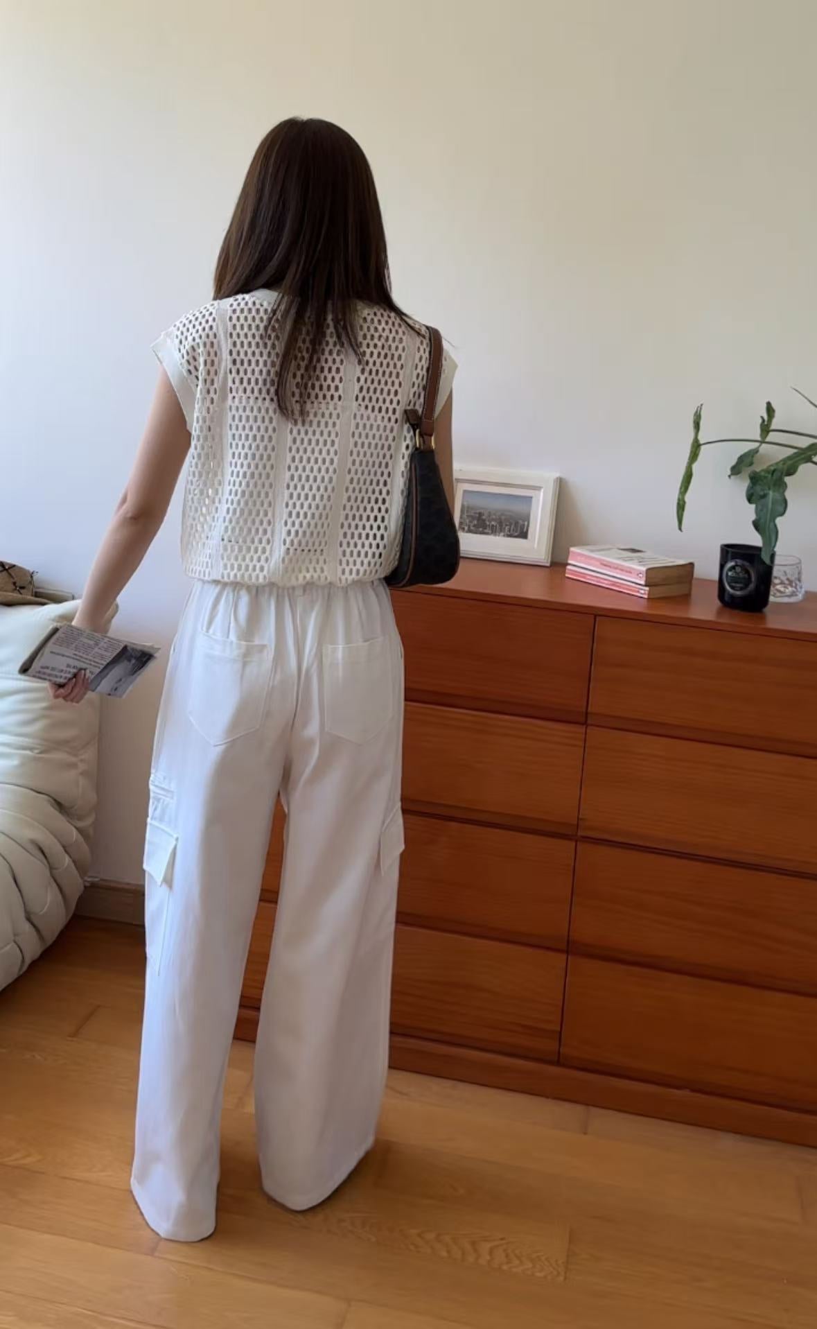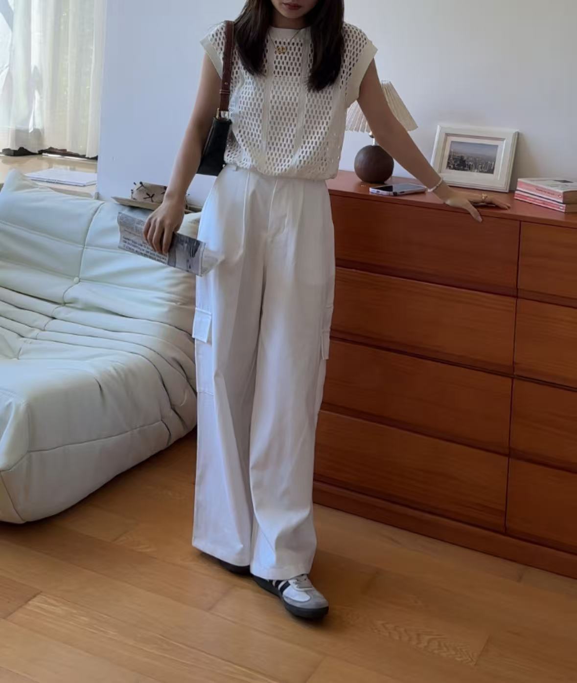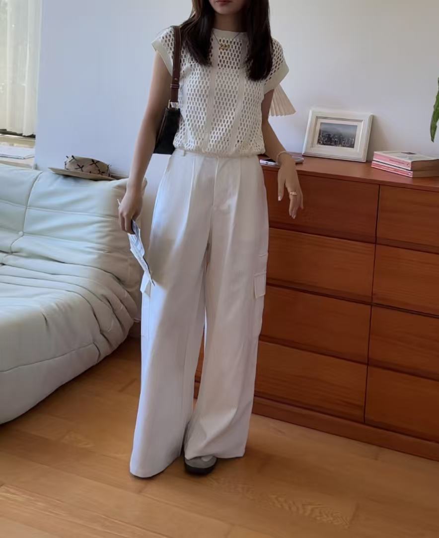 GC09311 Side Pocket Design Oversized Pants White (長/短兩個版本)