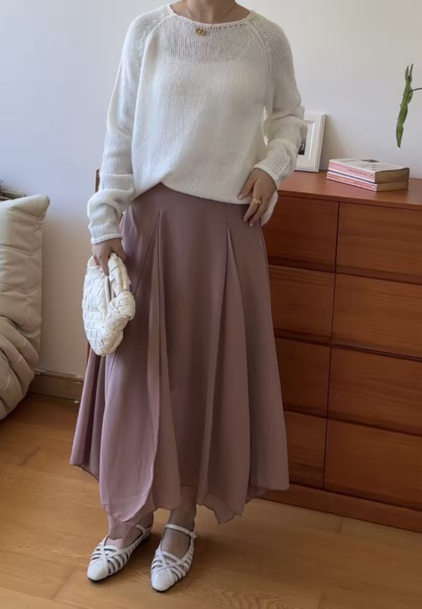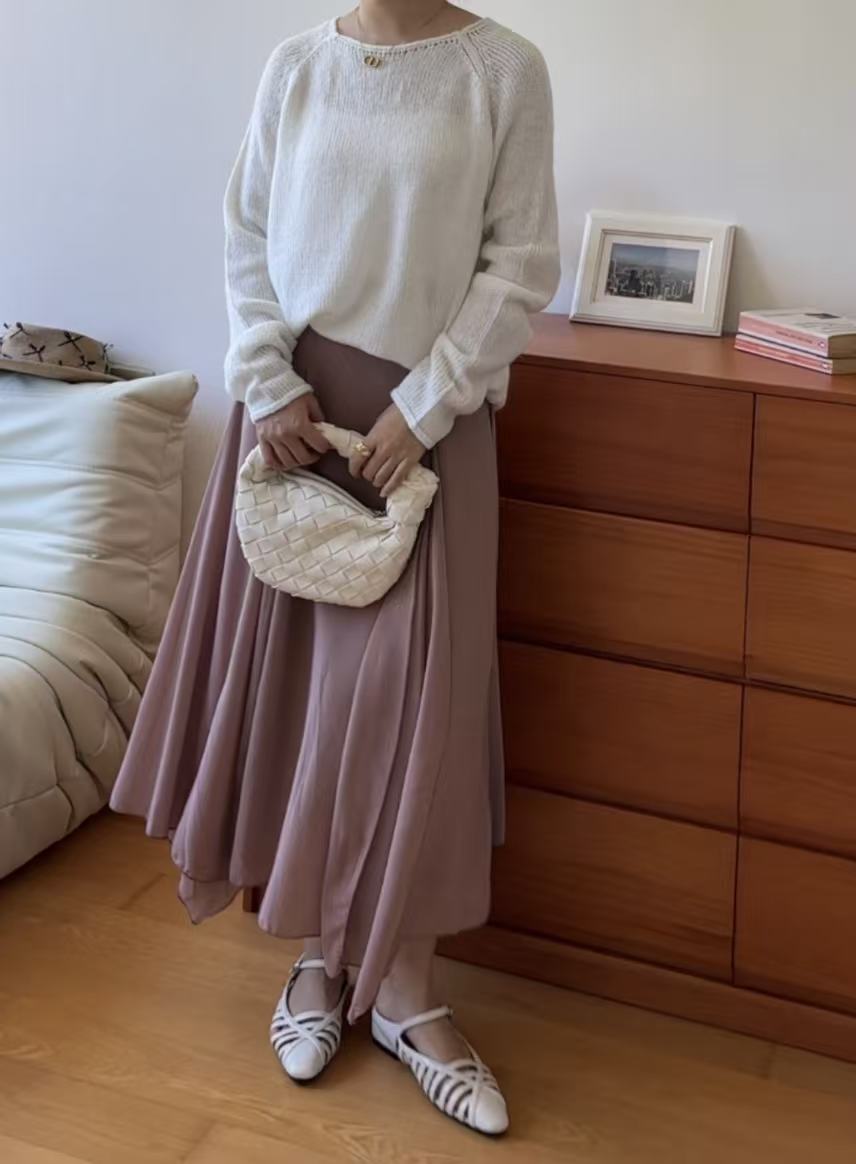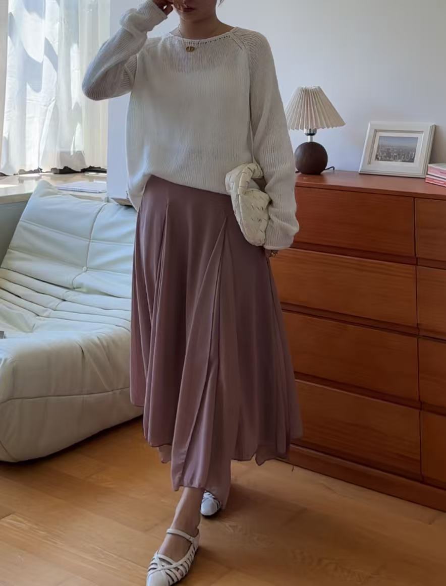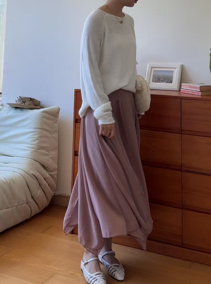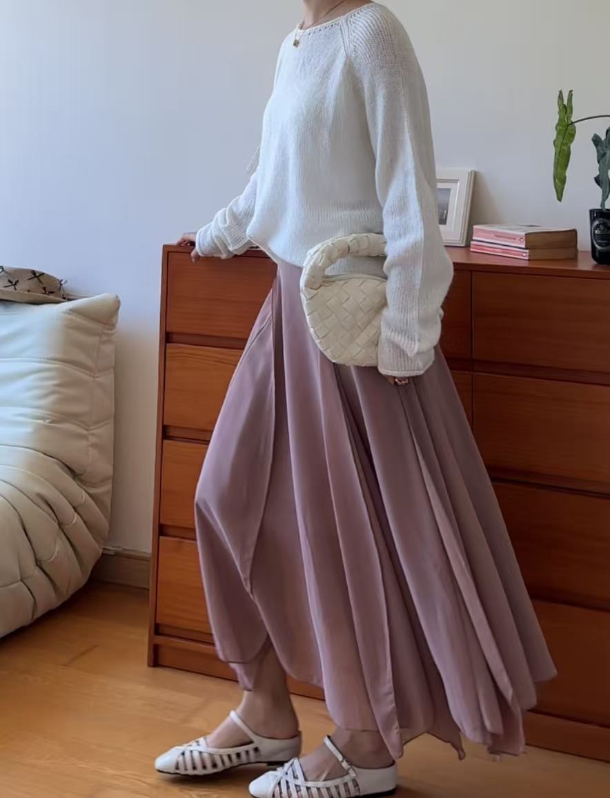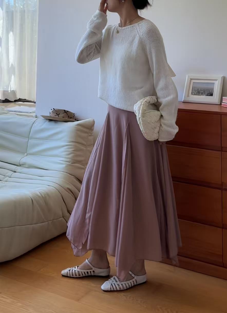 GC09313 Irregular Design Satin Skirt Lilac