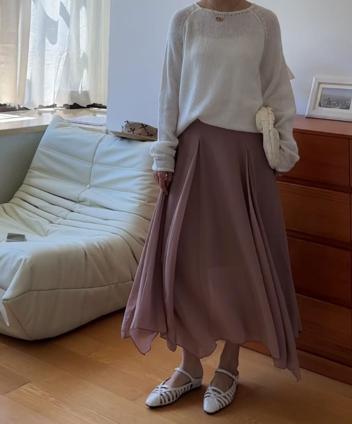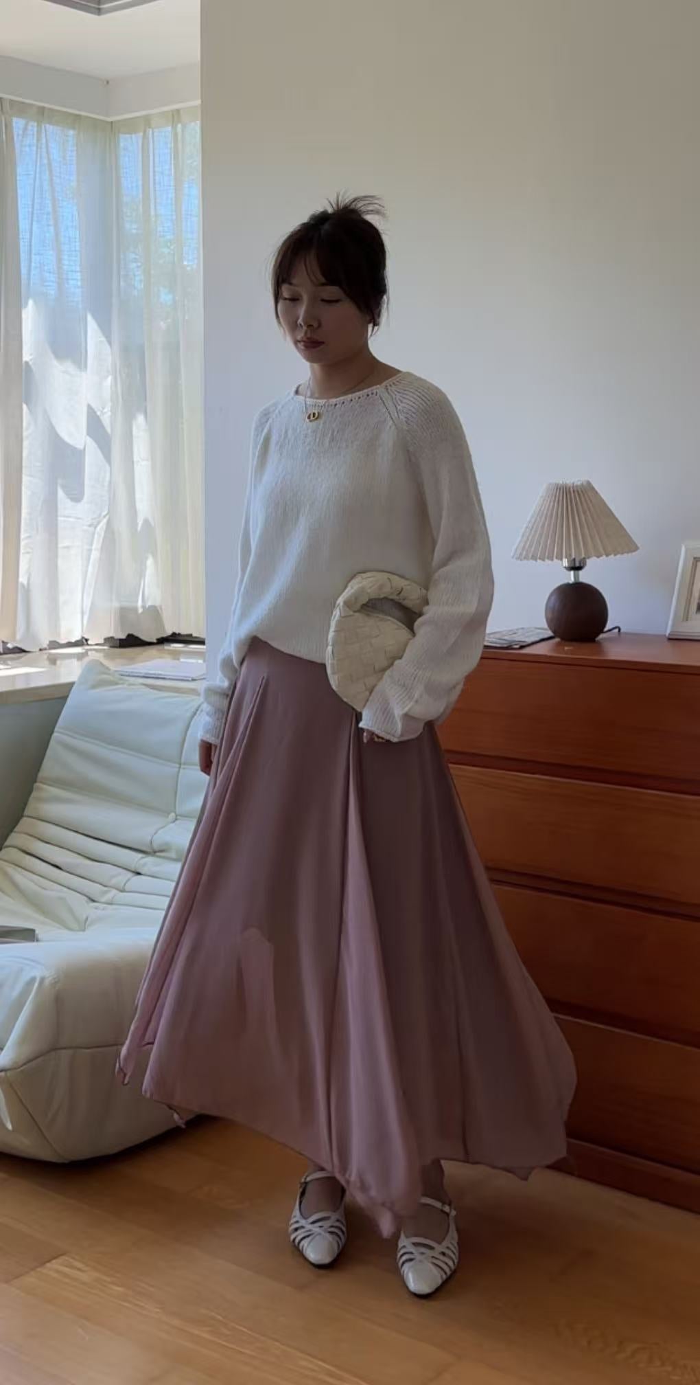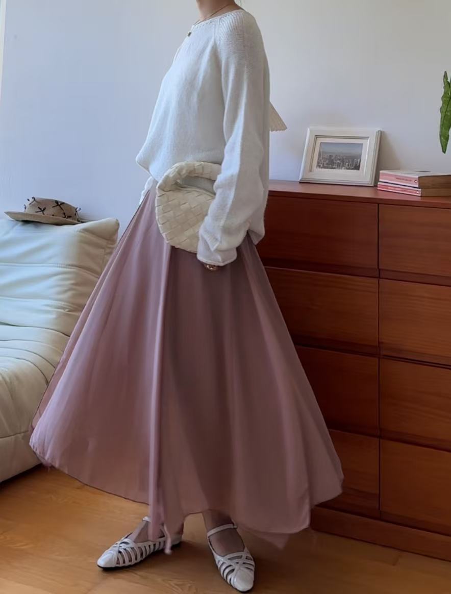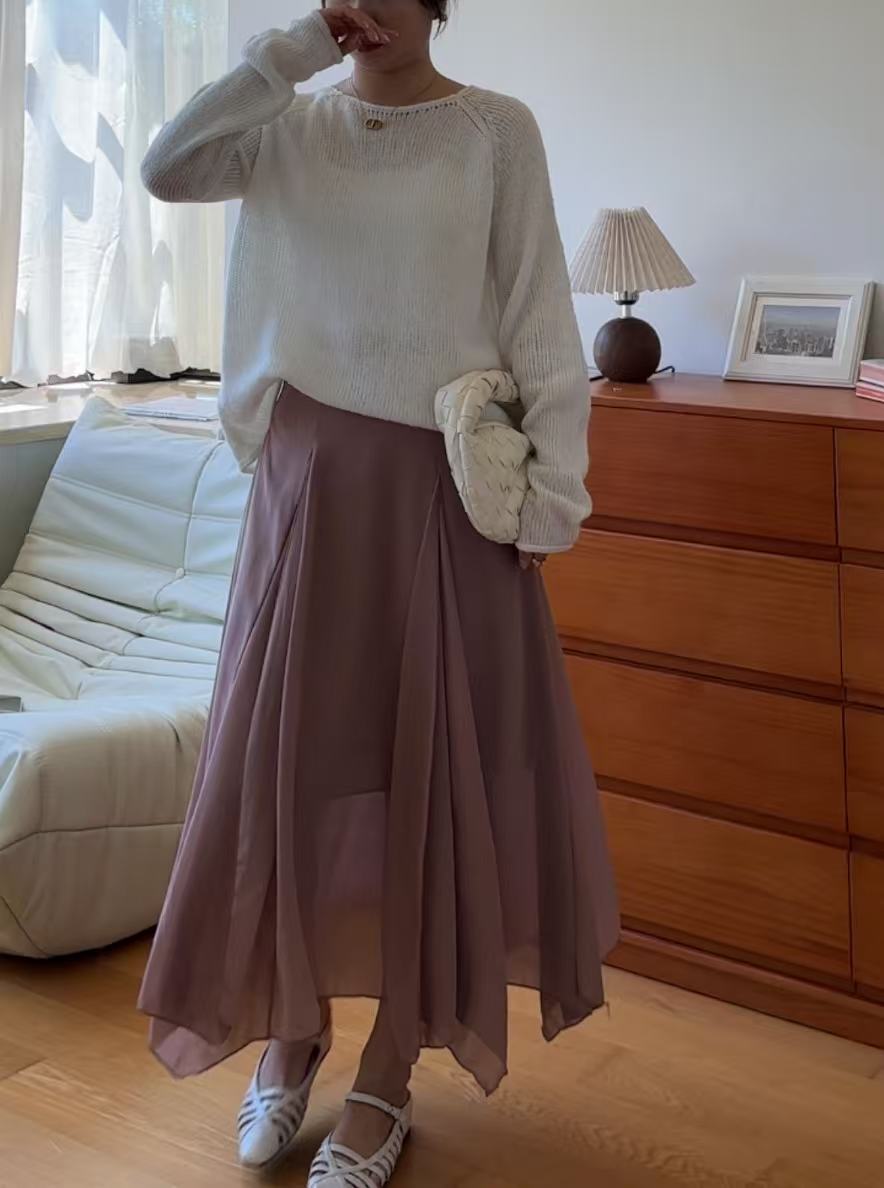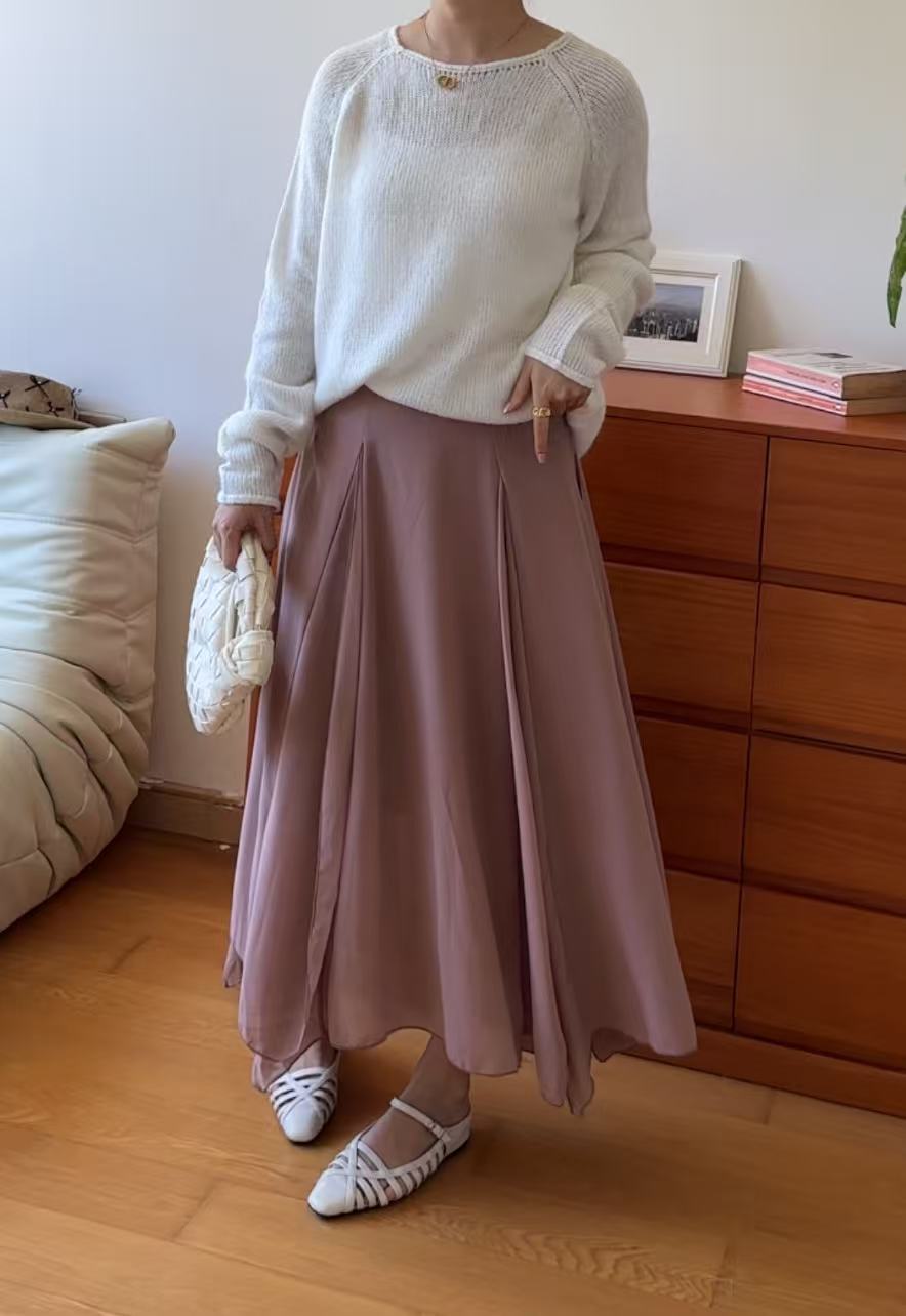 GC09313 Irregular Design Satin Skirt Lilac
