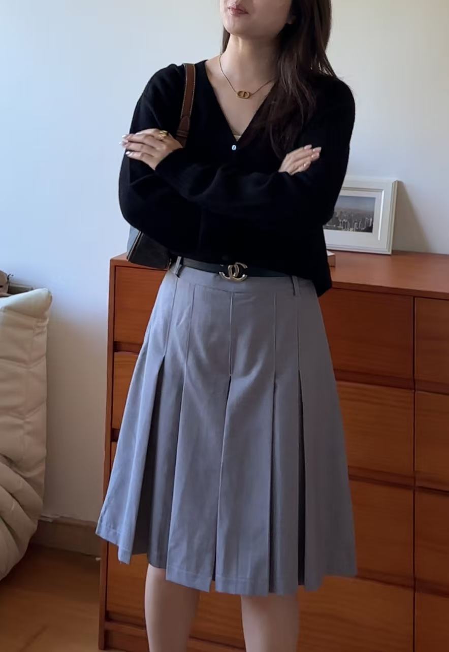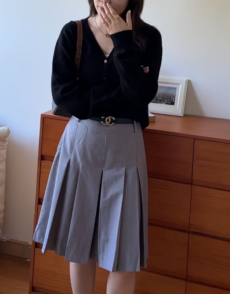 GC09327 Premium Whole Garment Wool made Basic Knitted Outer Black