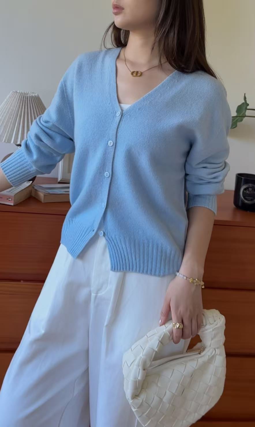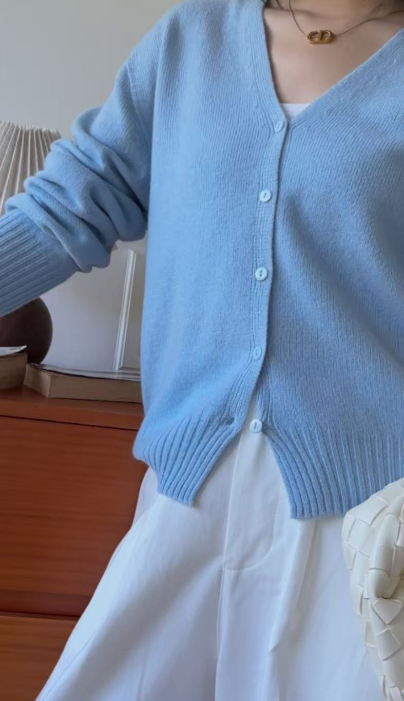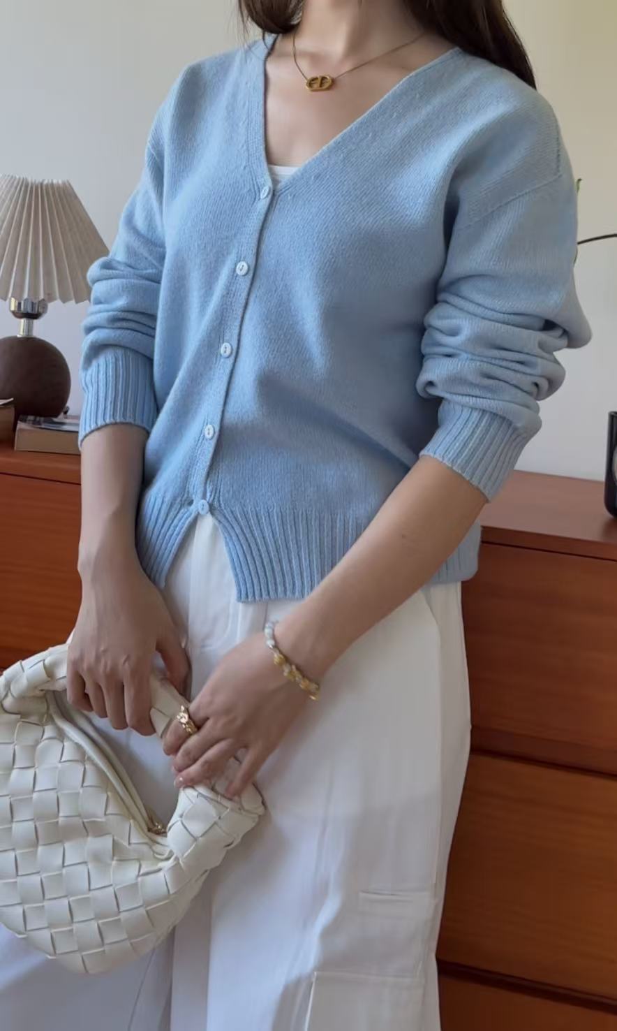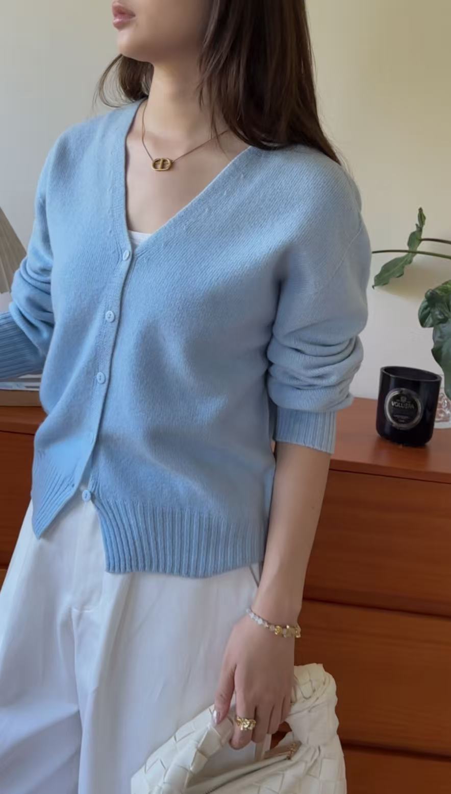 GC09327 Premium Whole Garment Wool made Basic Knitted Outer Blue