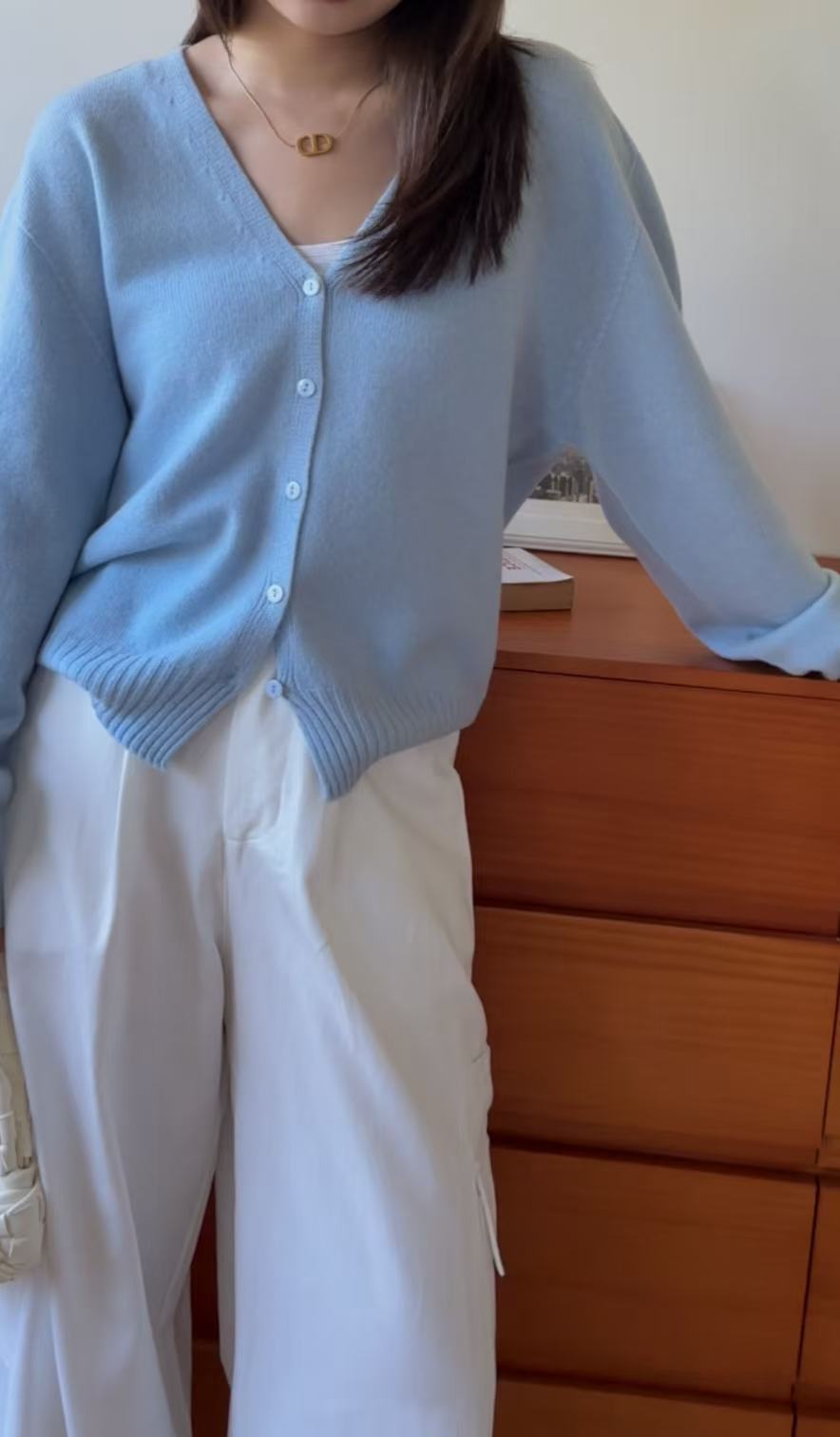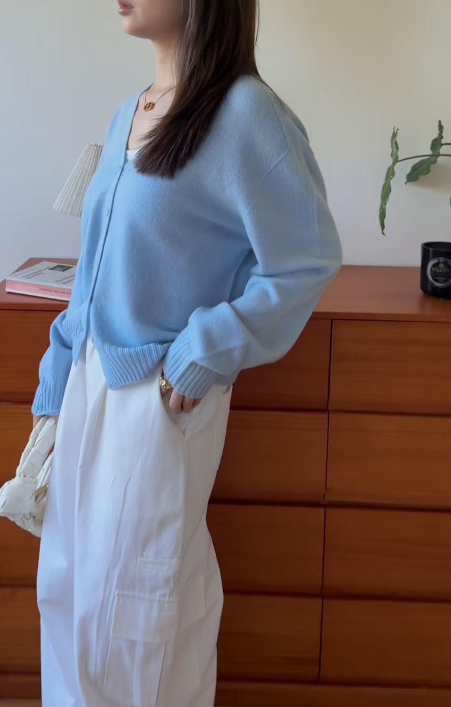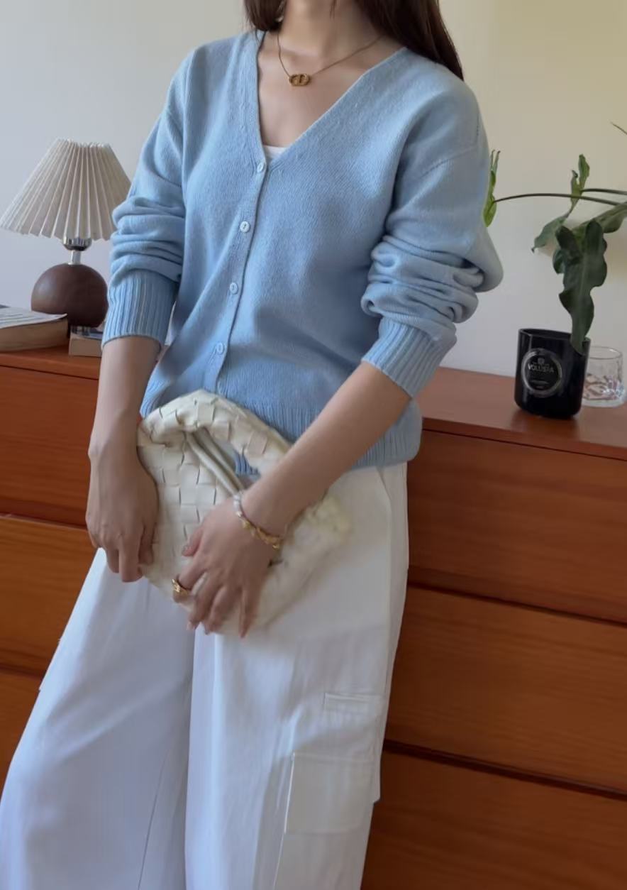 GC09327 Premium Whole Garment Wool made Basic Knitted Outer Blue
