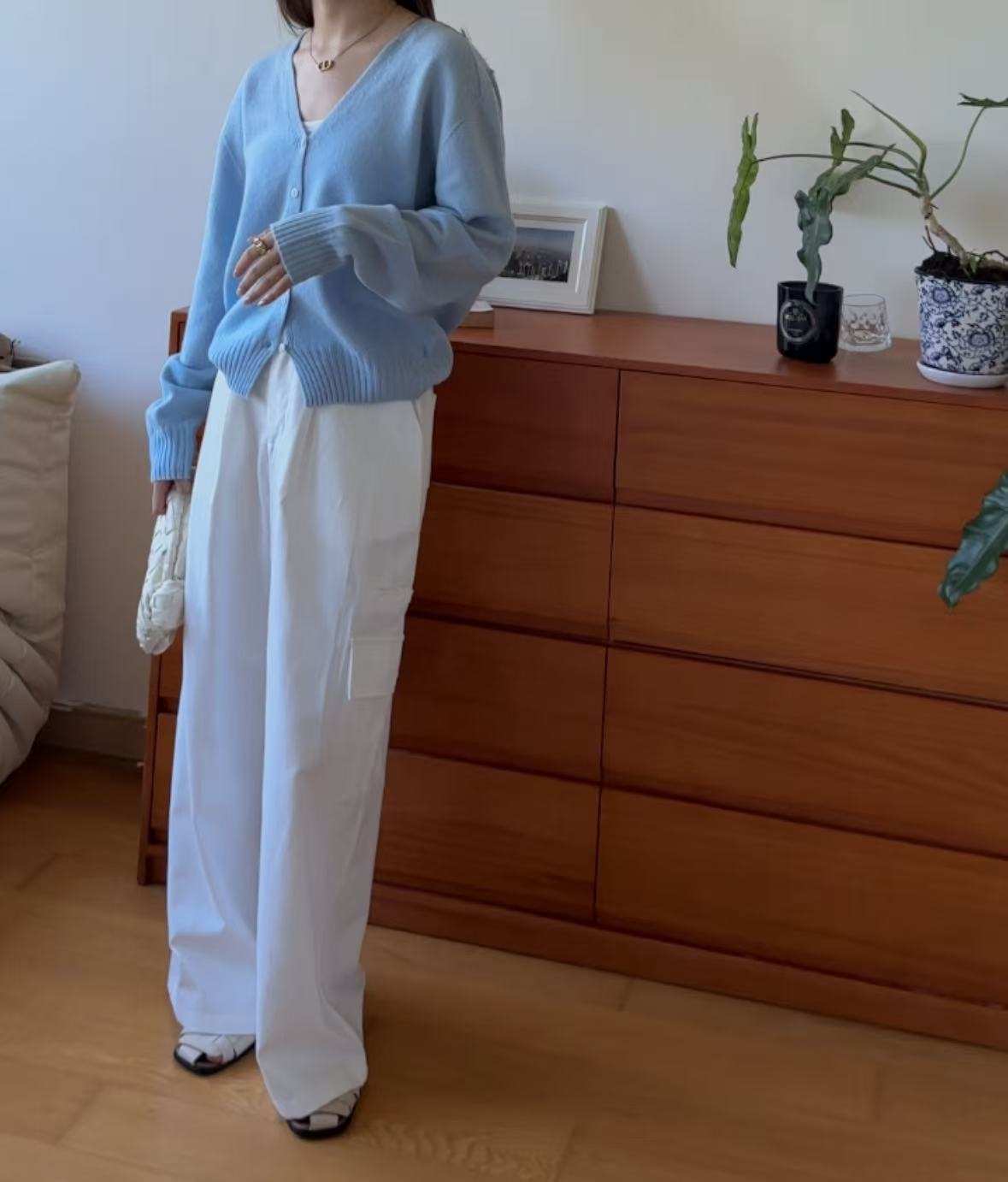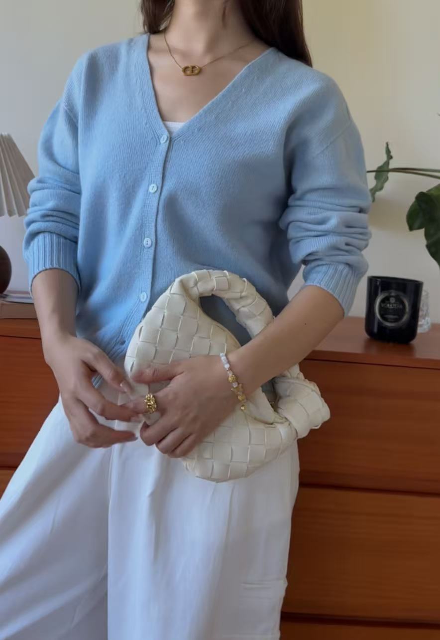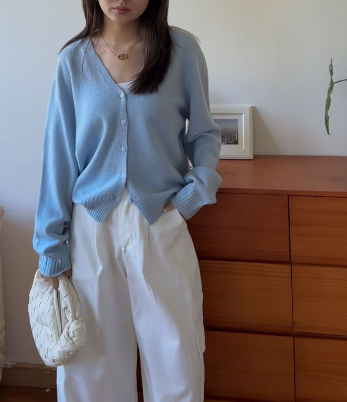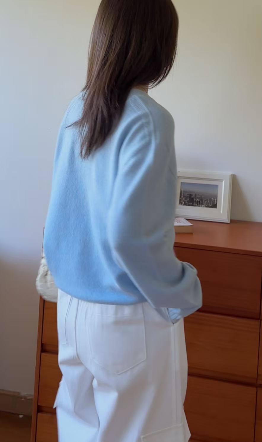 GC09327 Premium Whole Garment Wool made Basic Knitted Outer Blue
