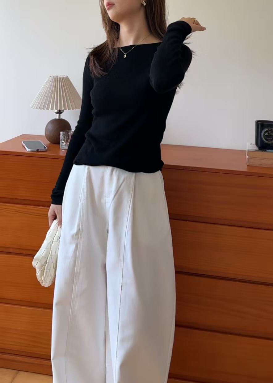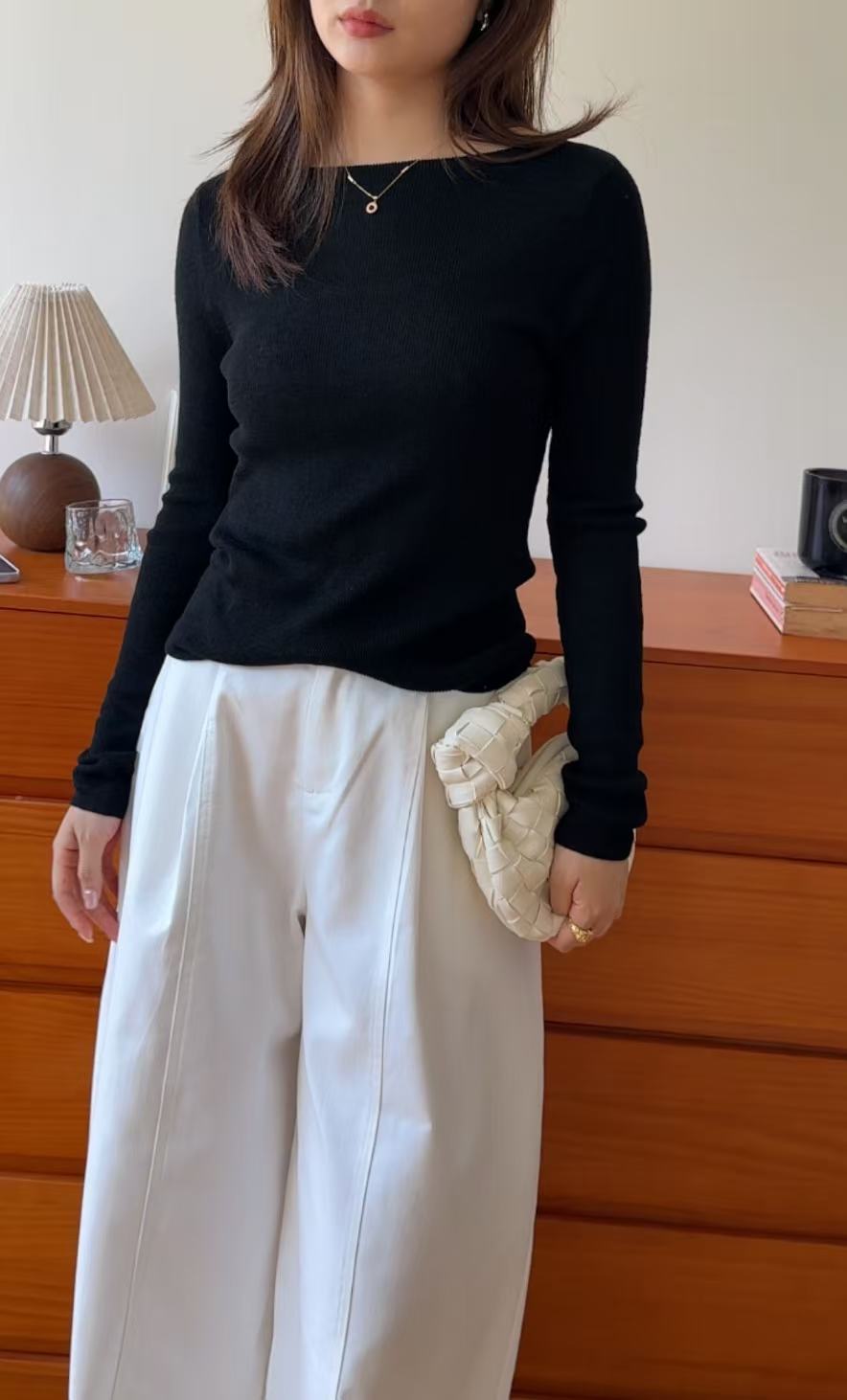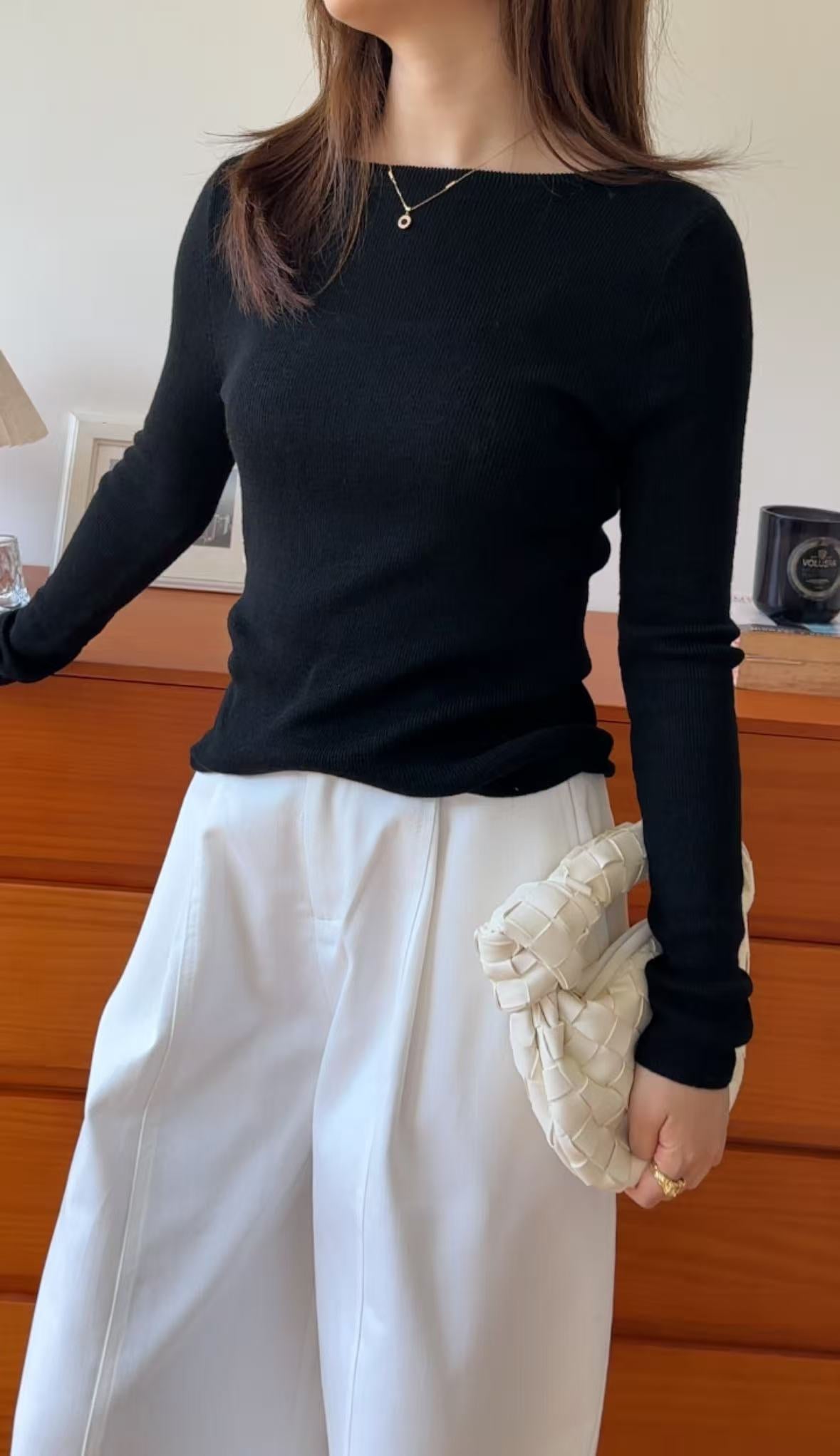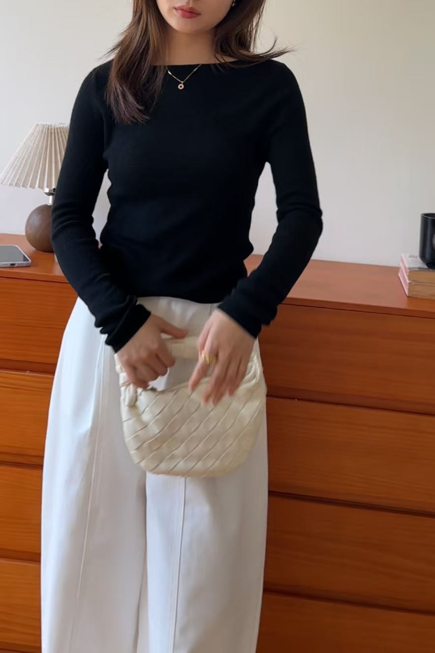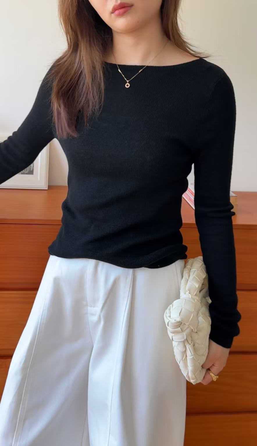 GC09402 Wool Mixed Super Comfy & Stretchy Boat Neck Knitted Top Black