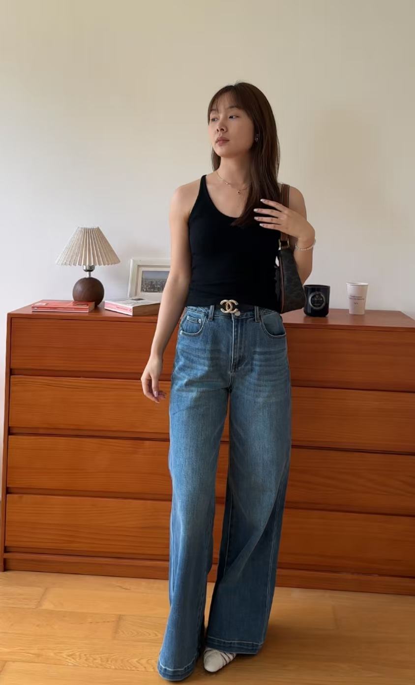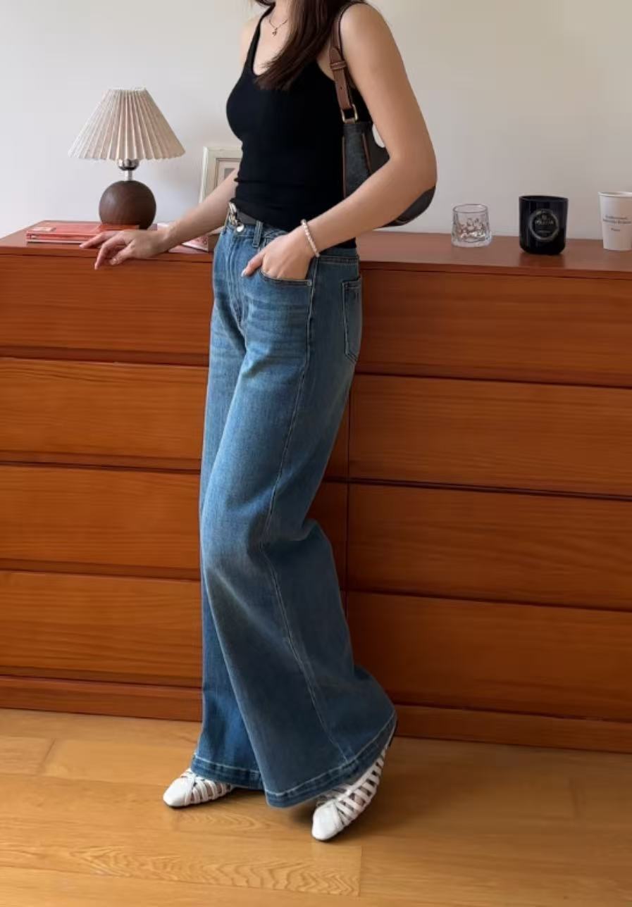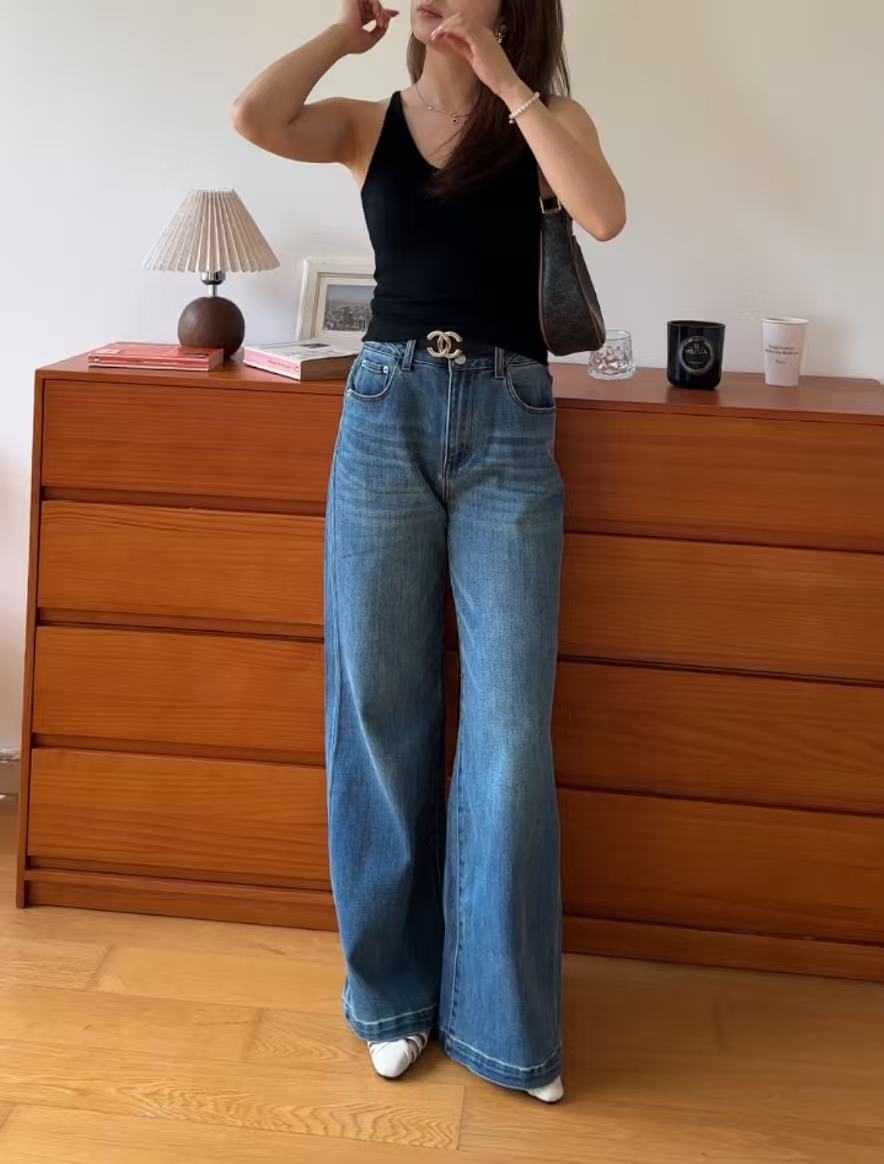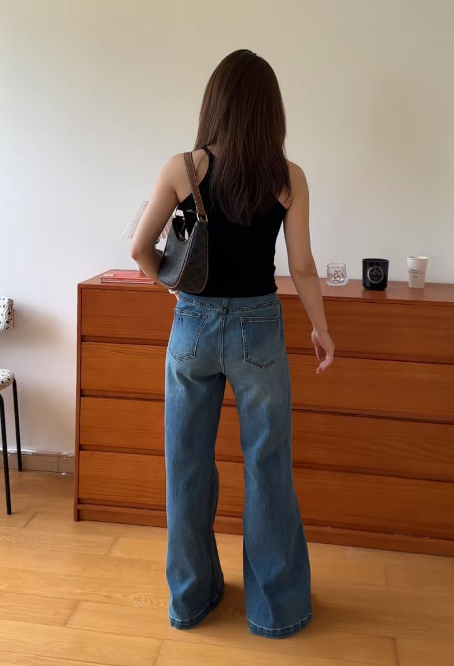 GC09409 Vintage Style Washed Blue Wide Leg Jeans