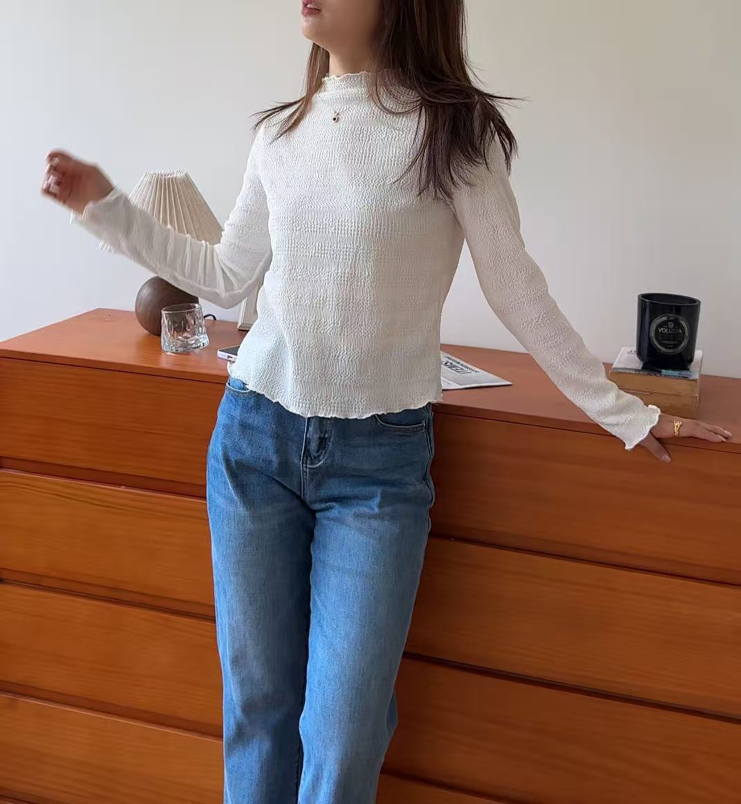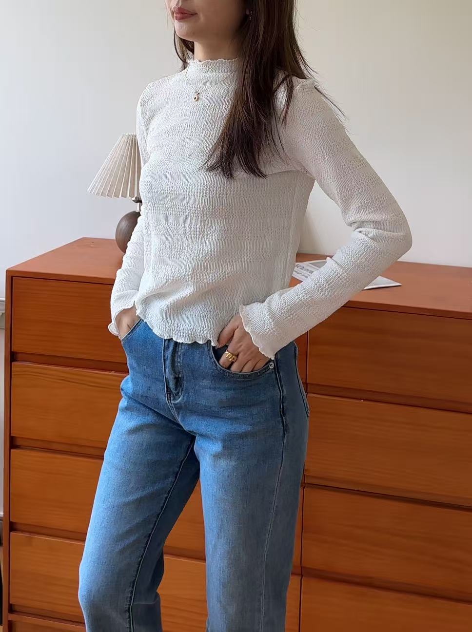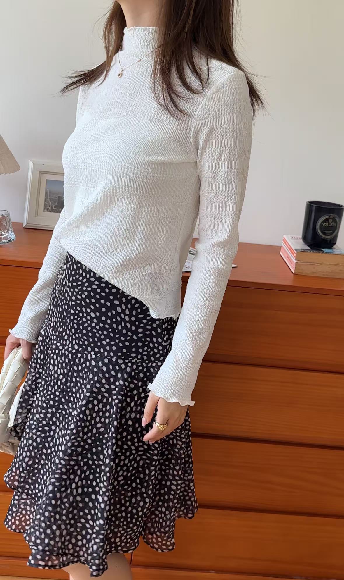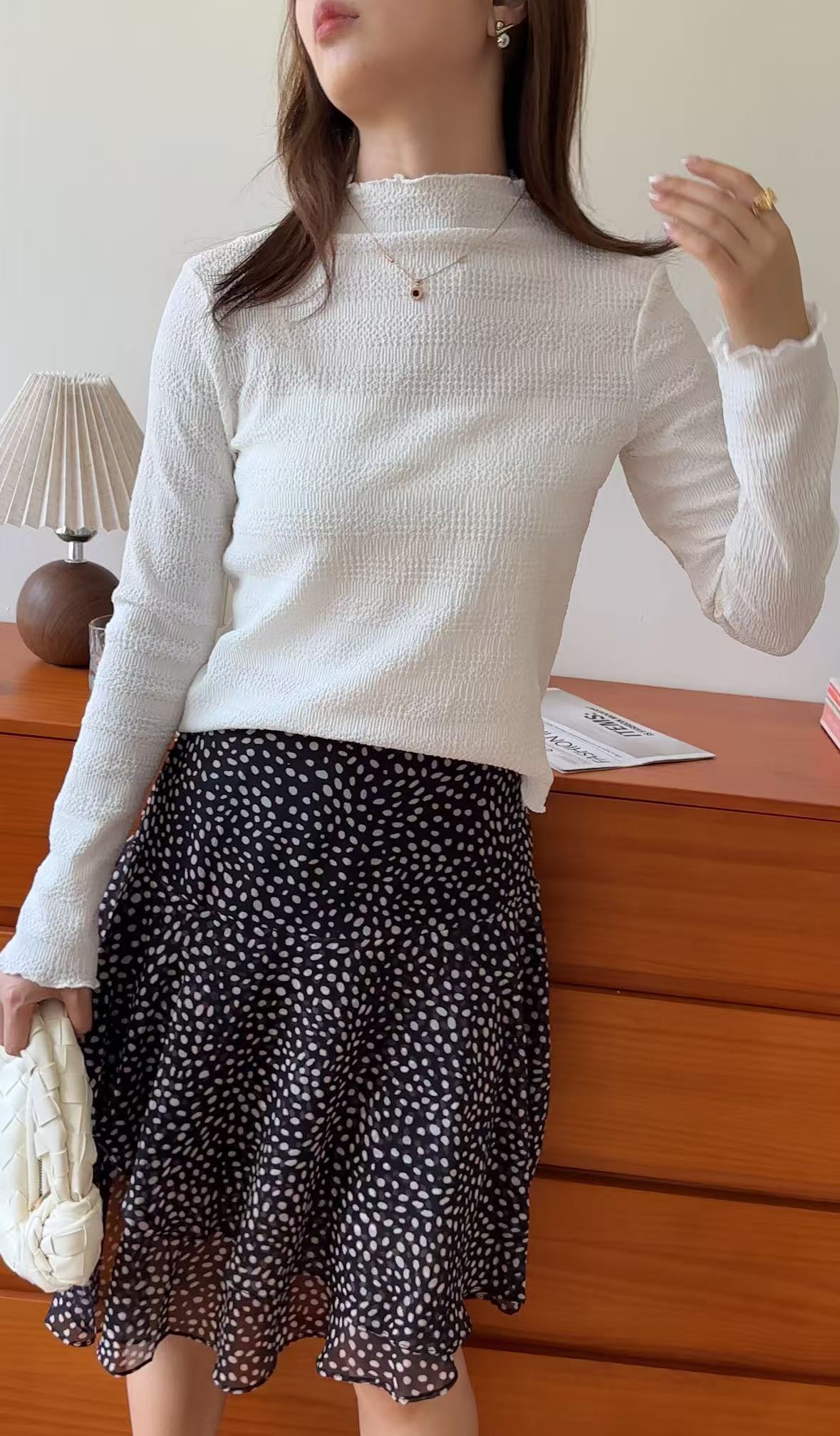 GC10106 Texture Fabric made Floral Siding Half High Neck Top