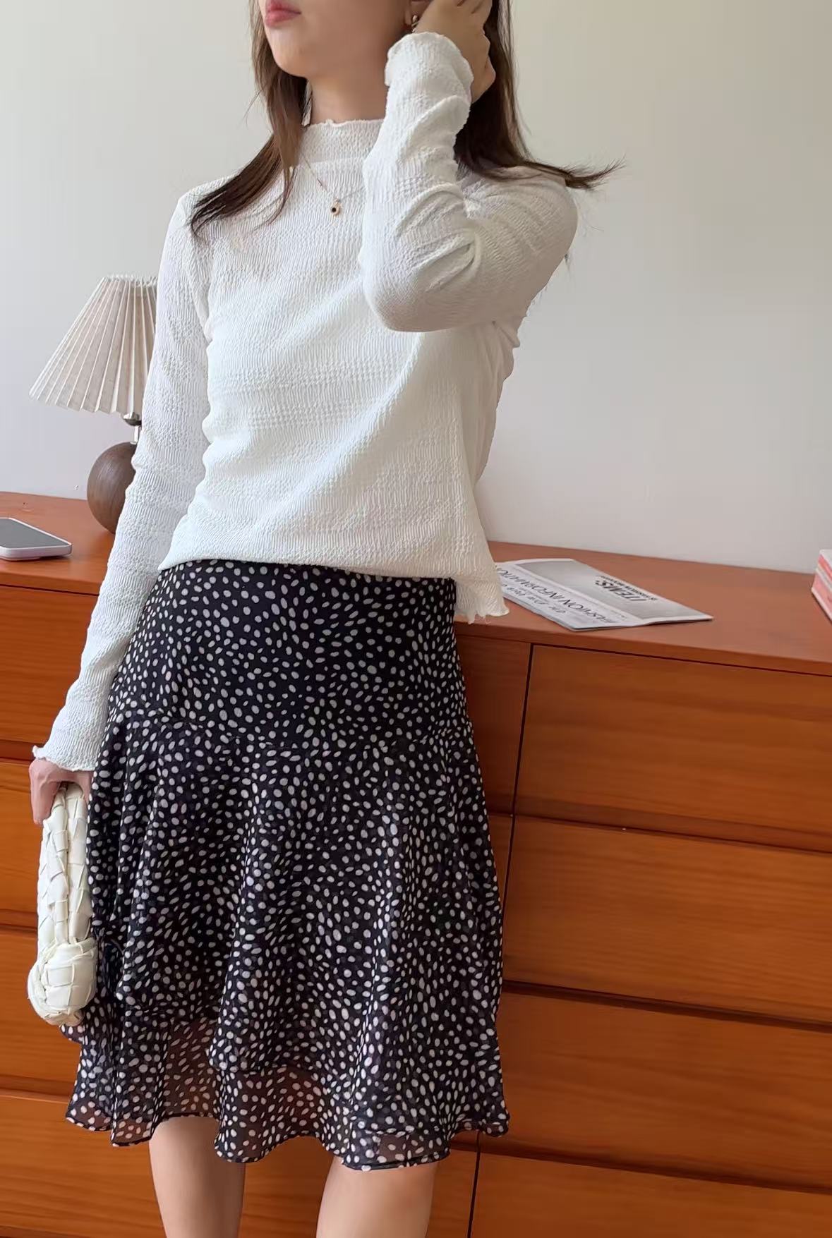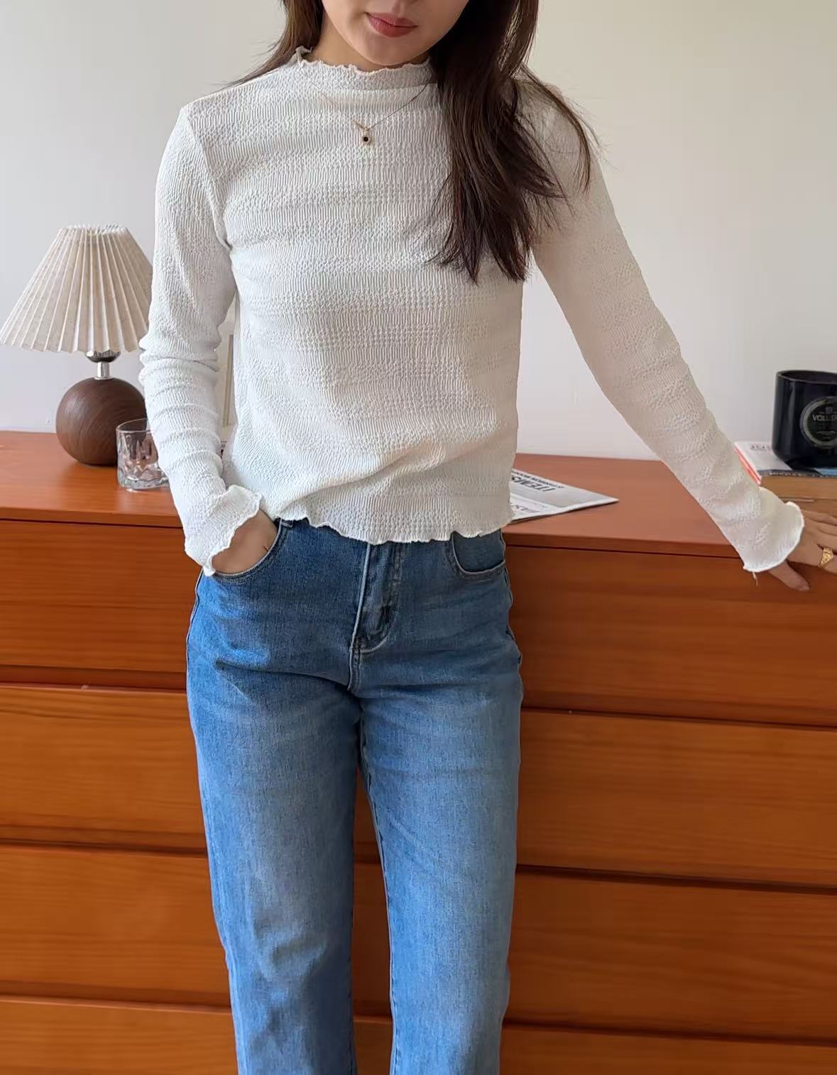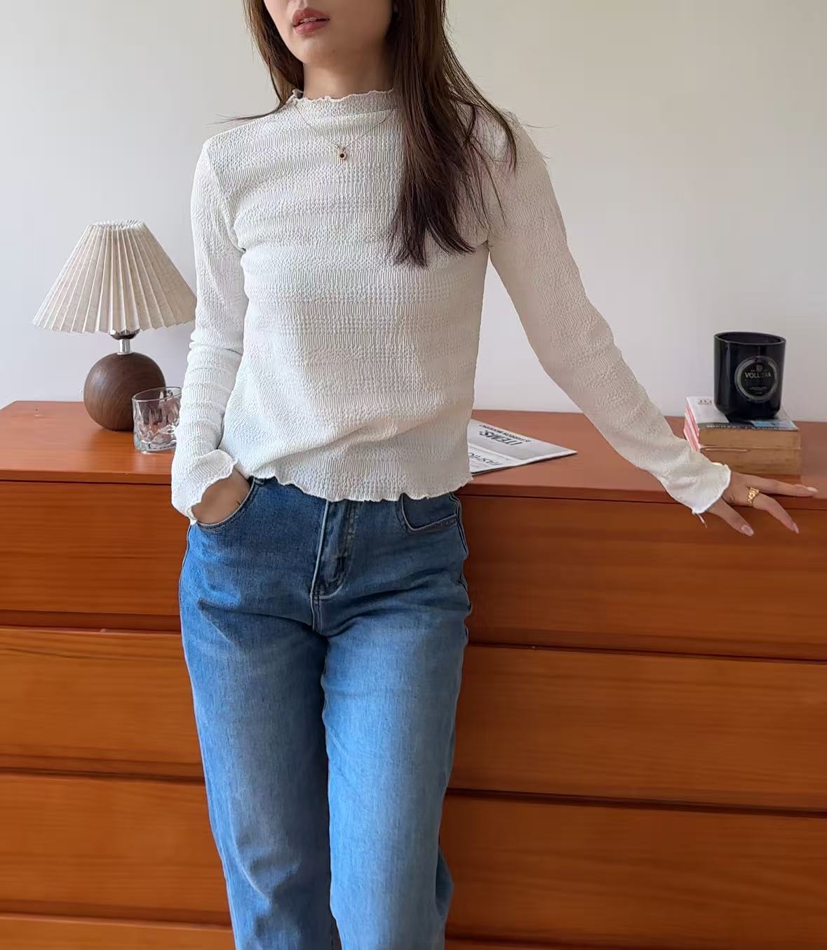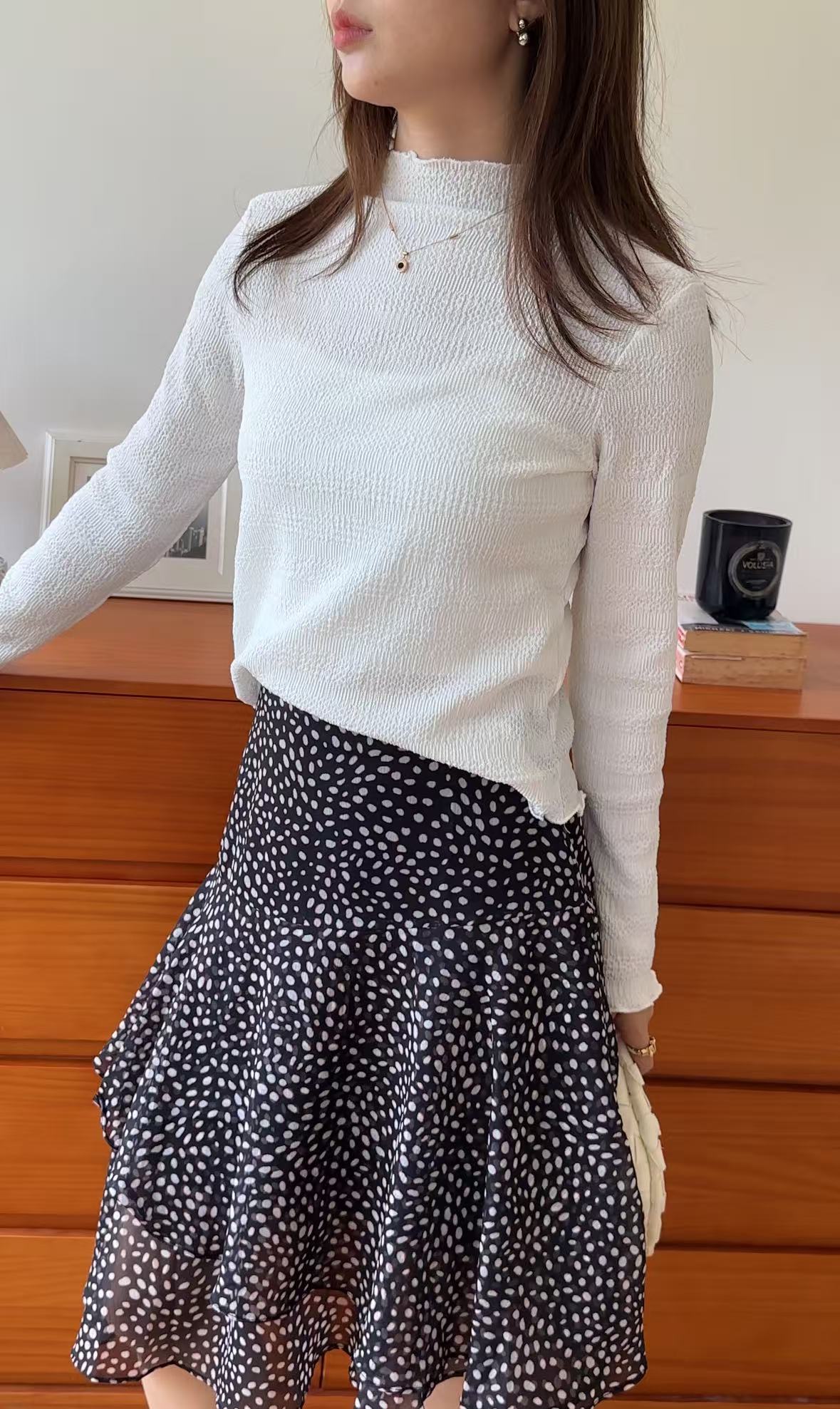 GC10106 Texture Fabric made Floral Siding Half High Neck Top
