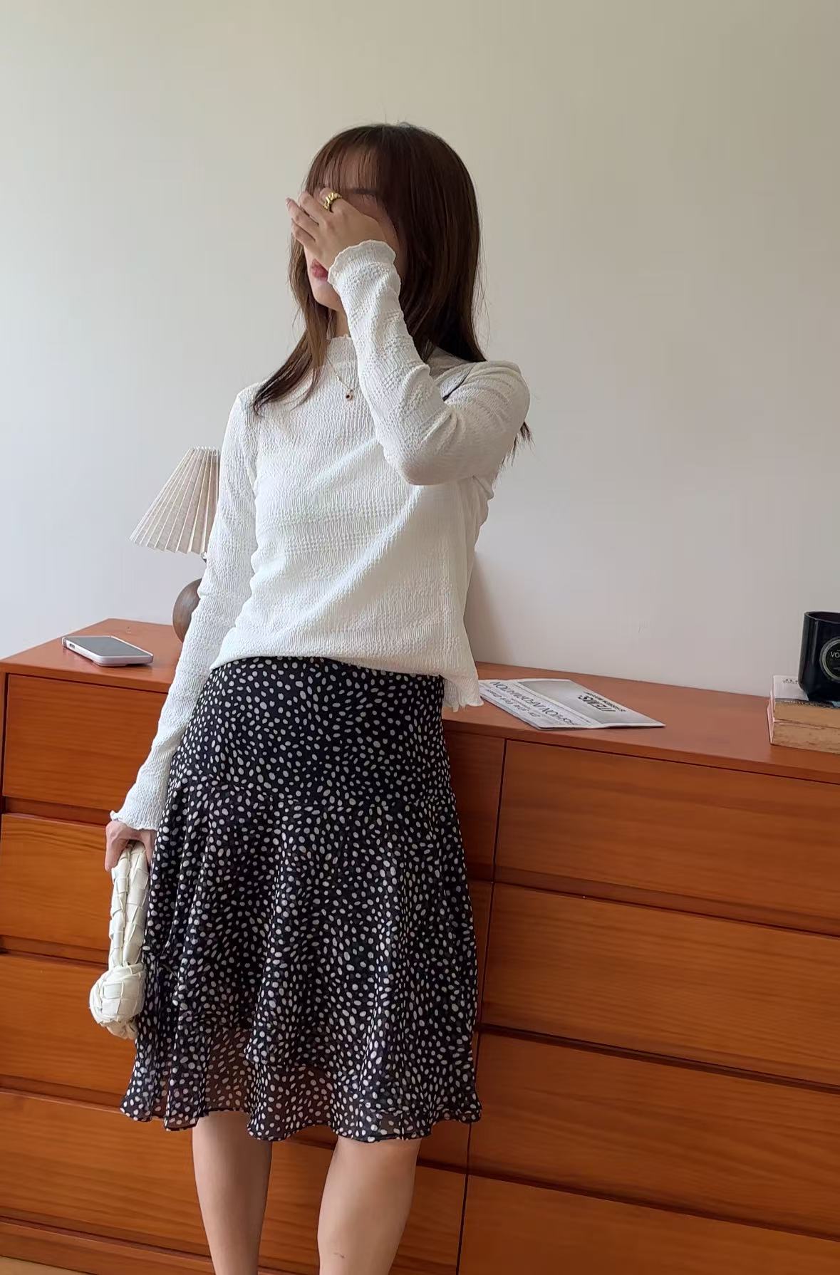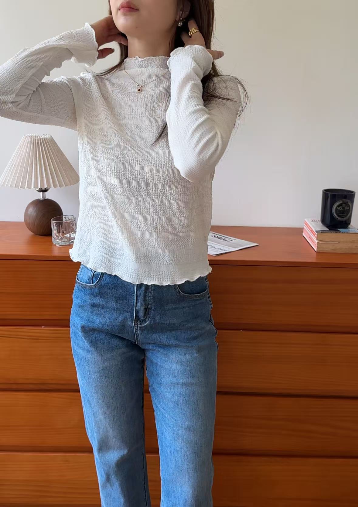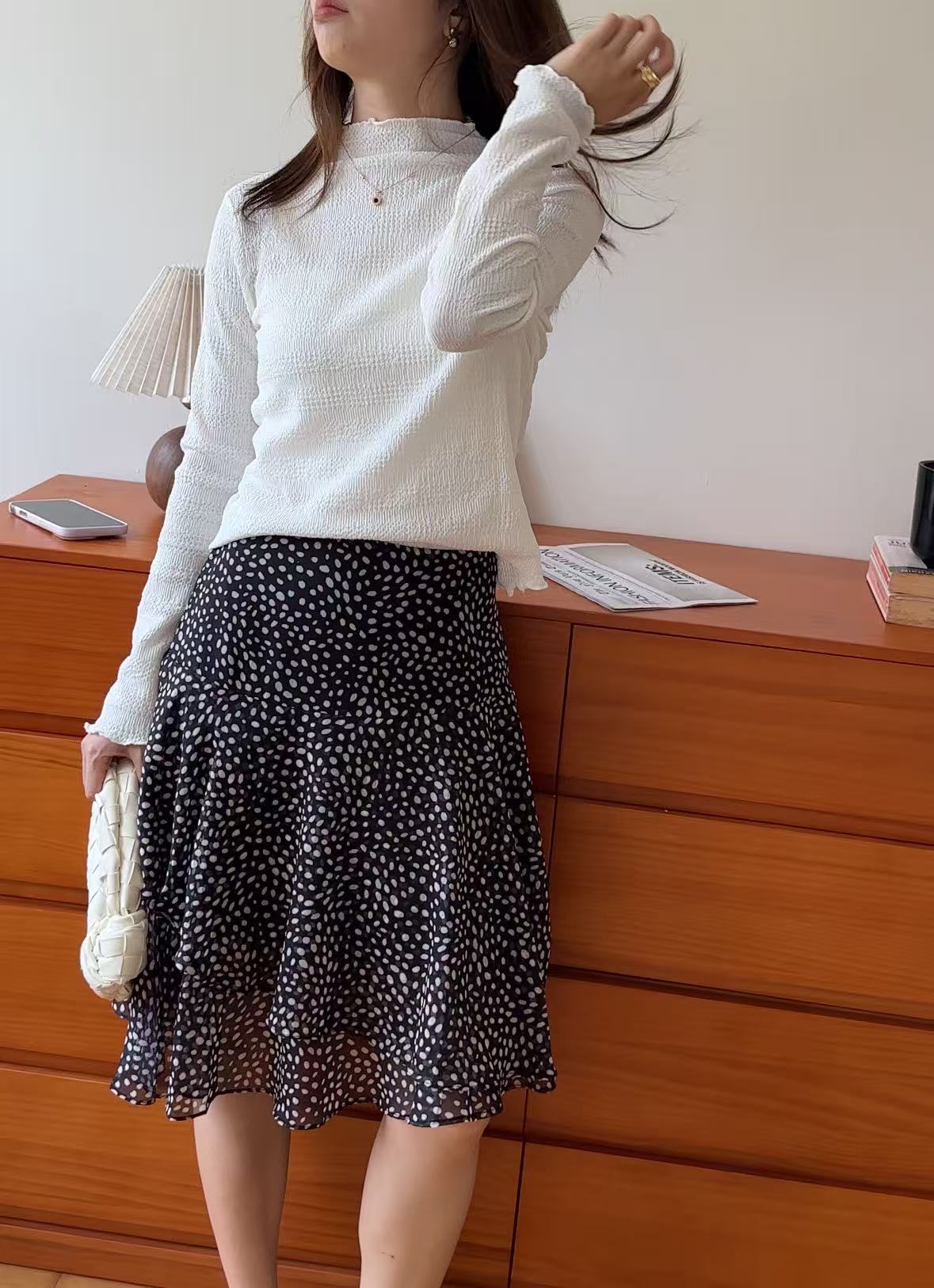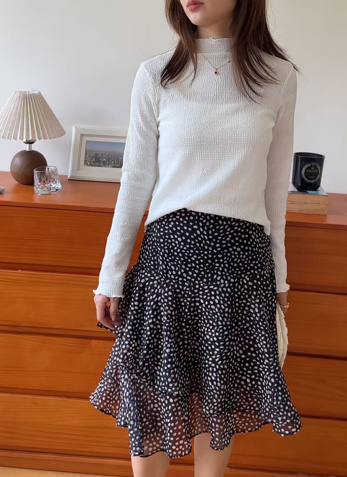 GC10106 Texture Fabric made Floral Siding Half High Neck Top
