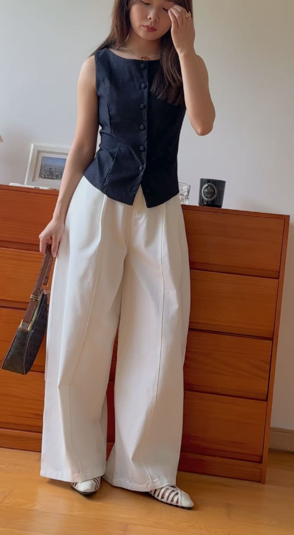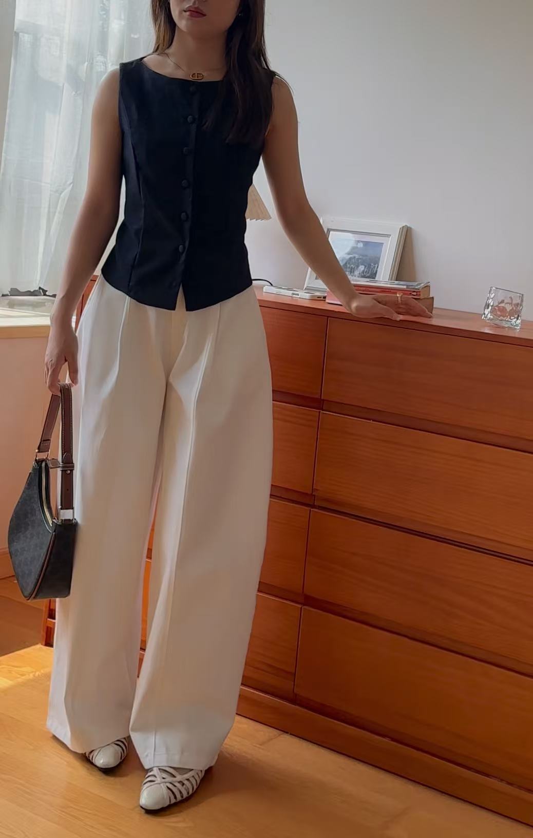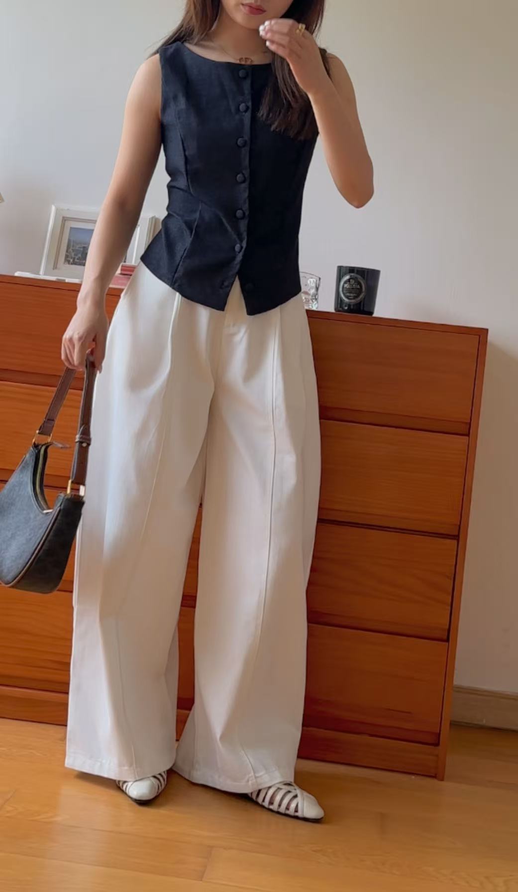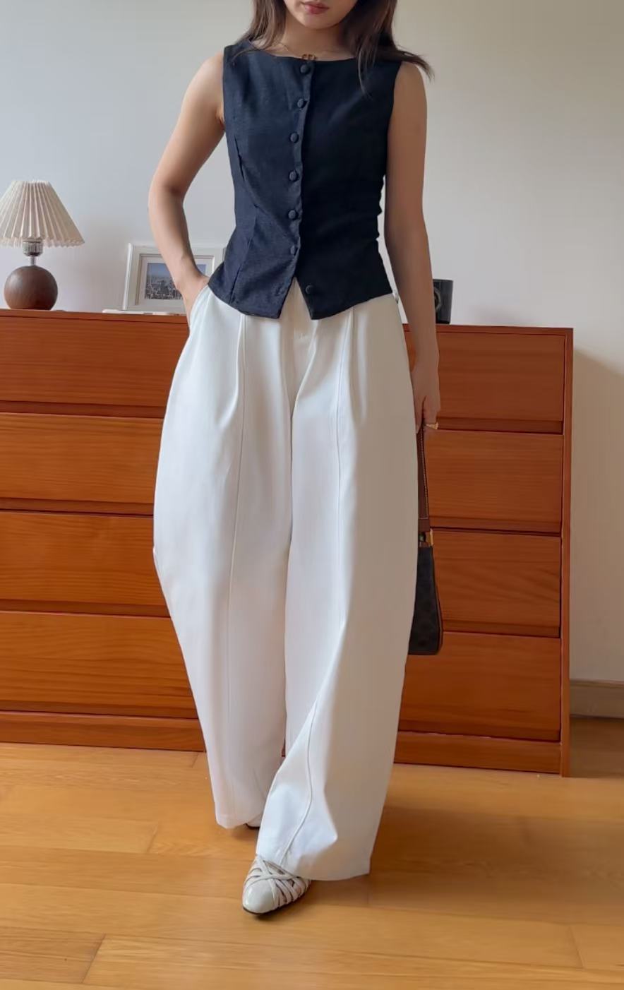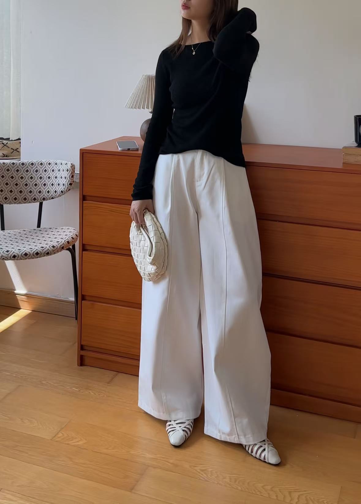 GC10115 Coming Back 爆款空氣感神褲秋冬版!Silhouette Cutting Front Folded Pants White